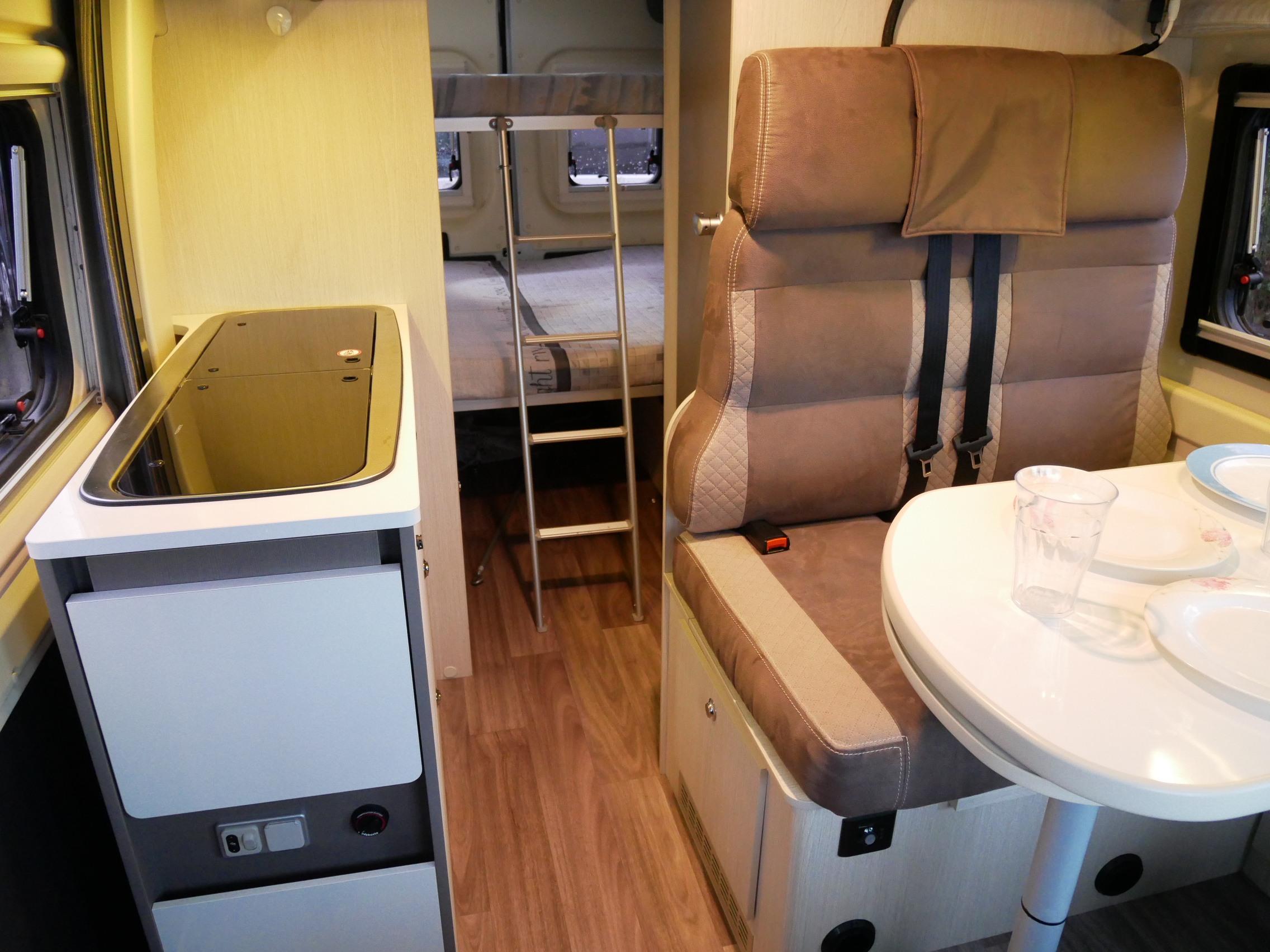 De Forster A699VB biedt 6 slaapplaatsen (alkoof, dinette, stapelbed),