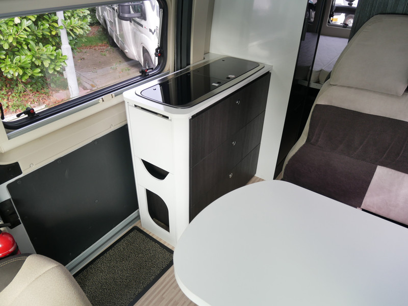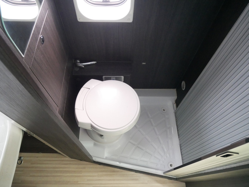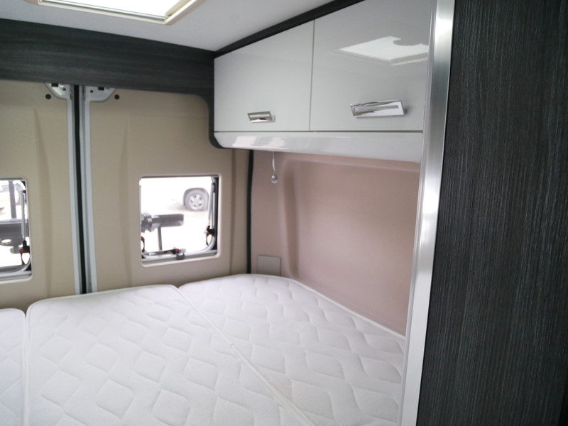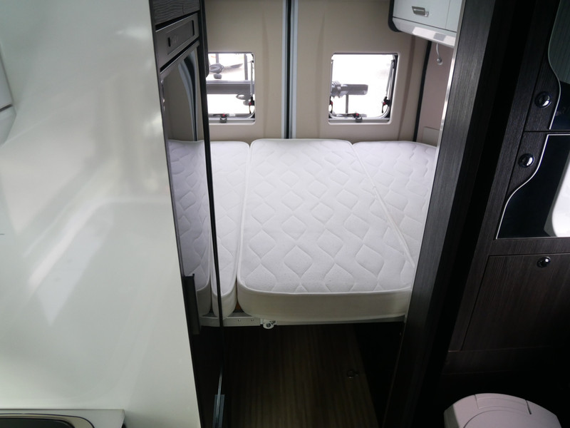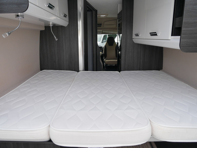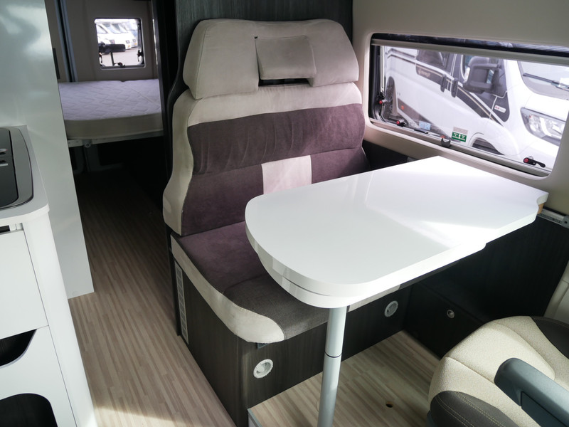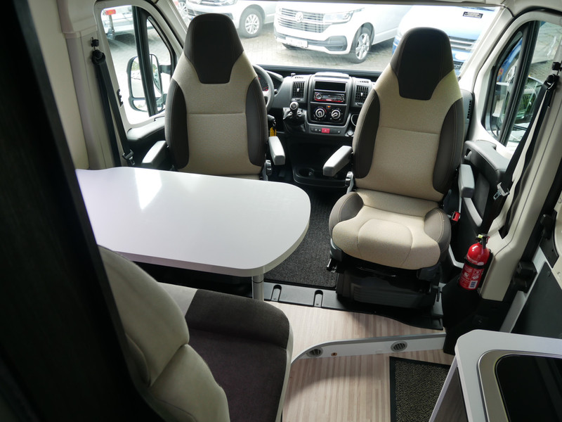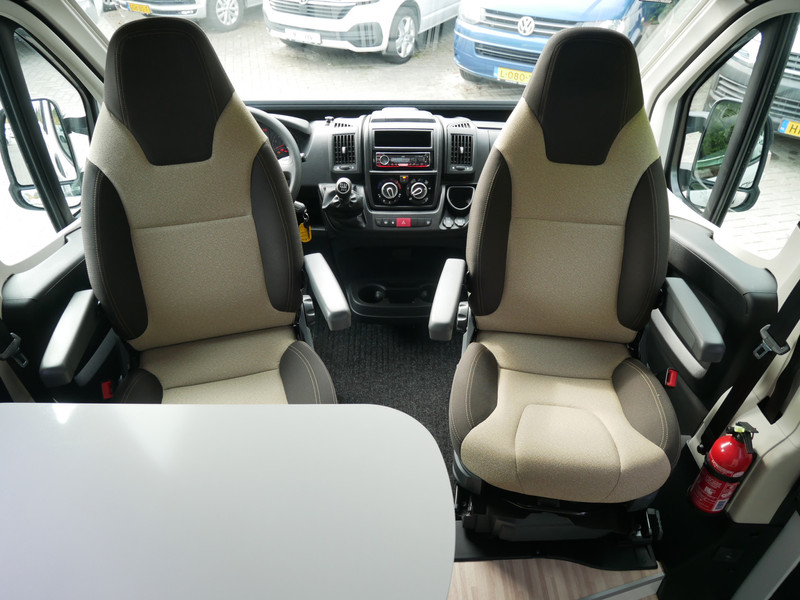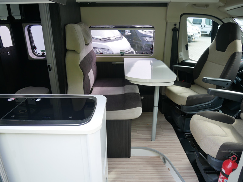 De camper is onder andere voorzien van een mooie afwerking met stoffen bekleding, keuken met 2 pits kooktoestel, dwarsbed, cruise control, Truma kachel op diesel, boiler op diesel, koelkast, modern en licht ogende tinten in het interieur, wasbak, motorairco, zeer veel opbergmogelijkheden door de vele bovenkasten, toiletruimte met doucheruimte, treinzit met tafel,, radio/mp-3 speler, bluetooth en verduistering rondom.
