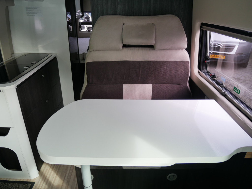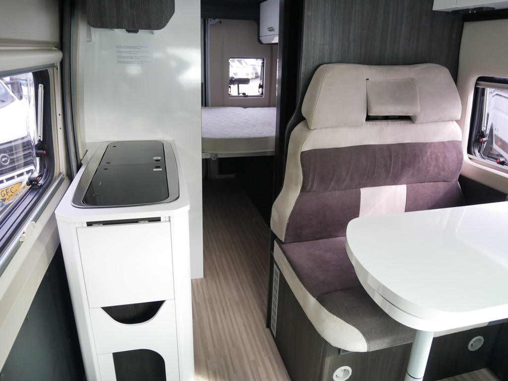 De camper is onder andere voorzien van een mooie afwerking met stoffen bekleding, keuken met 2 pits kooktoestel, dwarsbed, cruise control, Truma kachel op diesel, boiler op diesel, koelkast, modern en licht ogende tinten in het interieur, wasbak, motorairco, zeer veel opbergmogelijkheden door de vele bovenkasten, toiletruimte met doucheruimte, treinzit met tafel,, radio/mp-3 speler, bluetooth en verduistering rondom.