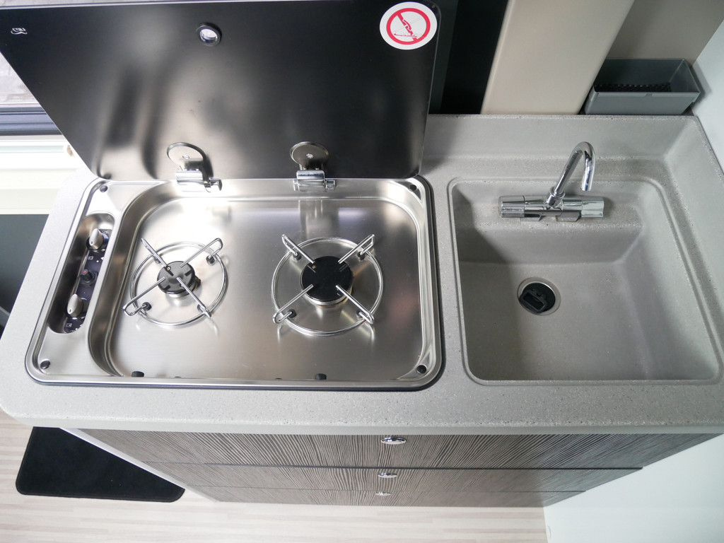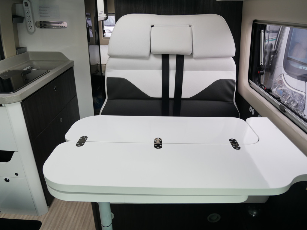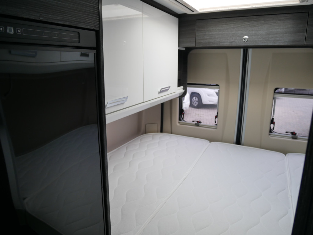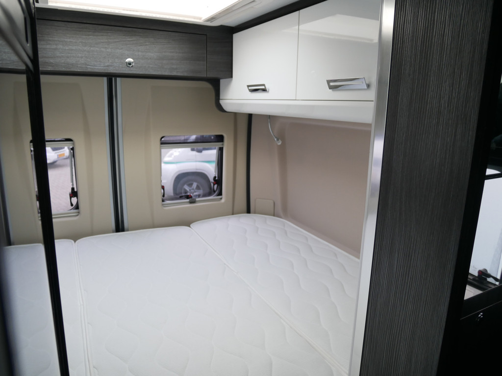 De camper is onder andere voorzien van een mooie afwerking met luxe lederen bekleding, keuken met 2 pits kooktoestel, dwarsbed, cruise control, Truma kachel op diesel, boiler op diesel, XXL koelkast met groente la, modern en licht ogende tinten in het interieur, wasbak, motorairco, zeer veel opbergmogelijkheden door de vele bovenkasten, toiletruimte met doucheruimte, treinzit met opklapbare tafel,, radio/cd/mp-3 speler, bluetooth en verduistering rondom.