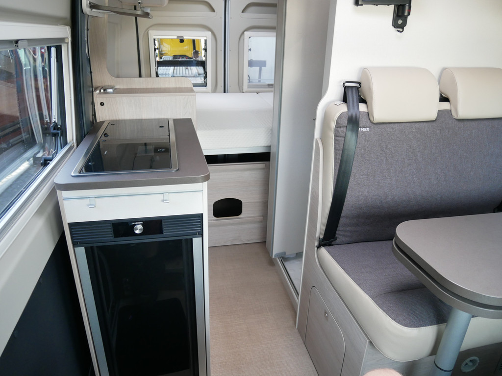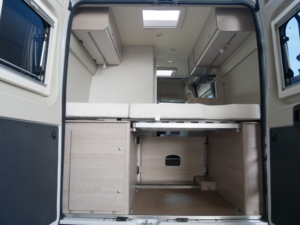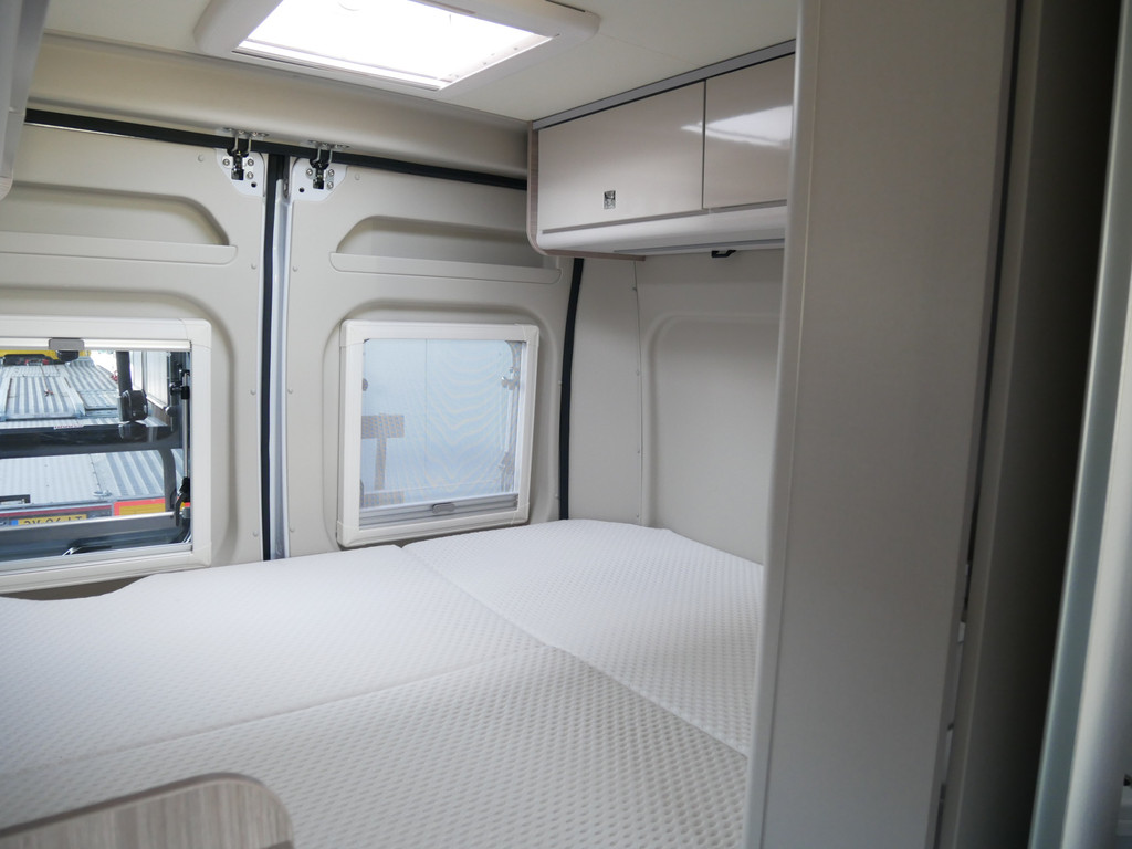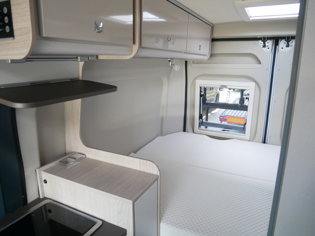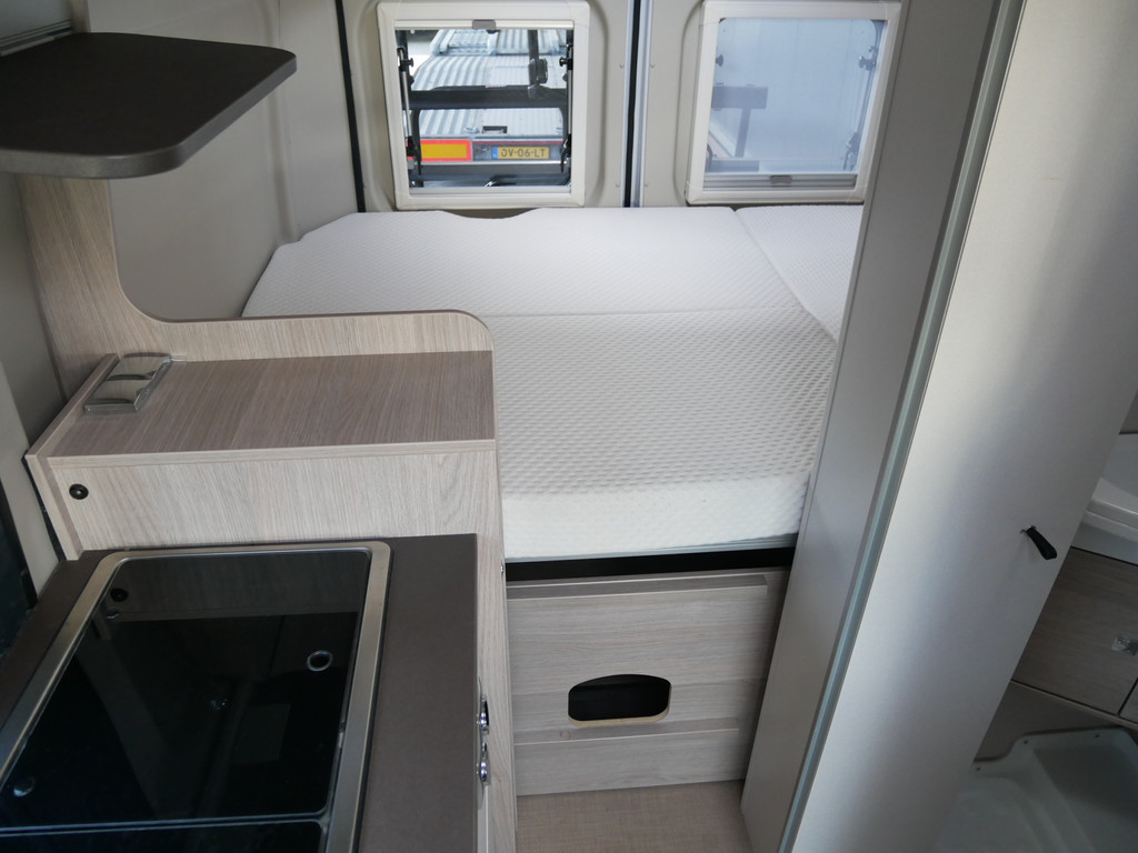 Maten: De camper heeft een stahoogte van 190 Cm en het dwarsbed 135 X 195 Cm