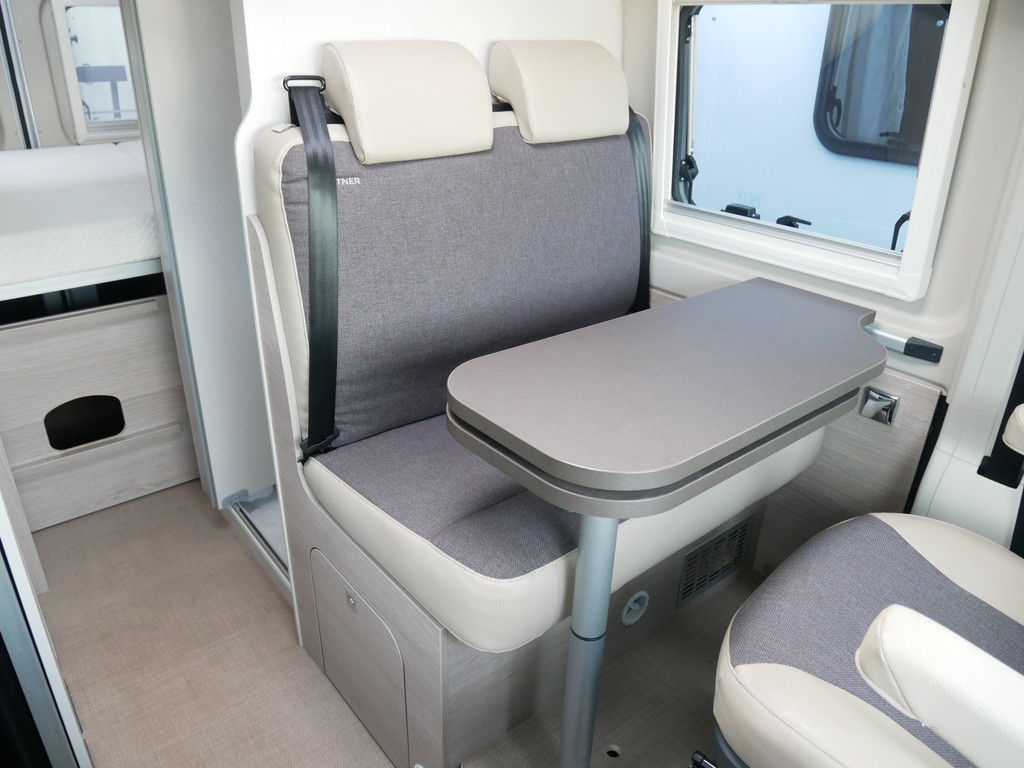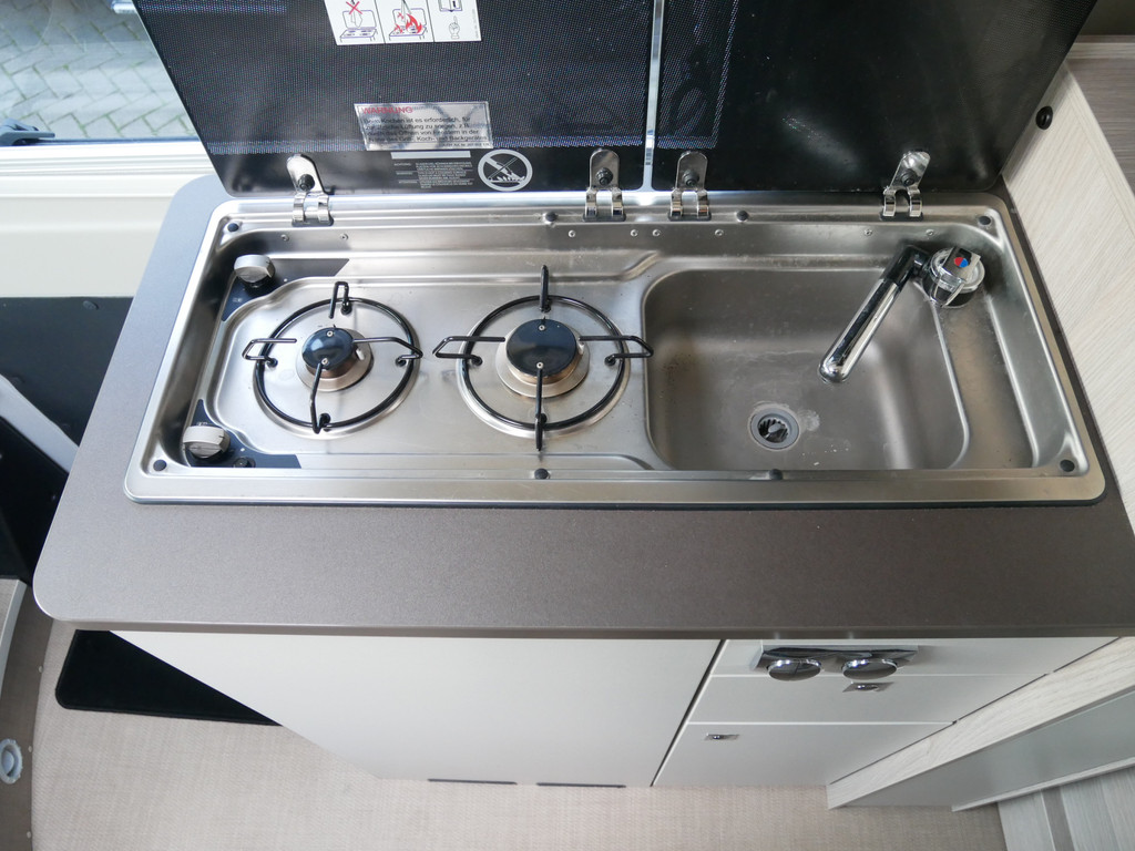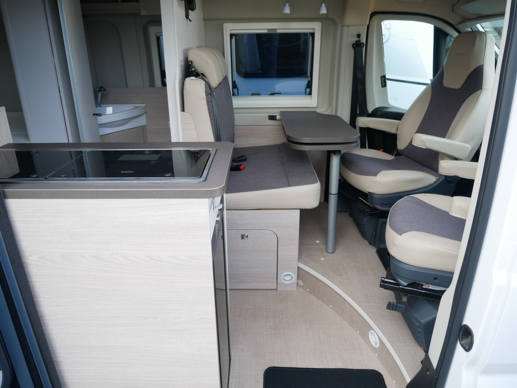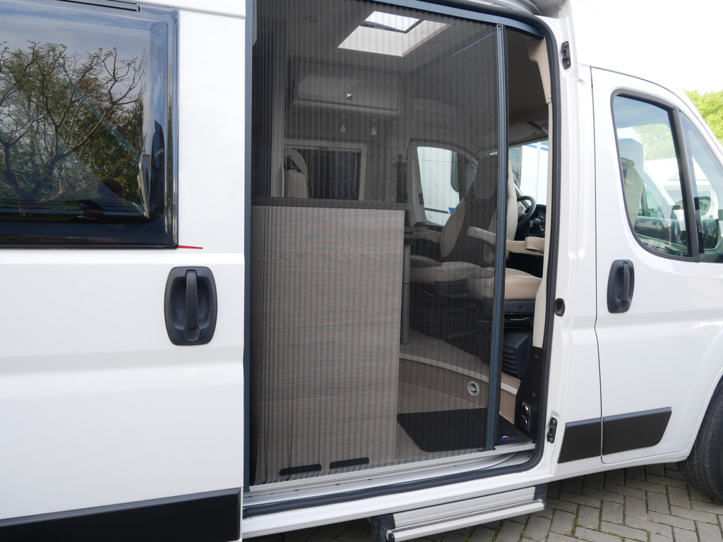 De camper is onder andere voorzien van een prachtige afwerking zoals half lederen bekleding, keuken met 2 pits kooktoestel, dwarsbed, cruise control, Truma kachel op gas, boiler op gas, XL compressor koelkast, modern en licht ogende tinten in het interieur, wasbak, airco, zeer veel opbergmogelijkheden door de vele bovenkasten, hordeur entree, radio/mp-3 speler, bluetooth, achteruitrijcamera, toiletruimte met doucheruimte, een ruime zit met tafel en verduistering rondom.