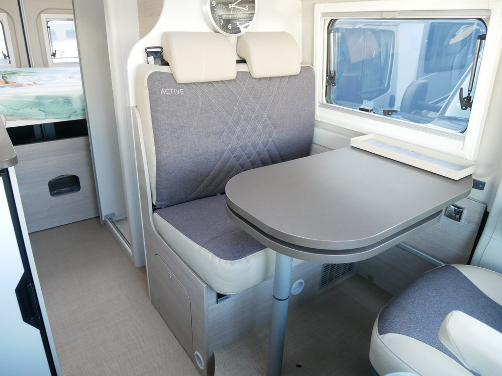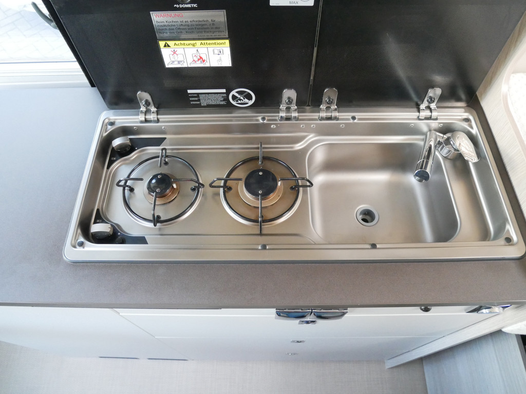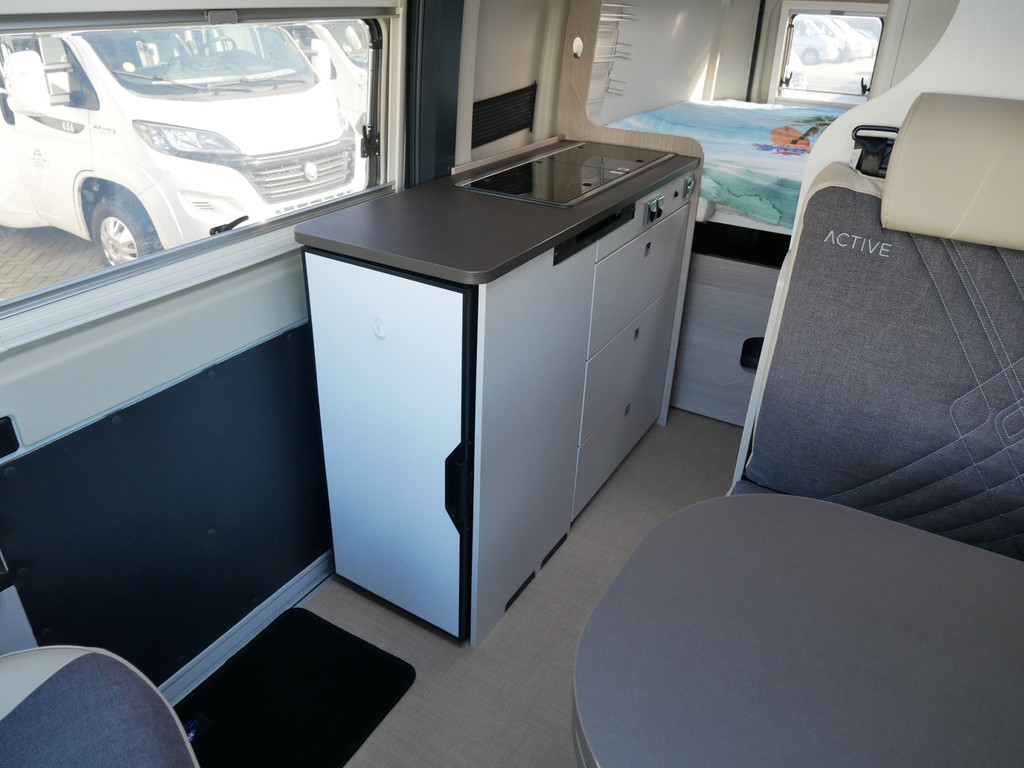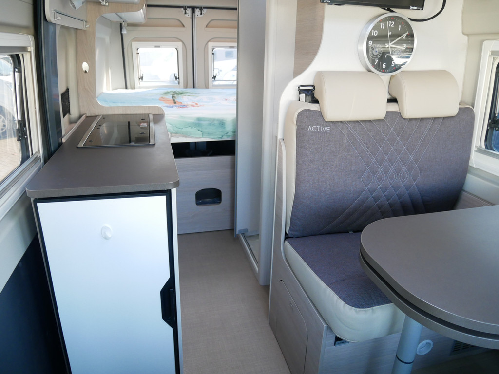 De camper is onder andere voorzien van een nette afwerking met luxe lederen bekleding, keuken met 2 pits kooktoestel, groot dwarsbed, cruise control, Truma kachel op gas, boiler op gas, compressor koelkast, modern en luxe ogende tinten in het interieur, wasbak, motorairco, zeer veel opbergmogelijkheden door de vele kastruimtes, toiletruimte met douche, een ruime zit met tafel, radio/mp-3 speler, bluetooth en verduistering rondom.