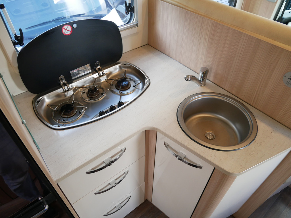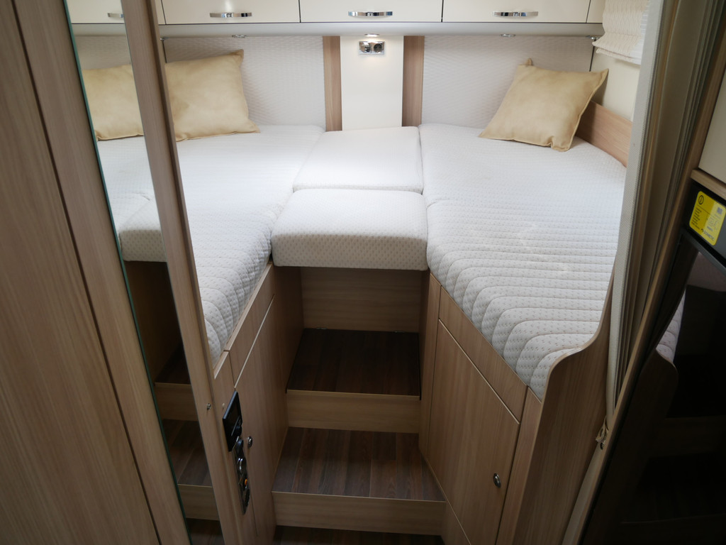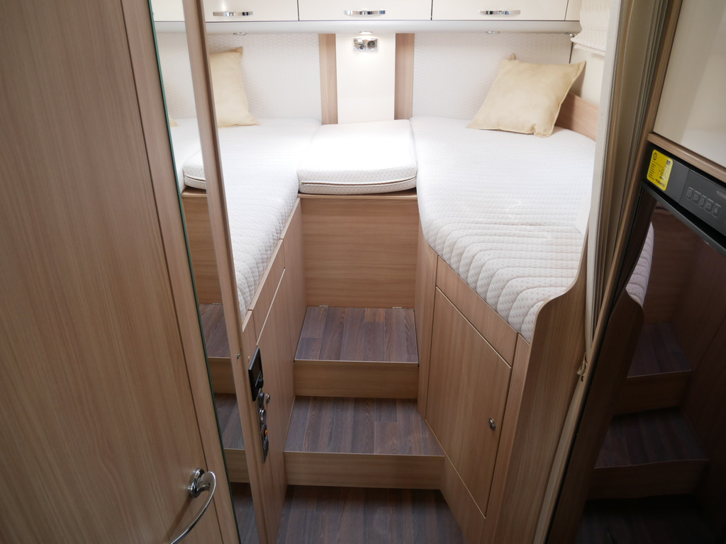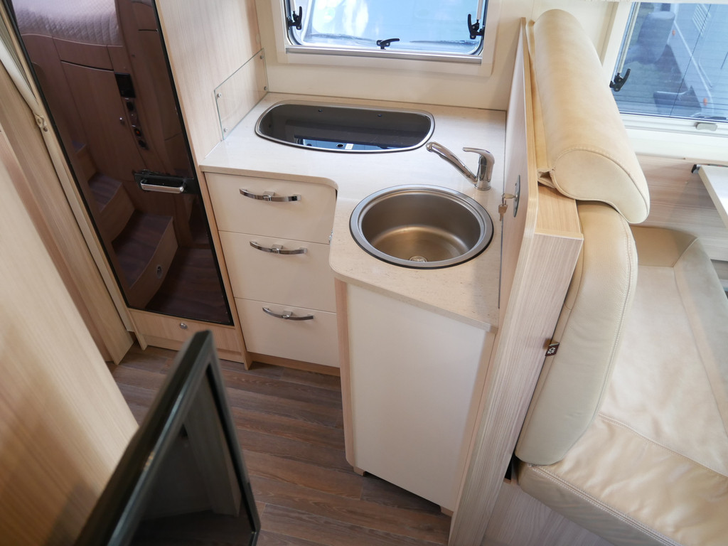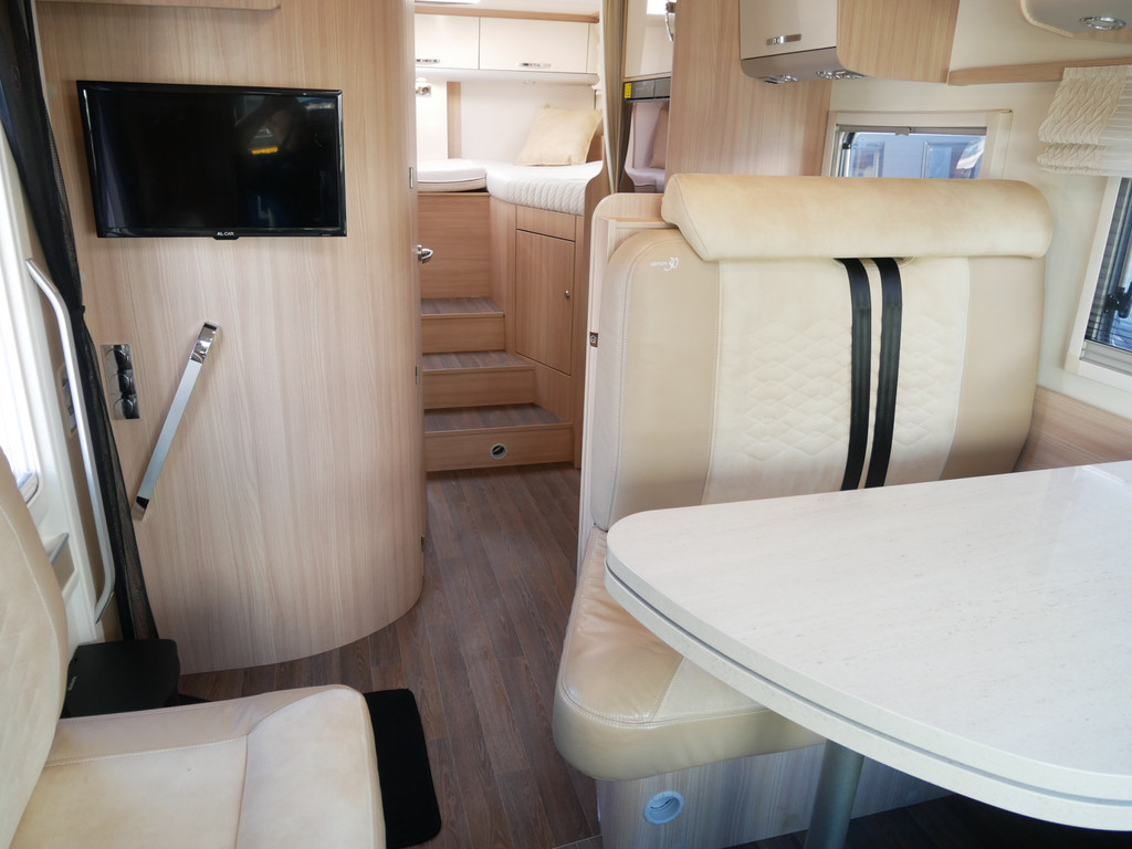 De camper is onder andere voorzien van een mooie en luxe afwerking met de speciale '30 Edition stoelen in creme half leder en moderne look in het interieur, ruime keuken met 3 pits kooktoestel, lengtebedden, elektrisch hefbed, wasbak, hordeur entree, brede deurentree, motorairco, zeer veel opbergmogelijkheden door de vele bovenkasten en de grote kast ruimtes, ruime toiletruimte, slimme douche ruimte, een ruime rondzit met grote verschuifbare tafel en een royale XXL garage met een grote deur rechts en links (105 X 80 cm) zodat fietsen in 1x geplaatst kunnen worden.