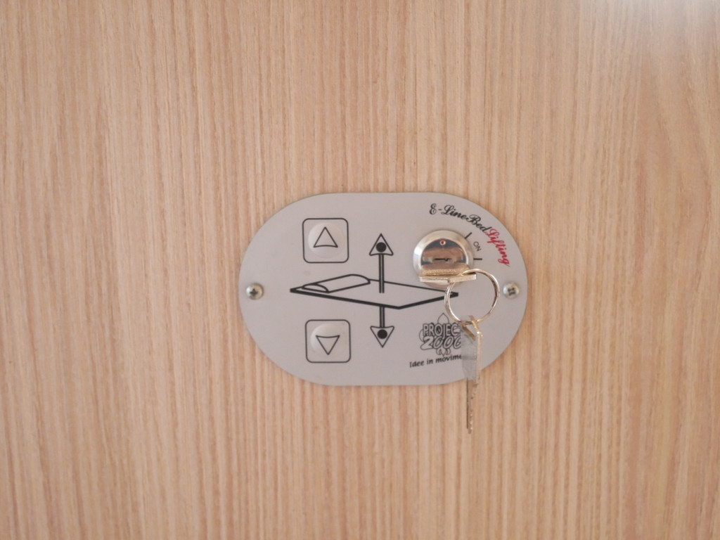 Maten: Stahoogte onder het hefbed: 196 cm, lengtebedden links: 196 X 80 cm, rechts: 202 X 80 cm en volle breedte: 210 cm en het hefbed: (140 X 195 cm).