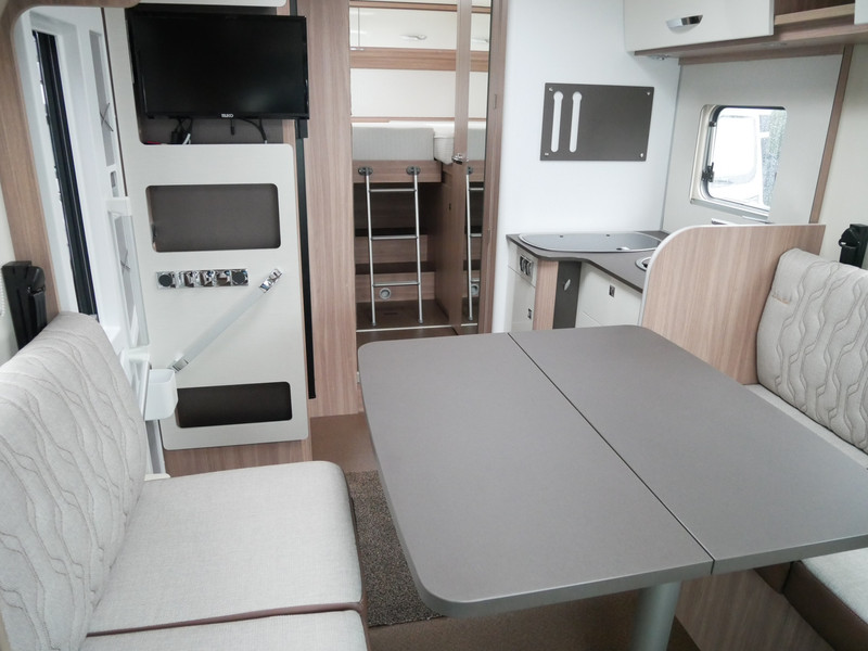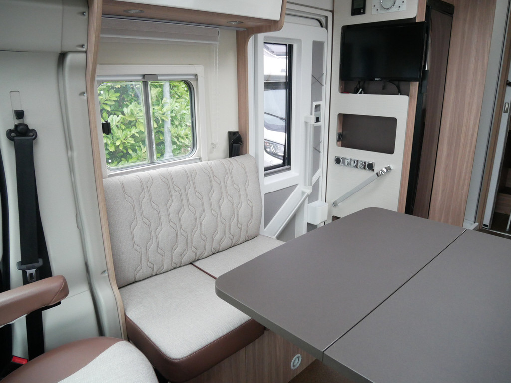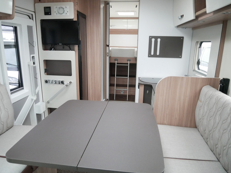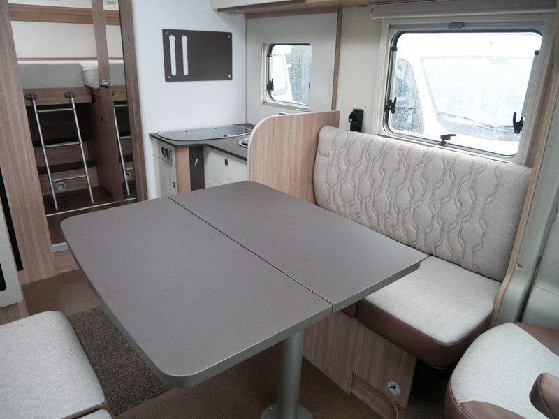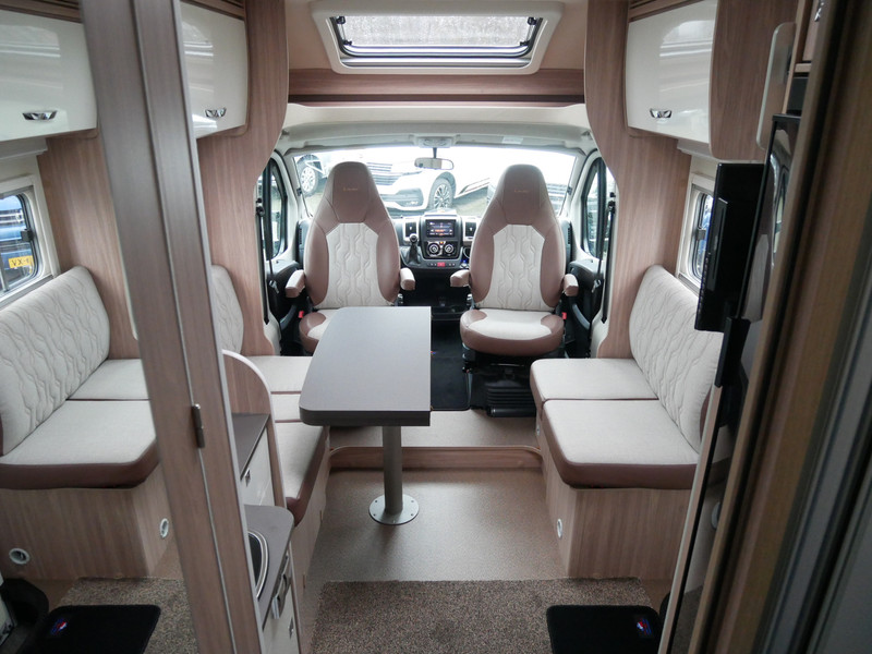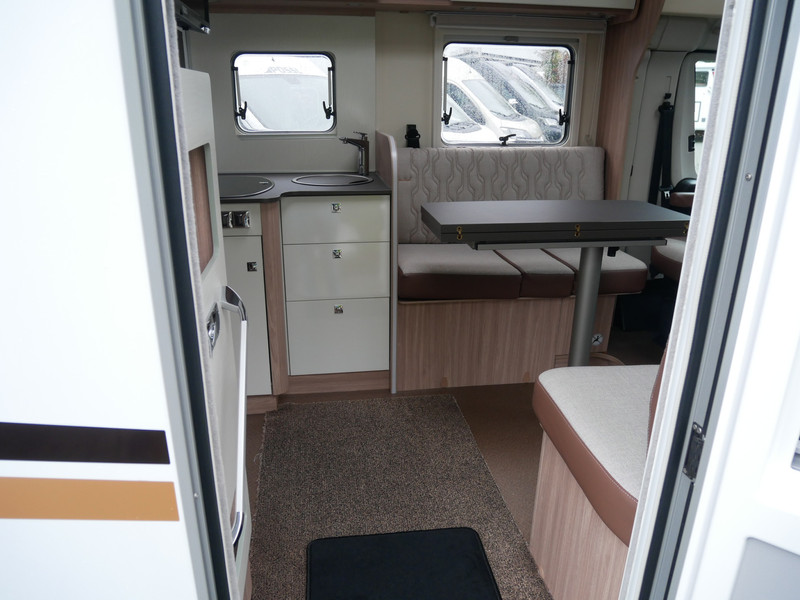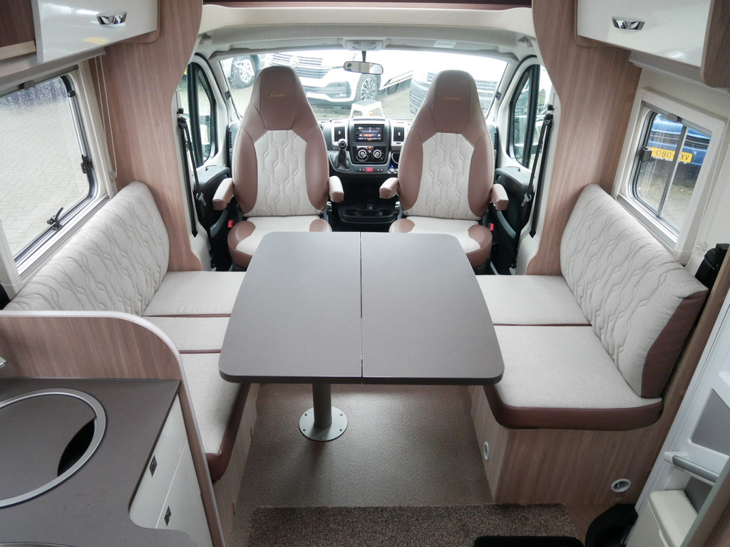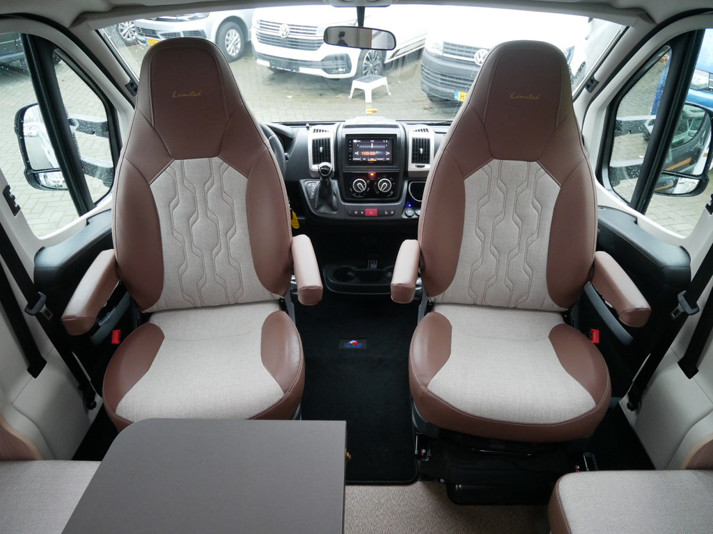 De camper is onder andere voorzien van een zeer mooie en luxe afwerking met half lederen stoelen, 9-traps automaat, luchtvering (hulpvering) achter, moderne houtlook in het interieur, cassette luifel, Truma combiketel op gas, luxe ruime keuken met 3 pits kooktoestel, XL entree deur, centrale deurvergrendeling op alle deuren, hagelbestendig dak, wasbak, lengtebedden, motorairco, zeer veel opbergmogelijkheden in de vele bovenkasten en de grote kast ruimtes, ruime toiletruimte, douche ruimte, koelkast XXL (142 liter) met groot vriesvak, vlakke vloer binnen, een ruime face to face zit met grote tafel en een XXL garage onder het lengtebedden met links en rechts een grote garagedeur (118 X 95 cm en hoogte garage: 123 cm).