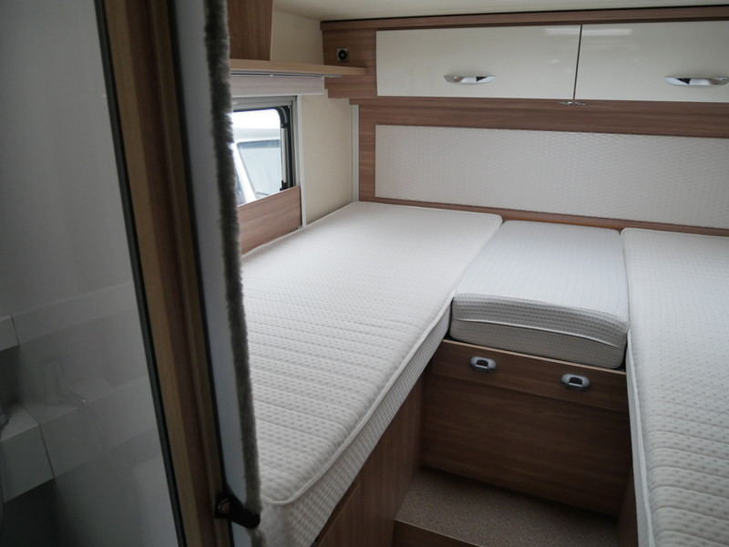 Maten: de camper heeft een stahoogte van 212 cm, lengtebedden links: 190/210 X 80 cm, rechts: 195/210 X 80 cm en volle breedte: 210 cm.