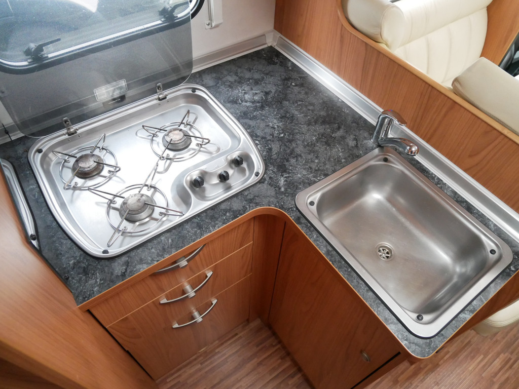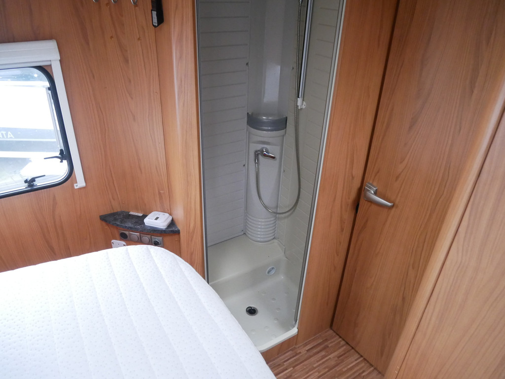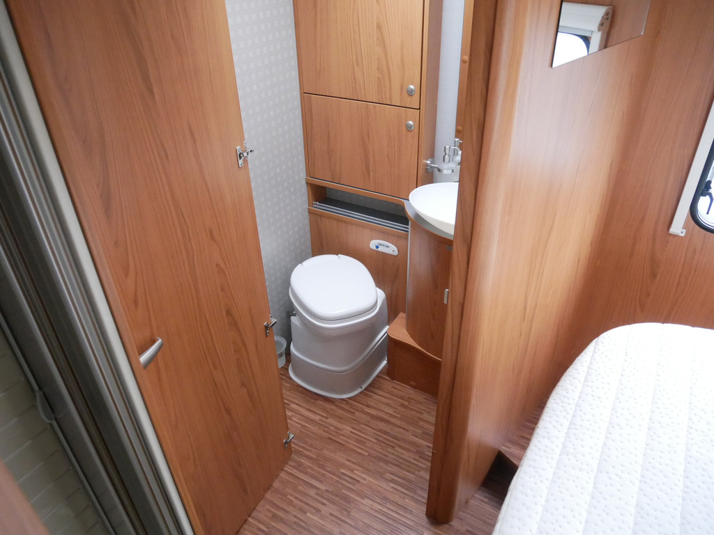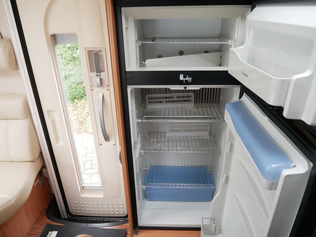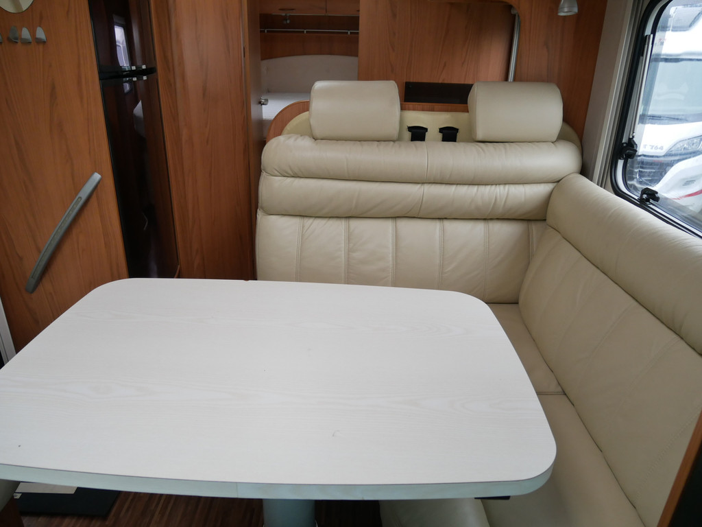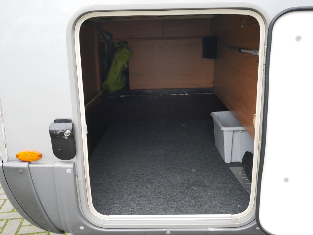 De camper is onder andere voorzien van luxe stoffen bekleding, mooie en lichte houtkleuren, ruime keuken met 3 pits kooktoestel, wasbak, motorairco, queensbed, dubbelglas ramen, zeer veel opbergmogelijkheden door de vele kasten en slimme opbergvakken, aparte douche, toiletruimte, een ruime rondzit met tafel en een garageluik rechts onder het queensbed.