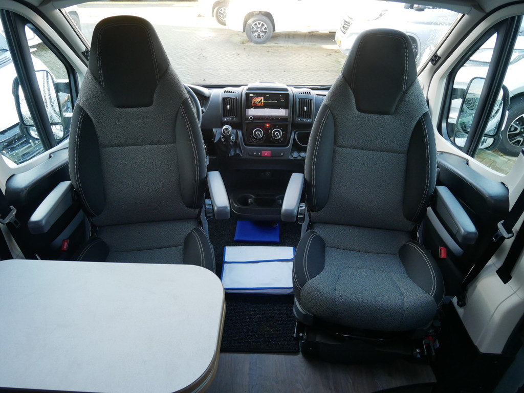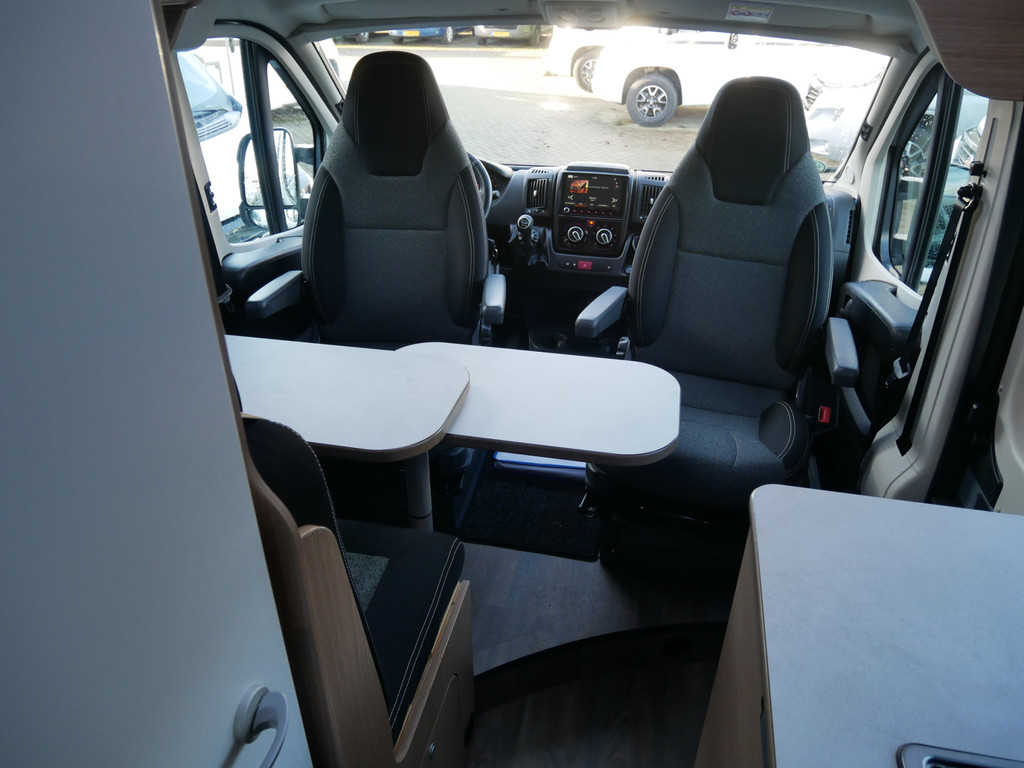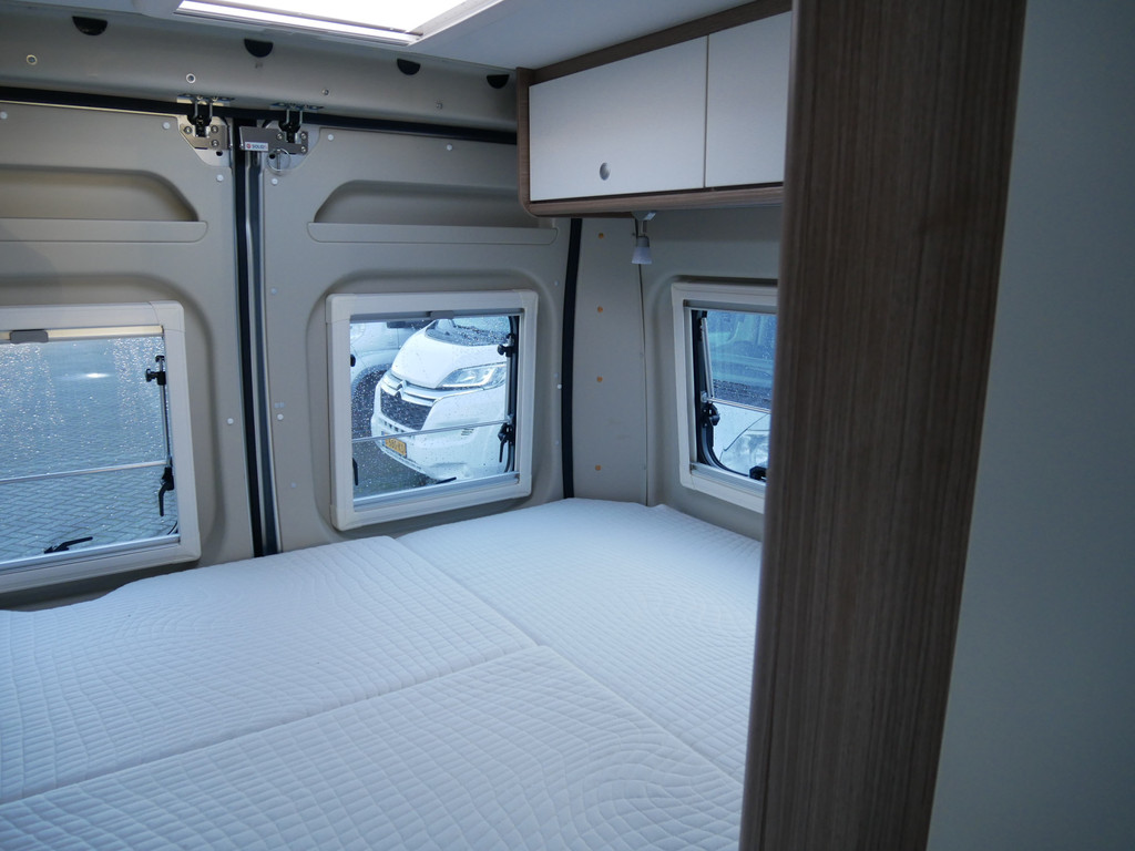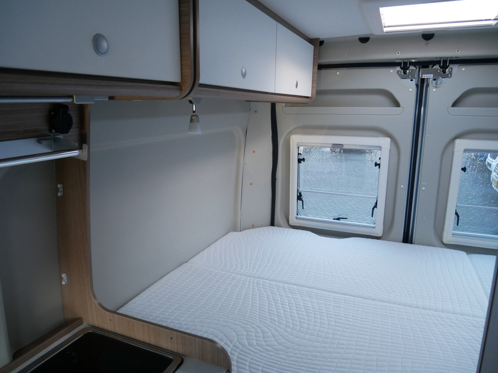 De camper is onder andere voorzien van een mooie afwerking met stoffen bekleding, keuken met 2 pits kooktoestel, dwarsbed, truma kachel op gas, boiler, compressor koelkast, modern en licht ogende houttinten in het interieur, binnenverlichting, wasbak, zeer veel opbergmogelijkheden door de velen kasten, toiletruimte met douchecel, een zit met tafel, luifel, radio/mp-3 speler, bluetooth en motorairco.