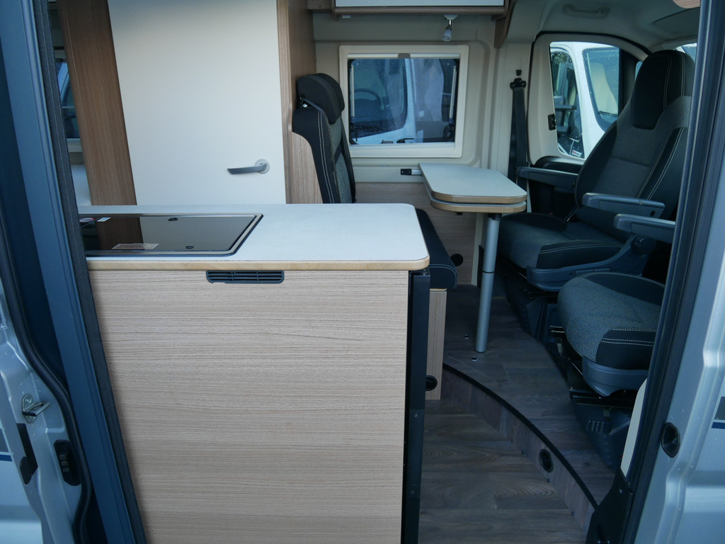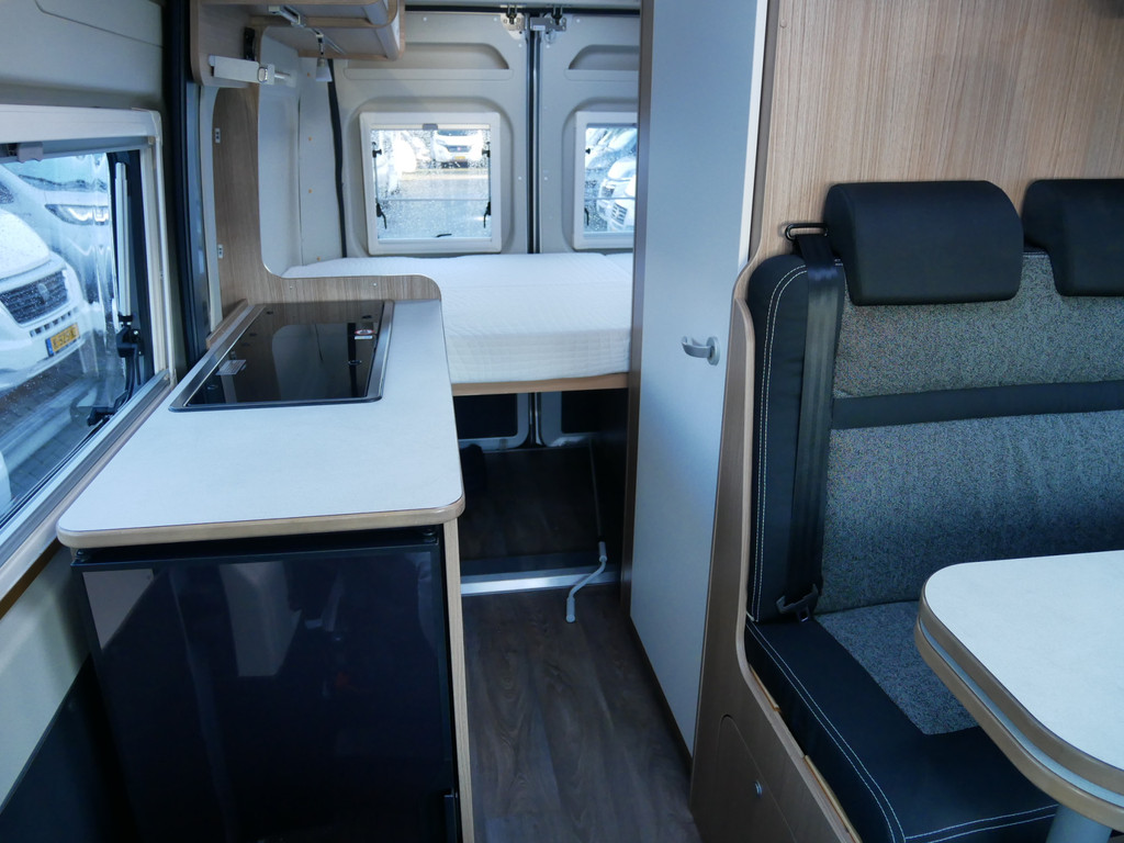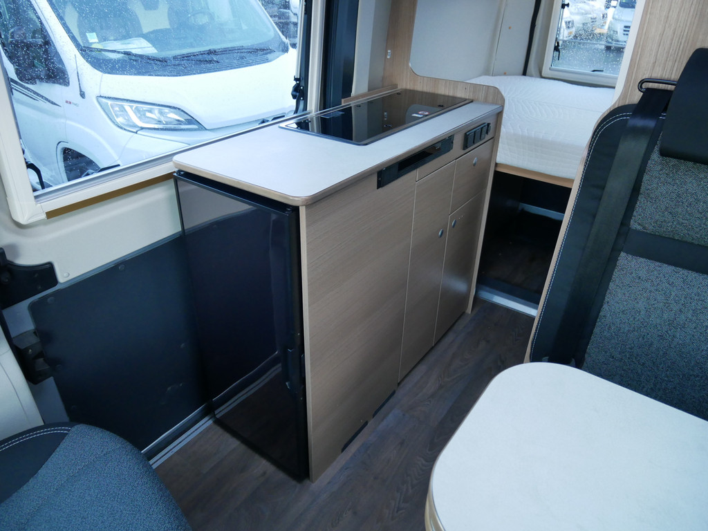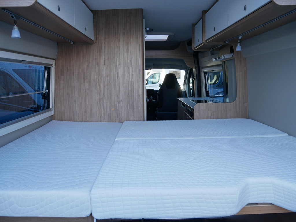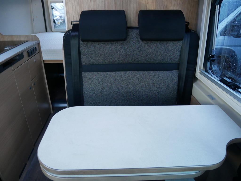 De camper is onder andere voorzien van een mooie afwerking met stoffen bekleding, keuken met 2 pits kooktoestel, dwarsbed, truma kachel op gas, boiler, compressor koelkast, modern en licht ogende houttinten in het interieur, binnenverlichting, wasbak, zeer veel opbergmogelijkheden door de velen kasten, toiletruimte met douchecel, een zit met tafel, luifel, radio/mp-3 speler, bluetooth en motorairco.