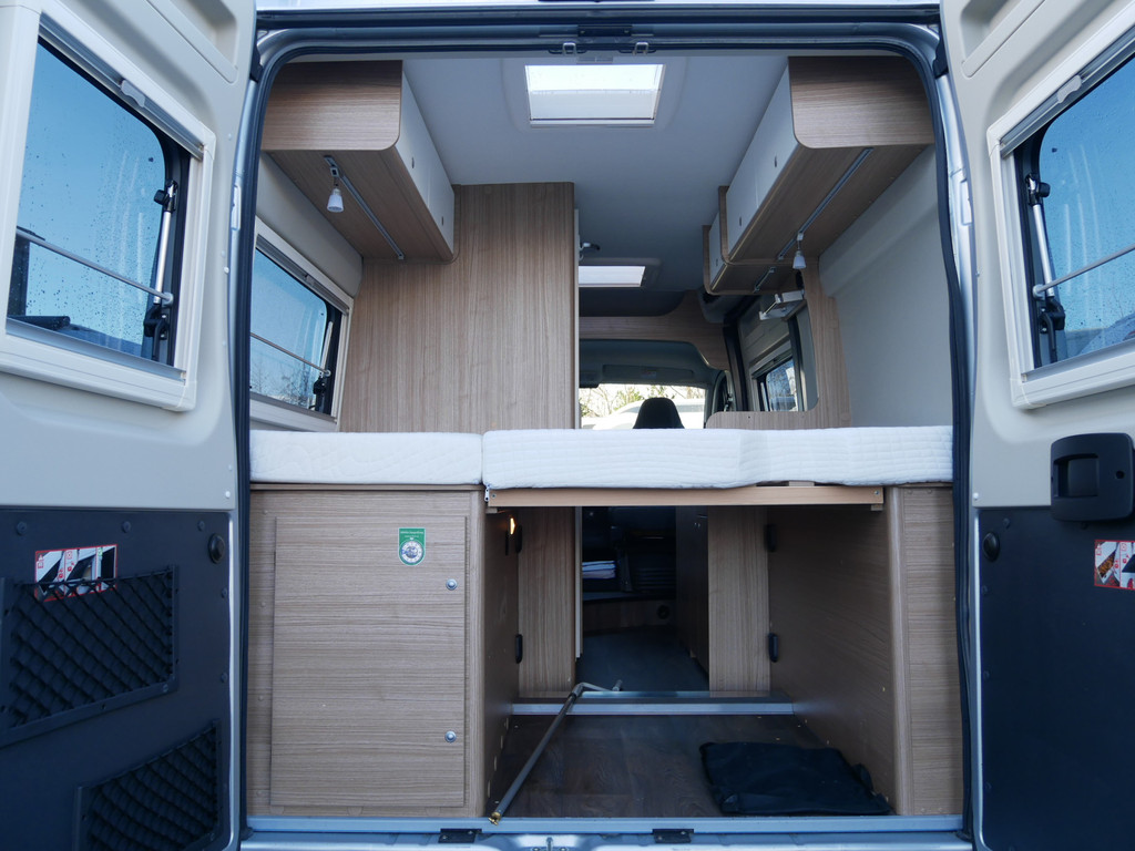 Maten: De camper heeft een stahoogte van 190 cm en dwarbed 135 X 195 cm.