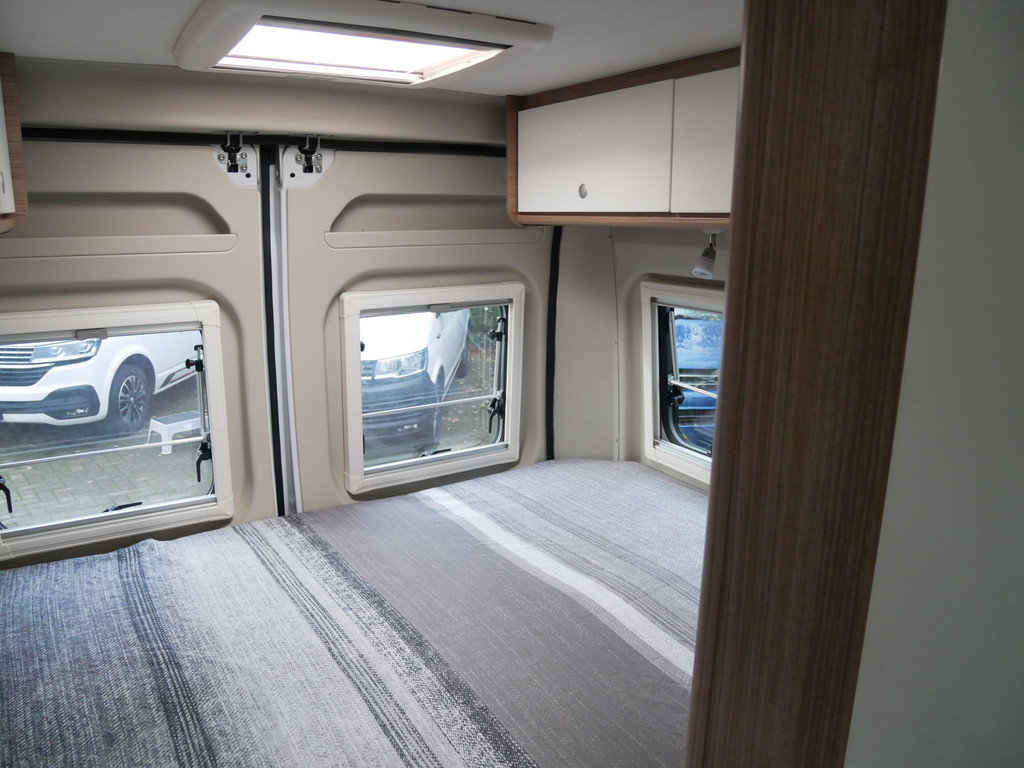 De camper is onder andere voorzien van een mooie afwerking met stoffen bekleding, keuken met 2 pits kooktoestel, dwarsbed, truma kachel op gas, boiler, compressor koelkast, modern en licht ogende houttinten in het interieur, binnenverlichting, wasbak, zeer veel opbergmogelijkheden door de velen kasten, toiletruimte met douchecel, een zit met tafel, luifel, radio, bluetooth en motorairco.