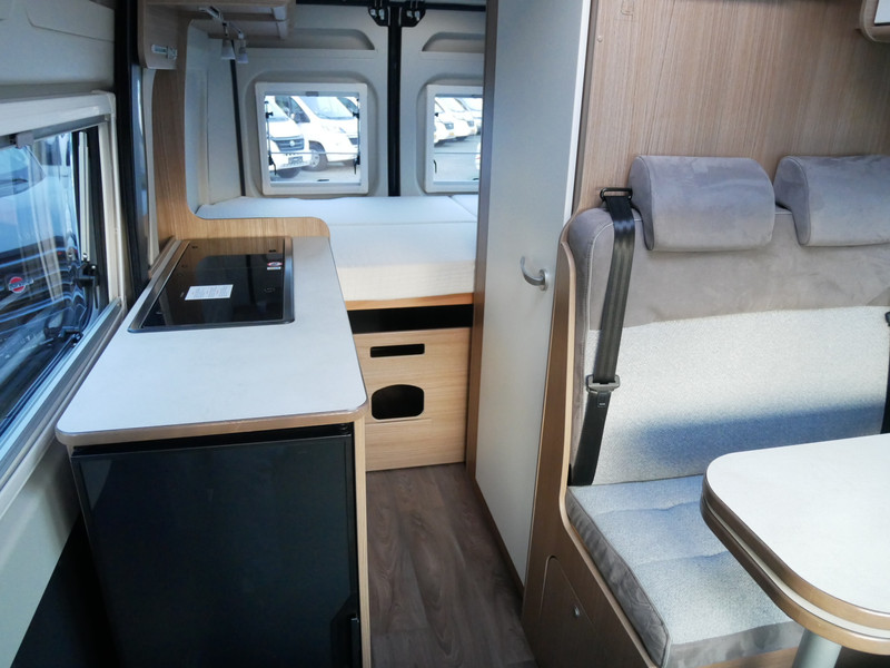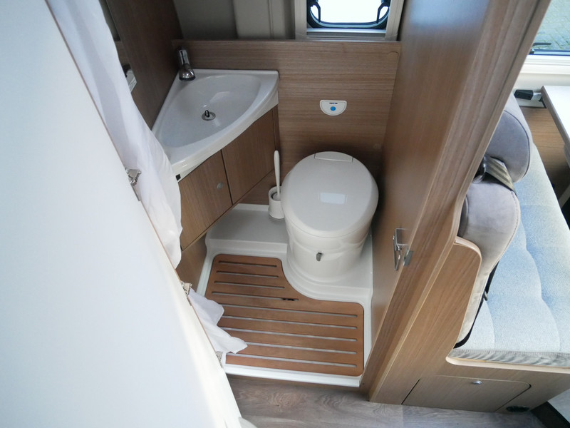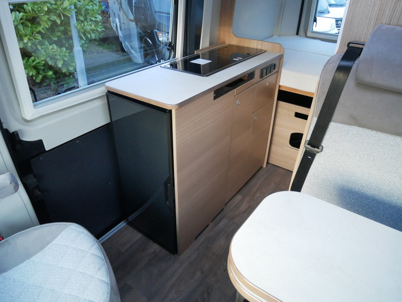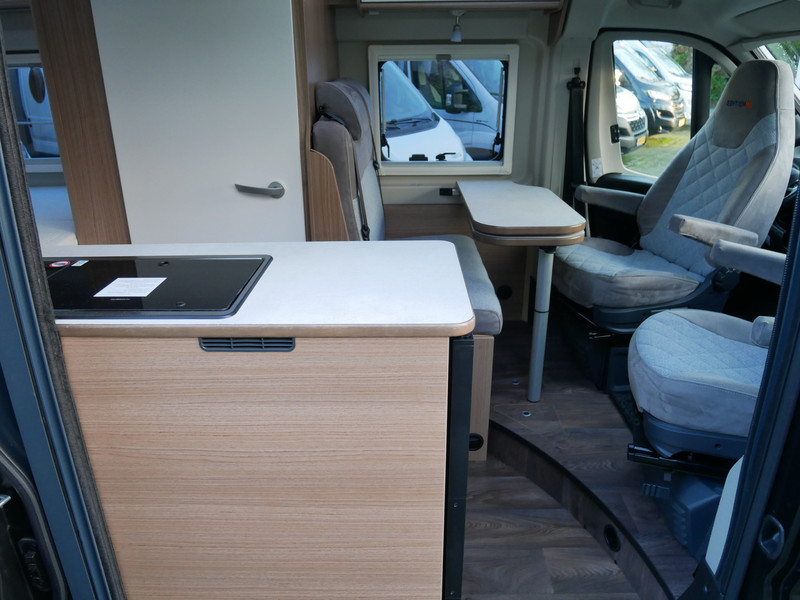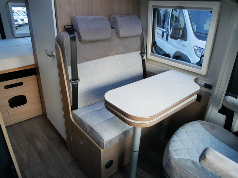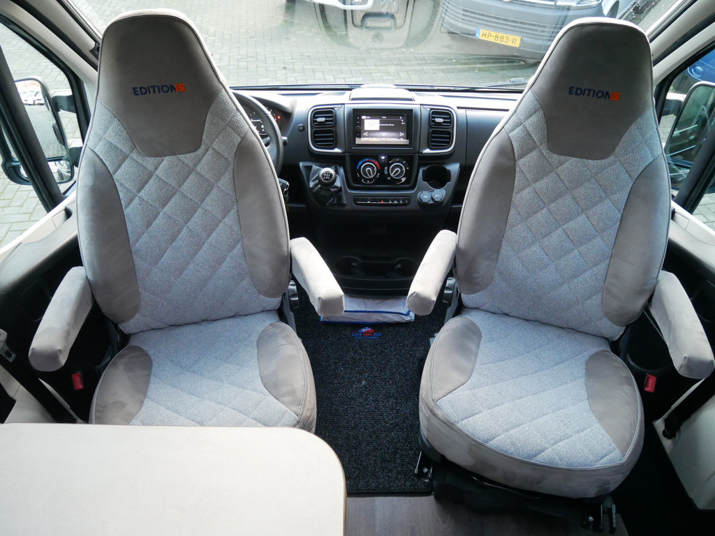 De camper is onder andere voorzien van een mooie afwerking met stoffen bekleding, keuken met 2 pits kooktoestel, dwarsbed, cruise control, Truma kachel op gas, boiler op gas, XL compressor koelkast, modern en luxe ogende tinten in het interieur, wasbak, motorairco, zeer veel opbergmogelijkheden door de vele bovenkasten, toiletruimte met douche, een ruime zit met tafel, radio/cd/mp-3 speler, bluetooth, navigatie en verduistering rondom.