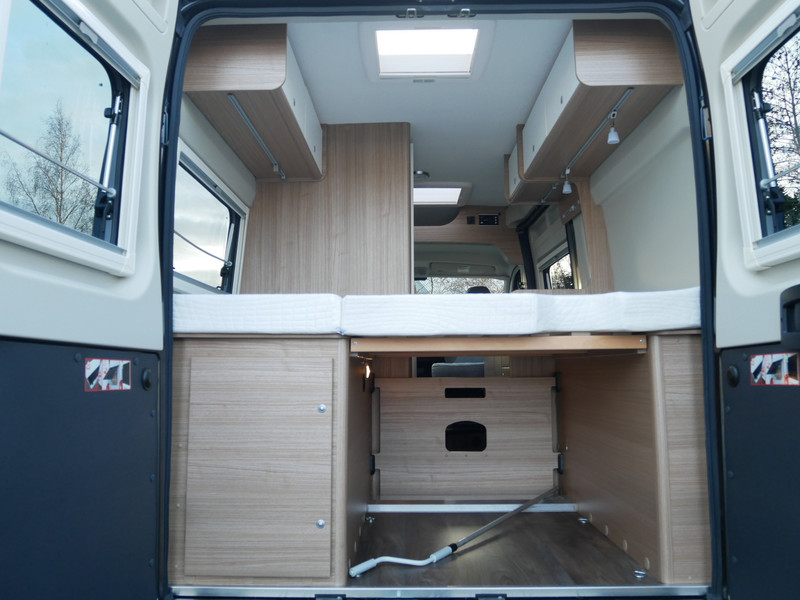 Maten: De camper heeft een stahoogte van 189 cm, dwarsbed: 135 X 195 cm