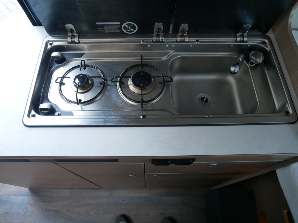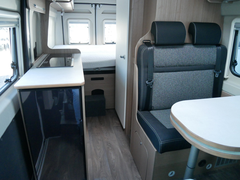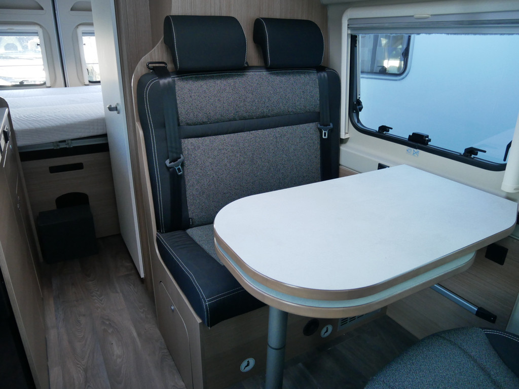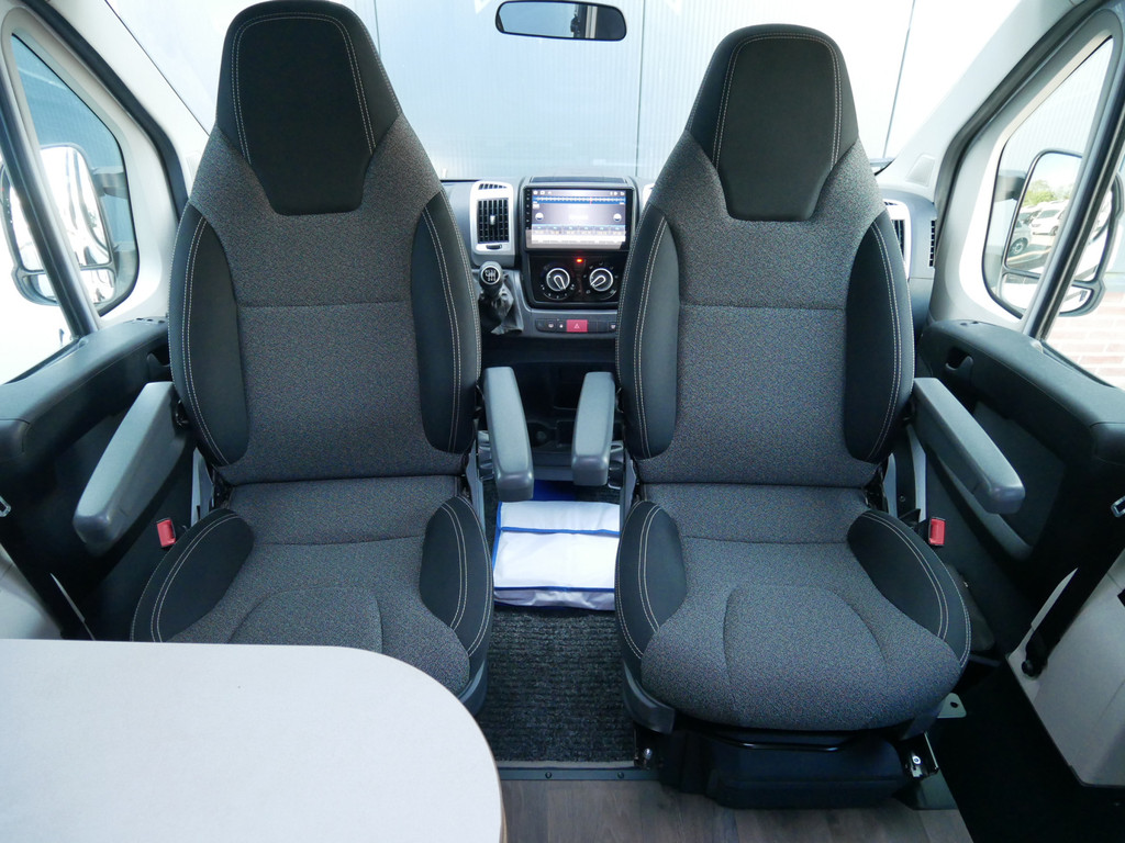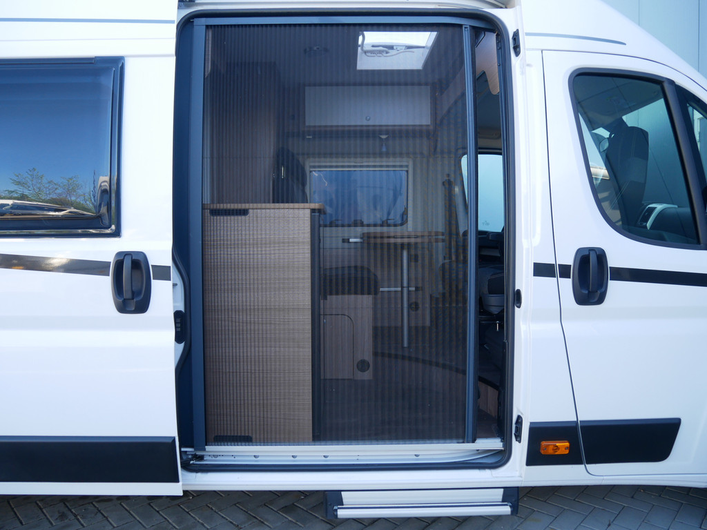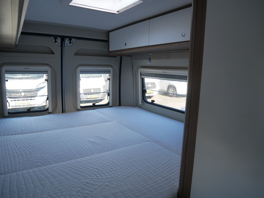 De camper is onder andere voorzien van een nette afwerking met stoffen bekleding en moderne luxe ogende tinten in het interieur, keuken met 2 pits kooktoestel, lengtebedden, cruise control, Truma kachel op gas, boiler op gas, compressor koelkast, wasbak, motorairco, radio/mp-3 speler, bluetooth, zeer veel opbergmogelijkheden in de vele bovenkasten, toiletruimte met douche, een ruime zit met tafel en verduistering in het campergedeelte.