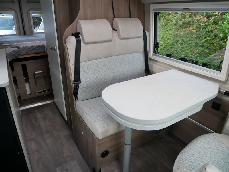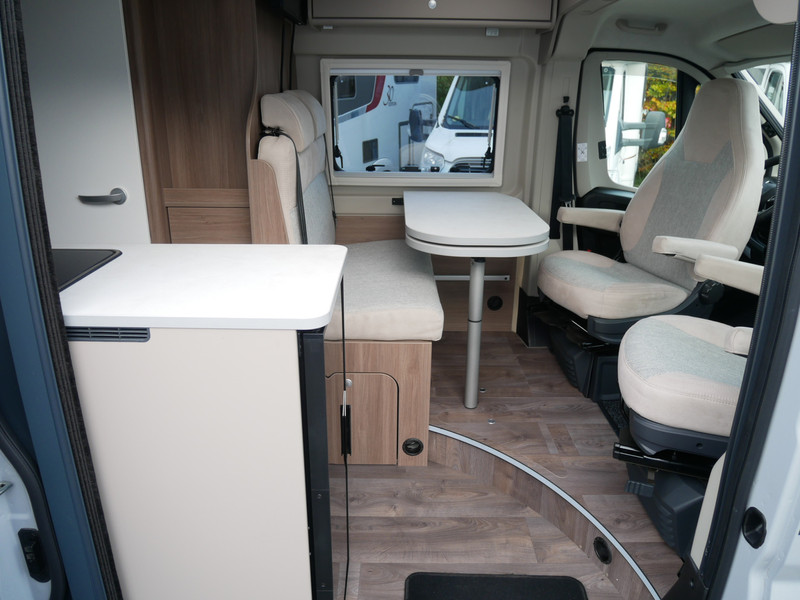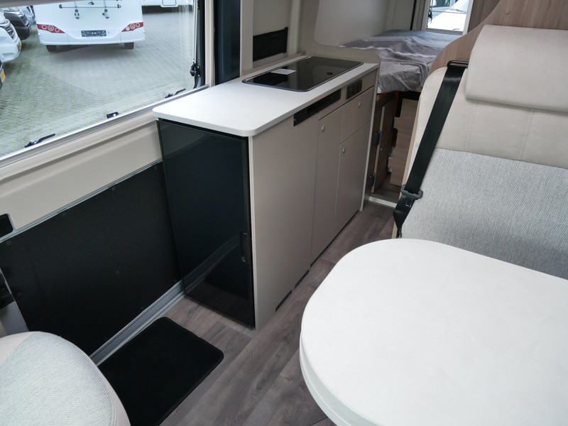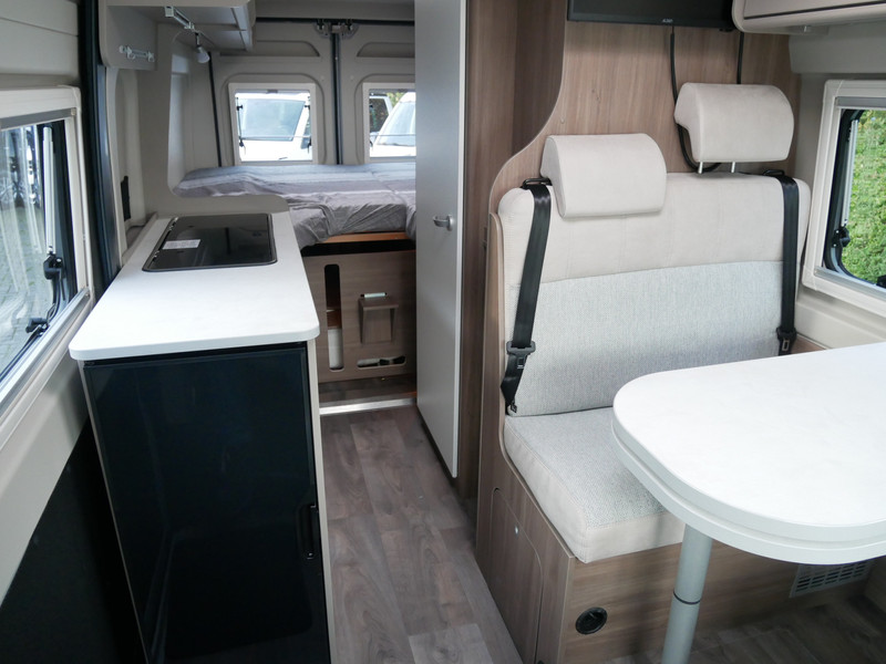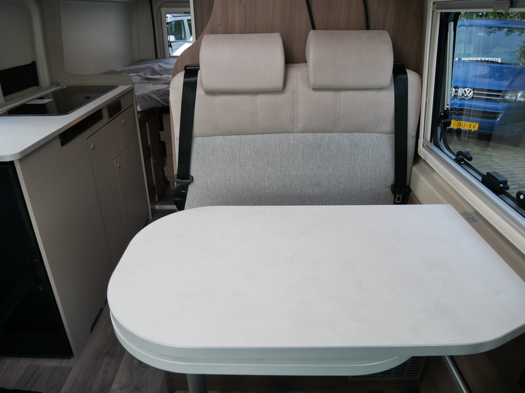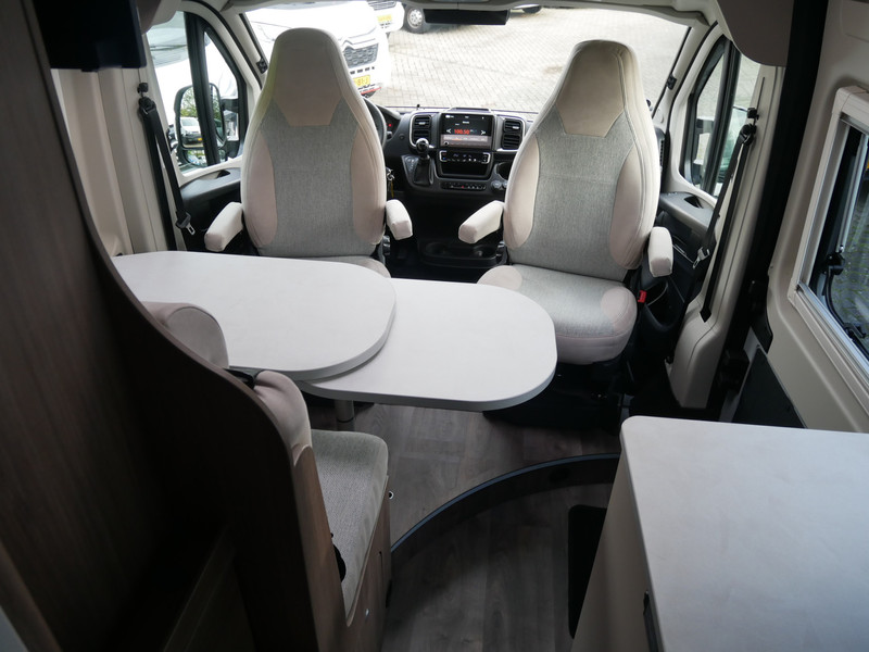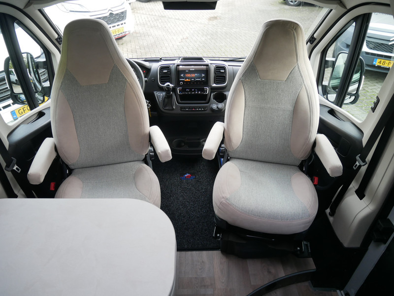 De camper is onder andere voorzien van een mooie afwerking met stoffen bekleding, keuken met 2 pits kooktoestel, 9-Traps automaat, lengtebedden, cruise control, Truma kachel op gas, boiler op gas, XL compressor koelkast, modern en luxe ogende tinten in het interieur, wasbak, motorairco, zeer veel opbergmogelijkheden door de vele bovenkasten, toiletruimte met douche, een ruime zit met tafel, radio, Apple Carplay en Android Auto, bluetooth, navigatie en verduistering rondom.
