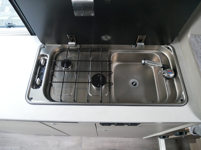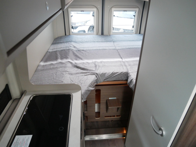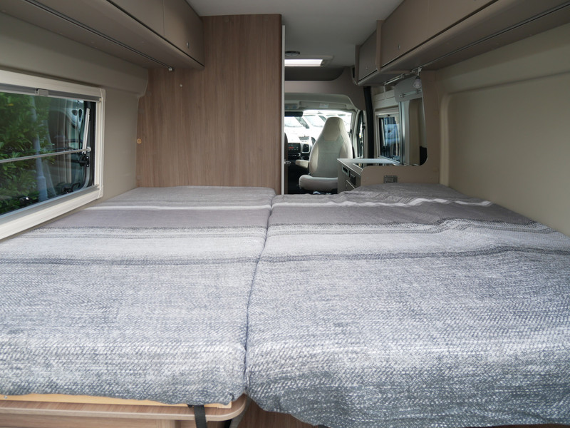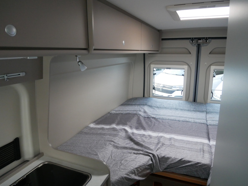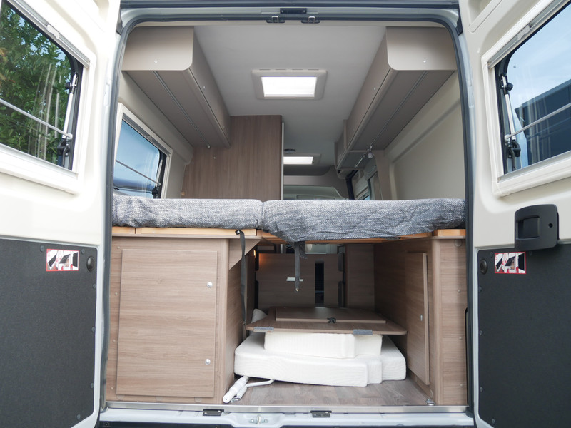 Maten: De camper heeft een stahoogte van 191 cm, lengtebedden: links 196 x 80 en rechts 188 x 85 cm