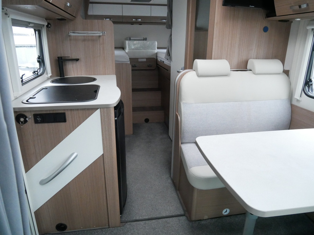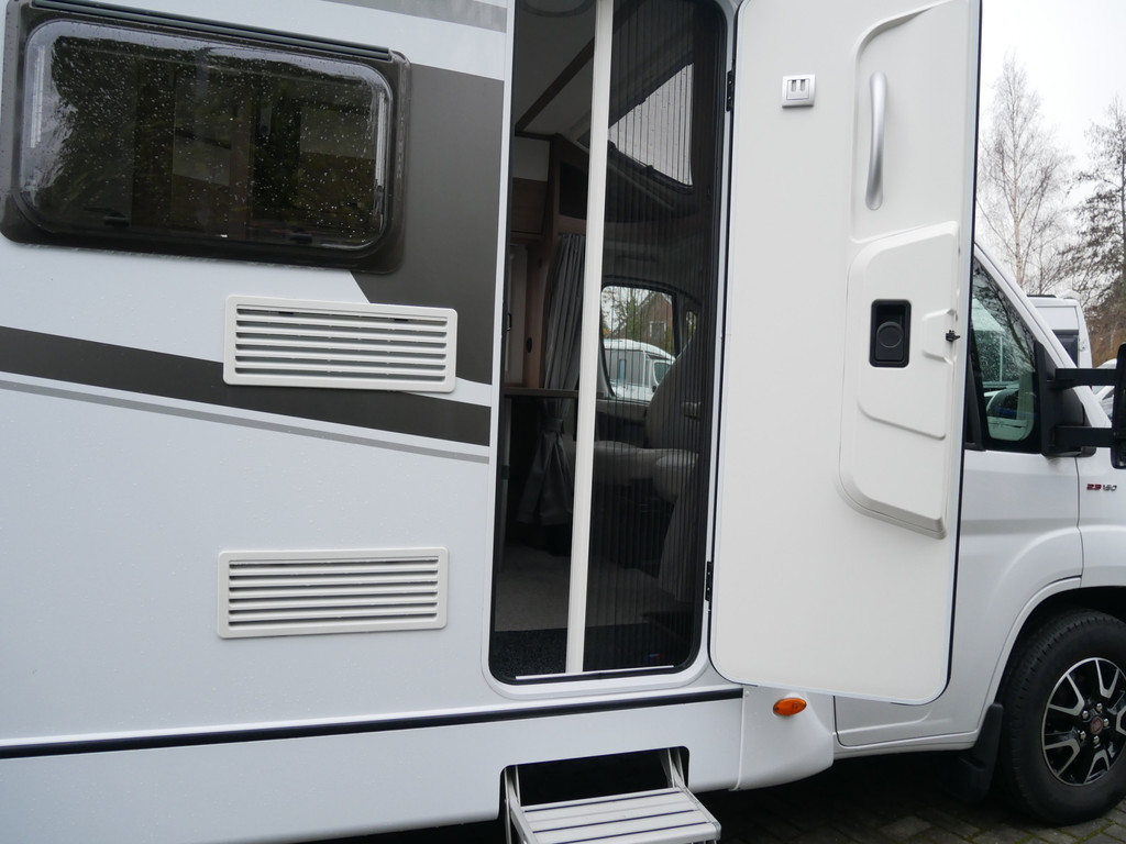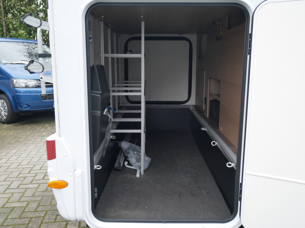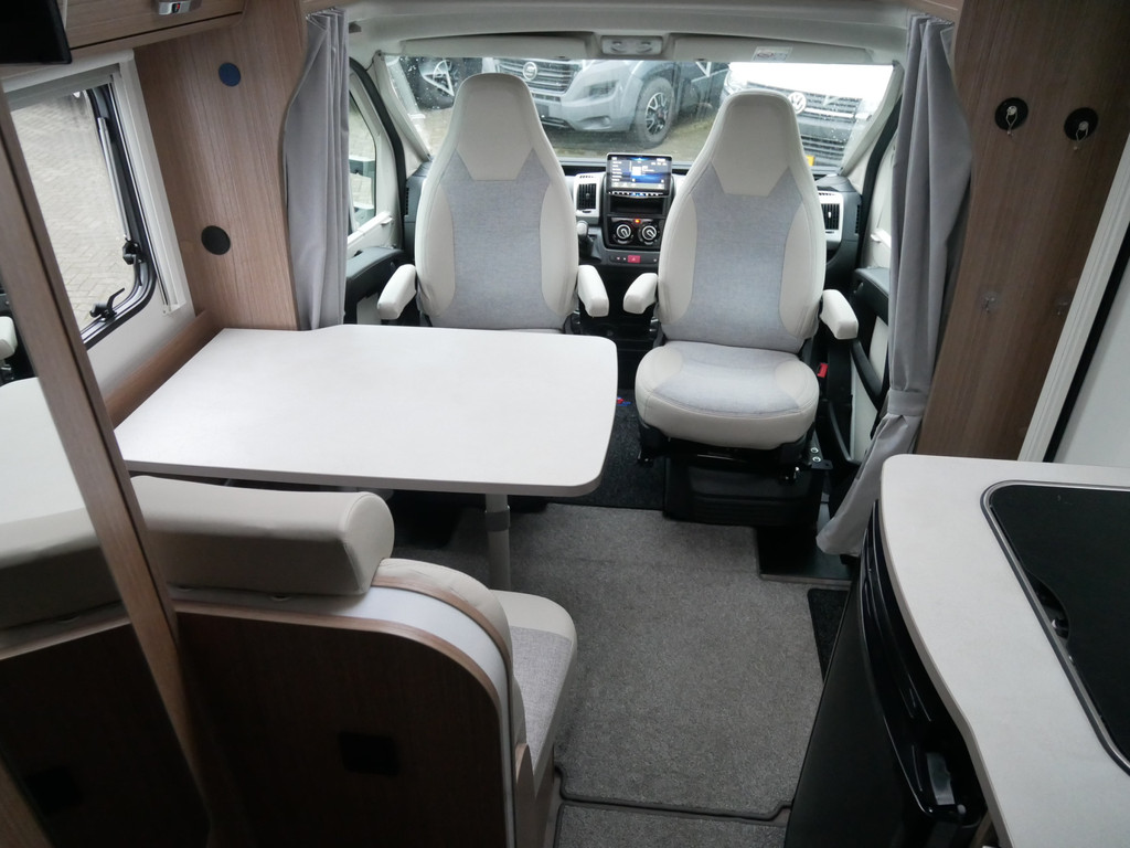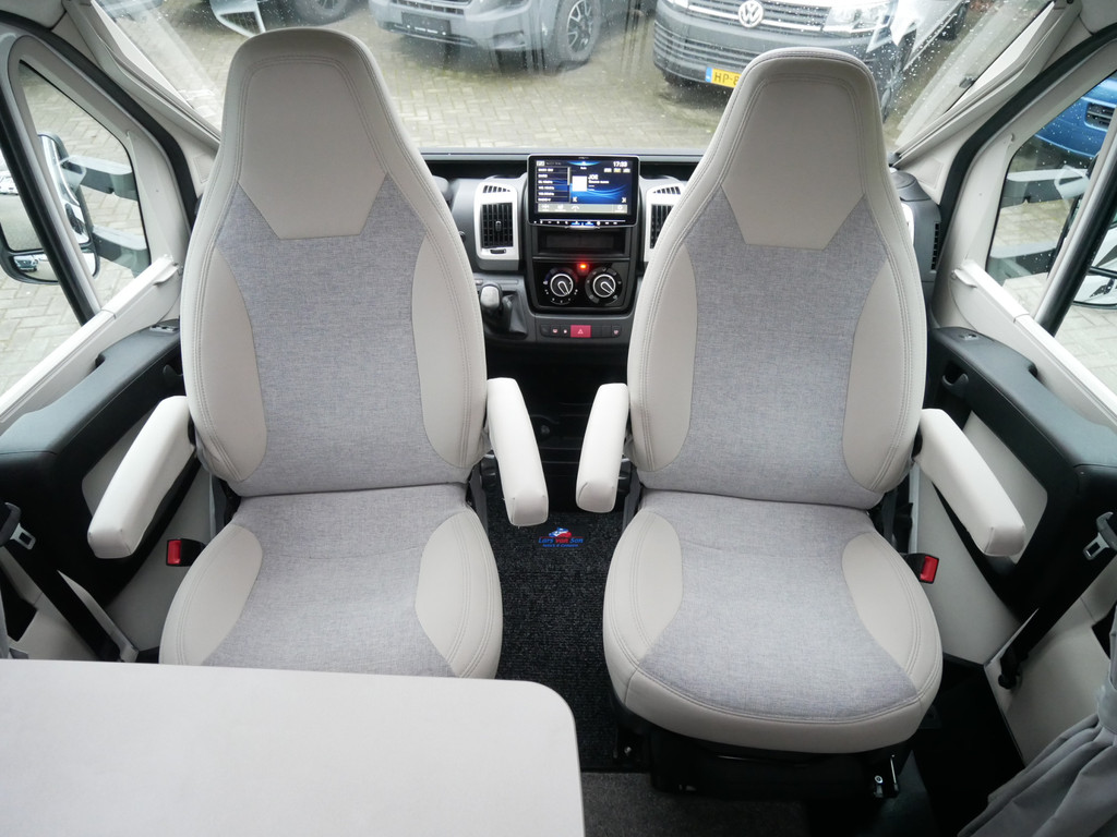 De camper is onder andere voorzien van een mooie en luxe afwerking met half lederen stoelen, moderne houtlook in het interieur, automaat, Truma combiketel op gas (verwarming en warm water), luxe ruime keuken met 3 pits kooktoestel, hordeur, elektrische opstap, wasbak, motorairco, zeer veel opbergmogelijkheden in de vele bovenkasten en de grote kast ruimtes, ruime toiletruimte met douche, grote koelkast met vriesvak, een treinzit met verschuifbare tafel, garage onder de lengtebedden met 2 garagedeuren en een cassetteluifel.