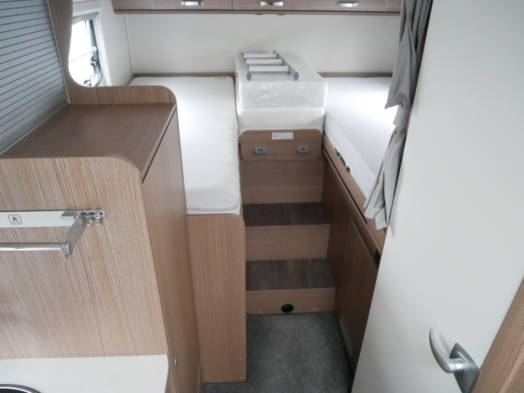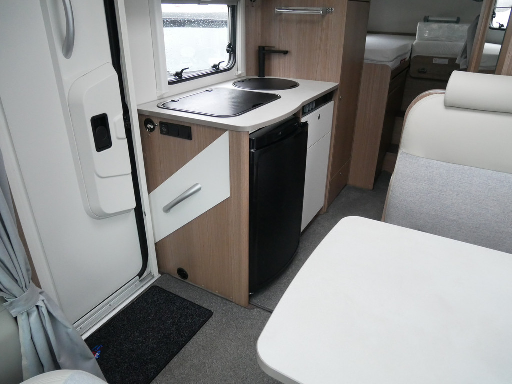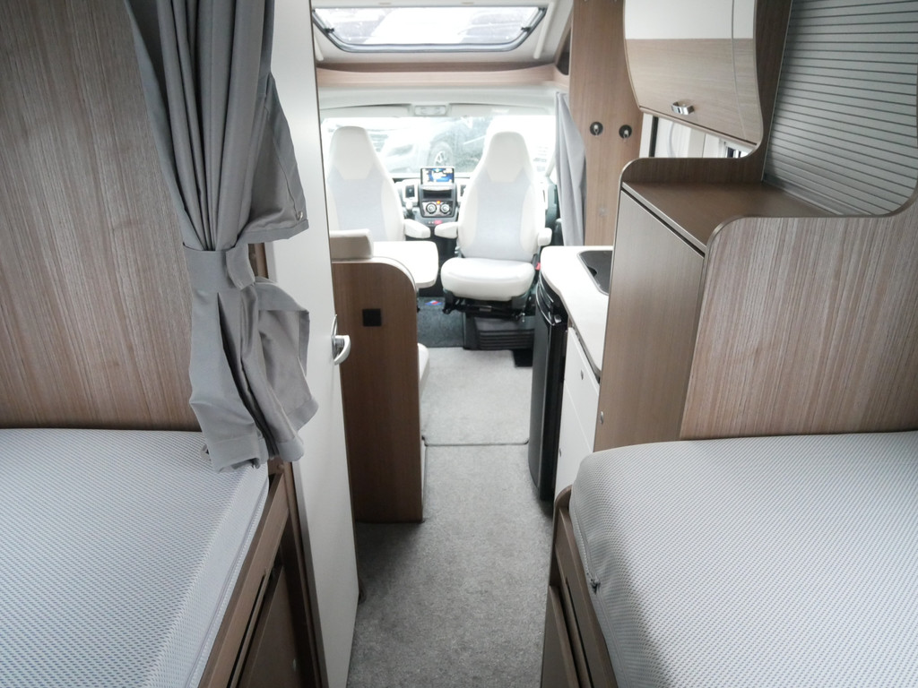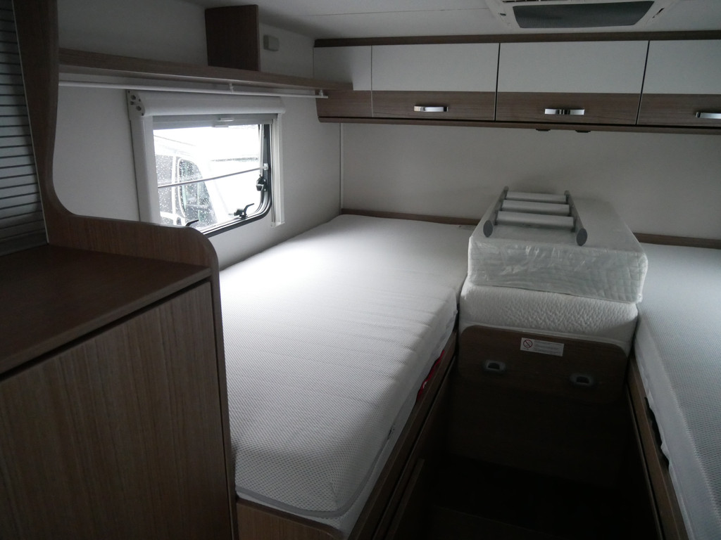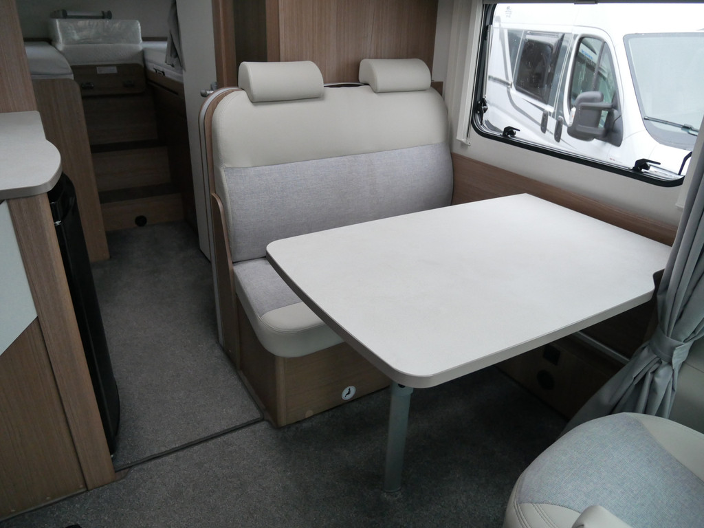De camper is onder andere voorzien van een mooie en luxe afwerking met half lederen stoelen, moderne houtlook in het interieur, automaat, Truma combiketel op gas (verwarming en warm water), luxe ruime keuken met 3 pits kooktoestel, hordeur, elektrische opstap, wasbak, motorairco, zeer veel opbergmogelijkheden in de vele bovenkasten en de grote kast ruimtes, ruime toiletruimte met douche, grote koelkast met vriesvak, een treinzit met verschuifbare tafel, garage onder de lengtebedden met 2 garagedeuren en een cassetteluifel.