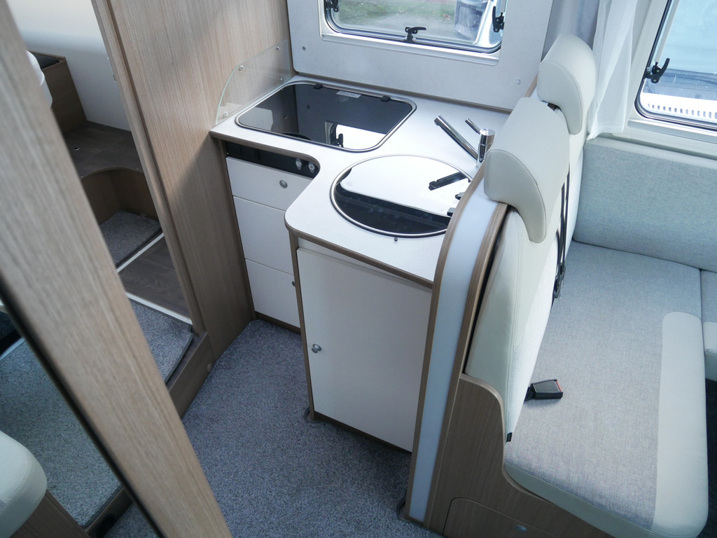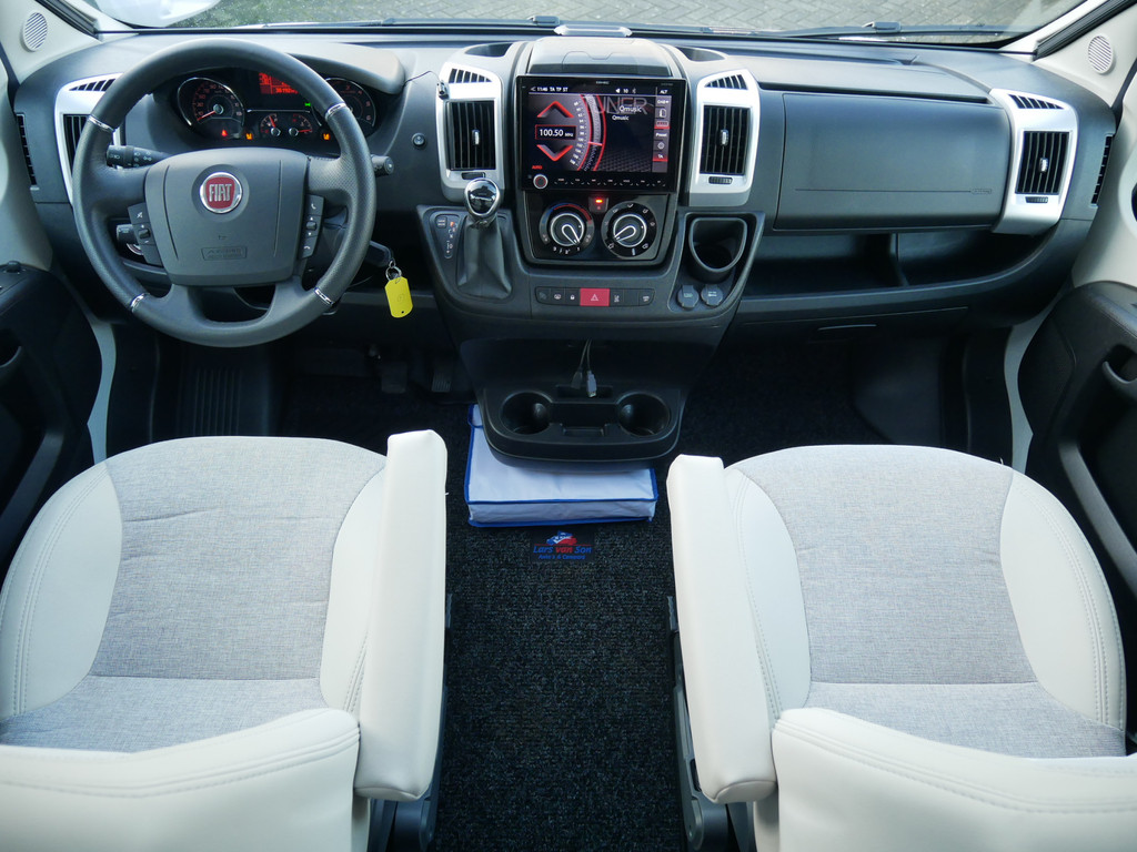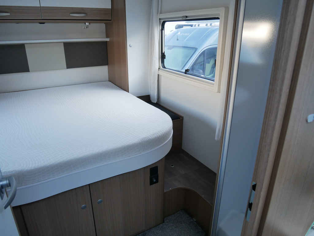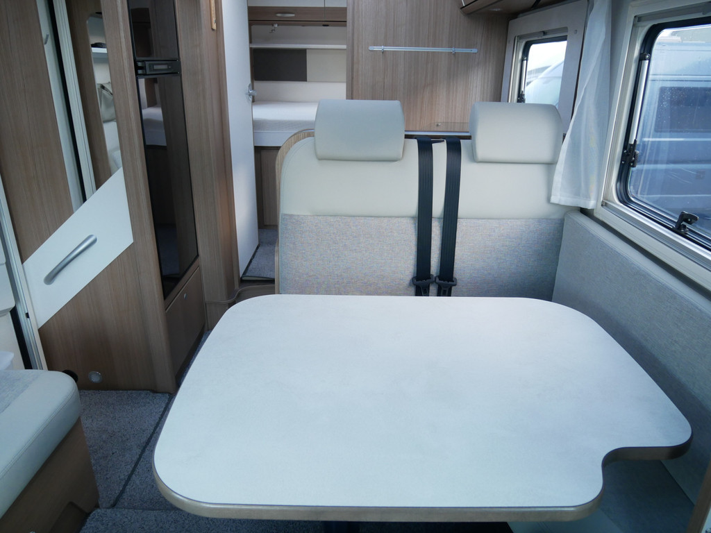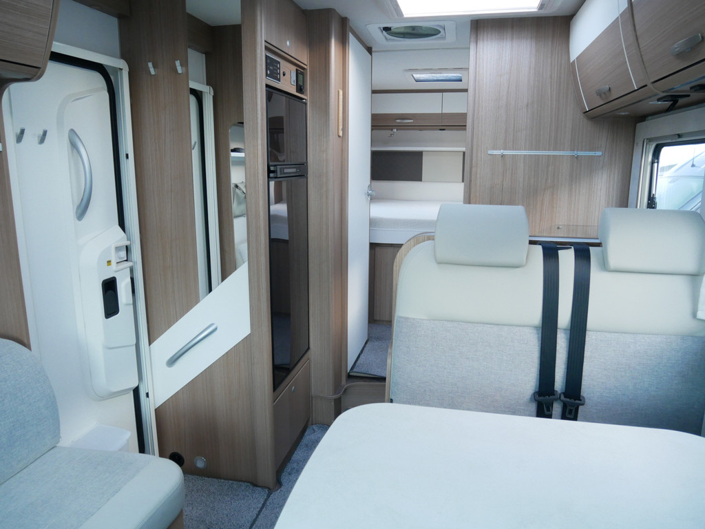 De camper is onder andere voorzien van een mooie en luxe afwerking met half lederen stoelen, moderne houtlook in het interieur, 9-Traps automaat, Truma combiketel op gas (verwarming en warm water), luxe ruime keuken met 3 pits kooktoestel, hordeur, elektrische opstap, wasbak, motorairco, zeer veel opbergmogelijkheden in de vele bovenkasten en de grote kast ruimtes, ruime toiletruimte, doucheruimte, scheidingswand slaapkamer / leefgedeelte, grote koelkast met vriesvak, een rondzit met grote tafel en fijne lange bank, garage onder het queensbed met 2 garagedeuren en een cassetteluifel.