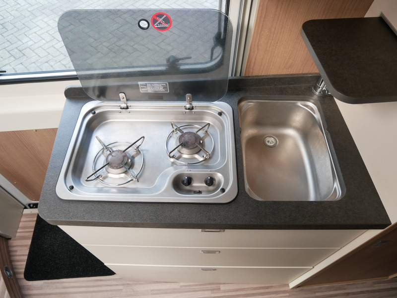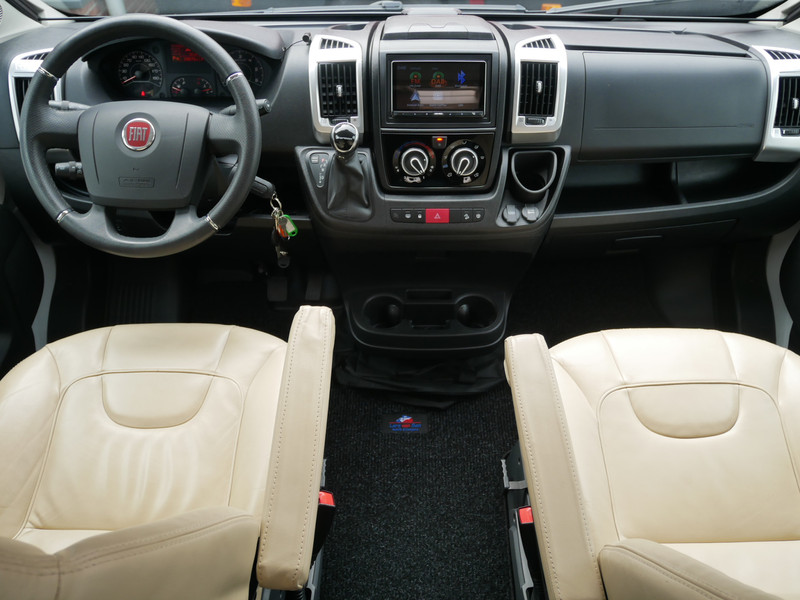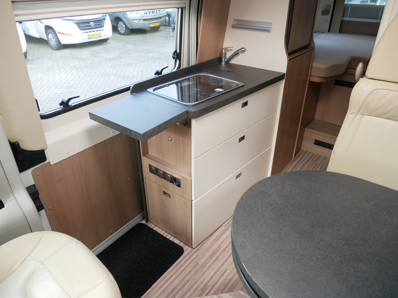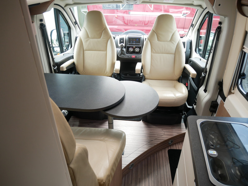 De camper is onder andere voorzien van een nette afwerking met lederen bekleding, keuken met 2 pits kooktoestel, lengtebedden, cruise control, Truma combiboiler, verwarming op gas, warm water op gas, houttinten in het interieur, wasbak, motorairco, hordeur entree, kastjes die bevestigt zijn met dubbele verbindingstechnieken voor een optimale stevigheid en een lange levensduur, zeer veel opbergmogelijkheden door de vele bovenkasten, toiletruimte met douche, slim wegschuifbare wc, radio/mp-3 speler, bluetooth, 9-traps automaat, achterruitrijcamera en een ruime zit met tafel.