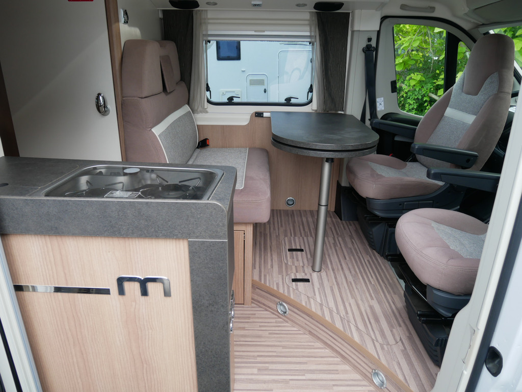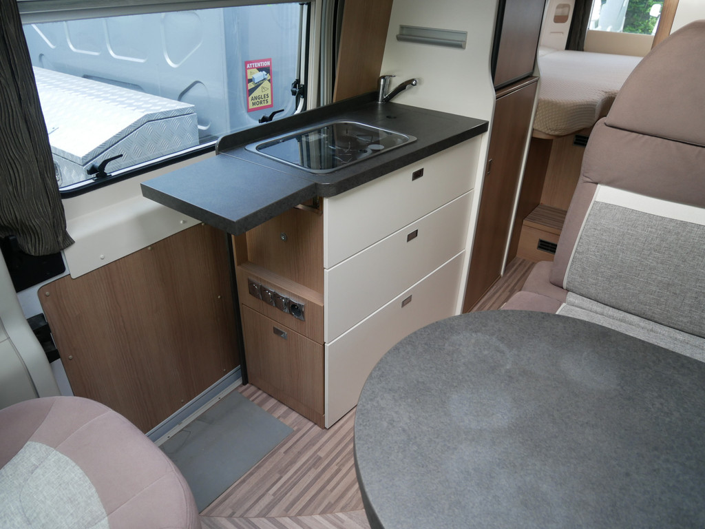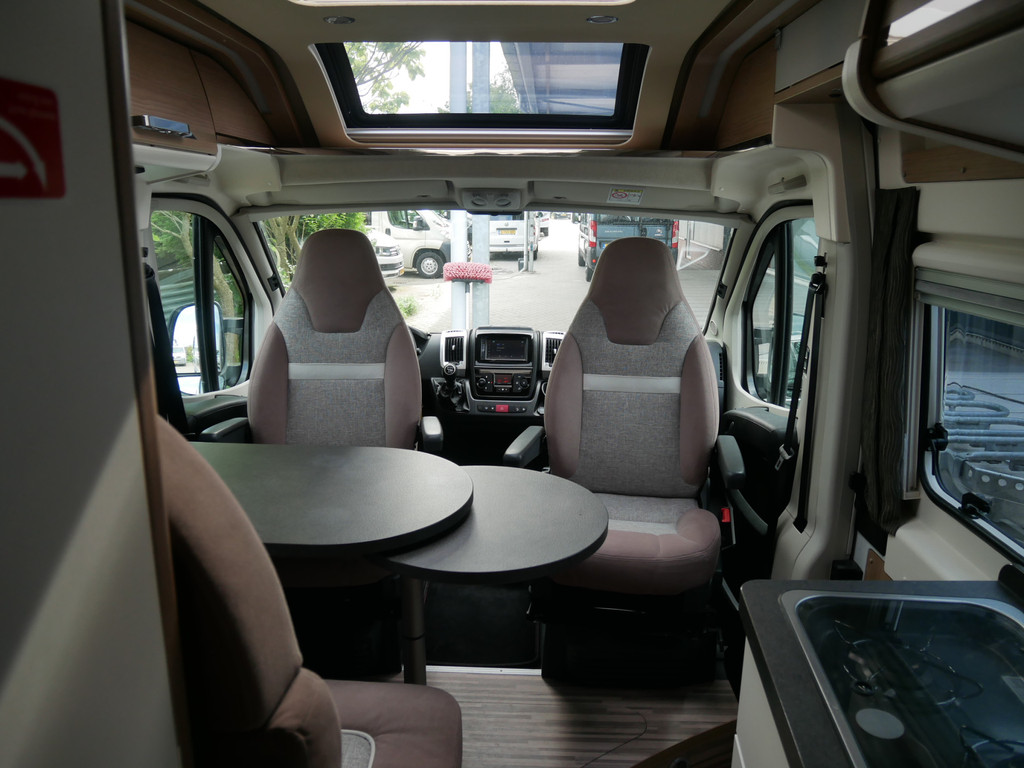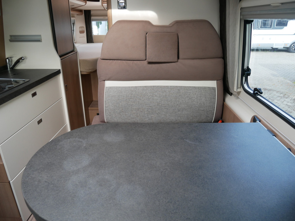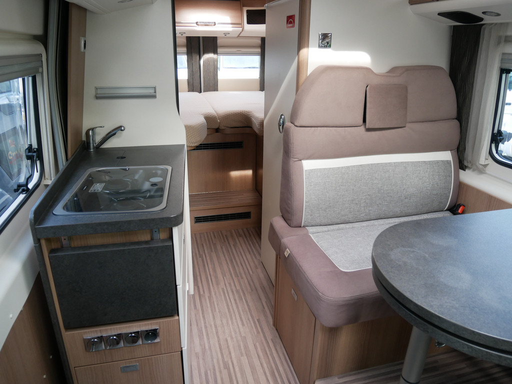 De camper is onder andere voorzien van een nette afwerking met stoffen bekleding, een goede isolatie die rijgeluiden minimaliseren, keuken met 2 pits kooktoestel, lengtebedden, cruise control, Truma combiboiler, verwarming op gas, warm water op gas, mooie en luxe houttinten in het interieur, wasbak, motorairco, hordeur entree, kastjes die bevestigt zijn met dubbele verbindingstechnieken voor een optimale stevigheid en een lange levensduur, zeer veel opbergmogelijkheden door de vele bovenkasten, toiletruimte met douche, slim wegschuifbare wc, radio/cd/mp-3 speler, bluetooth, achterruitrijcamera en een ruime zit met tafel.