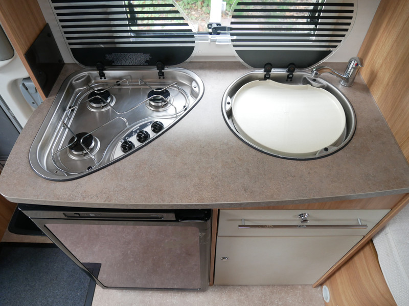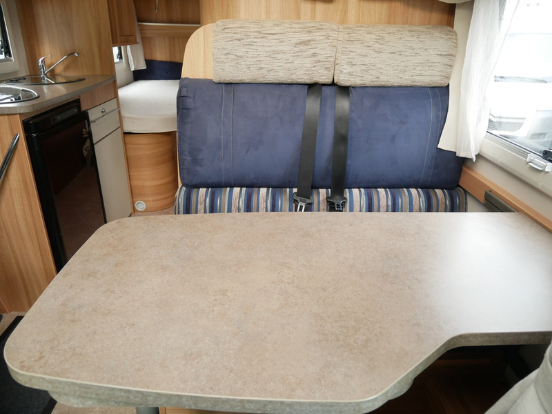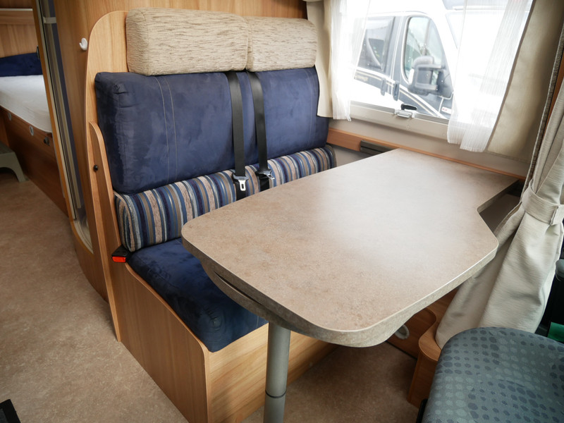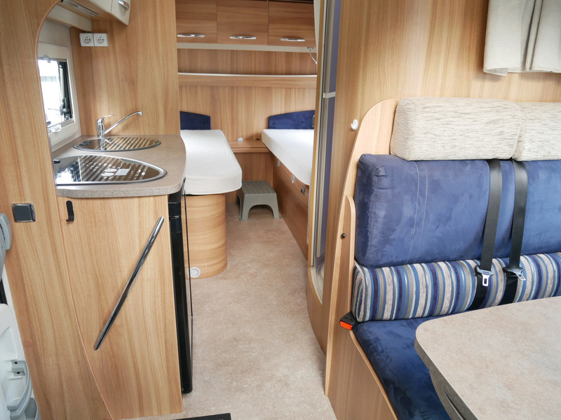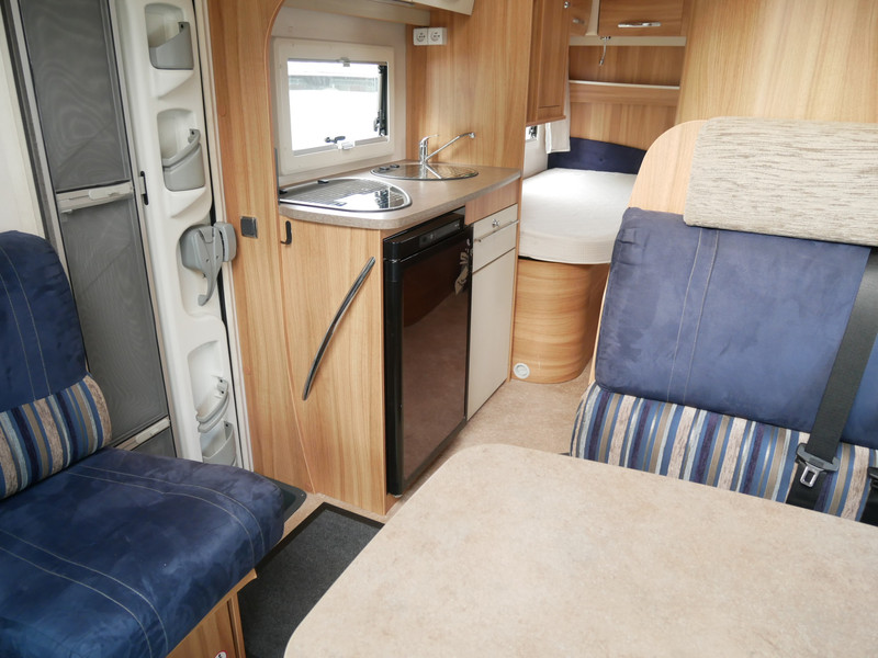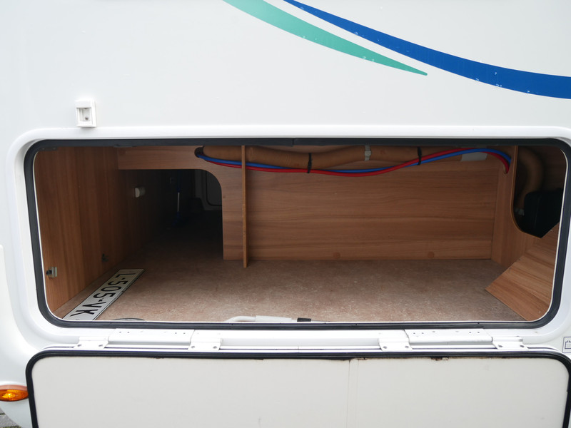 De camper is onder andere voorzien van een mooie afwerking met stoffen stoelen en lichte houttinten in het interieur, luifel, ruime keuken met 3 pits kooktoestel, lengtebedden, hefbed ( 100 x 195 cm), wasbak, hordeur entree, zonnepaneel, motorairco, zeer veel opbergmogelijkheden in de vele bovenkasten en de grote kast ruimtes, ruime toiletruimte met douche ruimte, een grote treinzit met tafel en uitklapbaar stuk en een garage met serviceluik aan de rechter en linker buitenzijde.