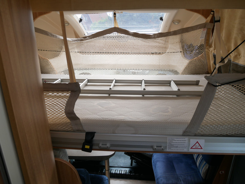 De camper heeft een stahoogte van 187 cm onder het hefbed en 210 cm in het overige deel. lengtebedden links: 85 X 205 Cm, rechts: 85 X 205 cm en volledige bed: 205 X 210 cm.