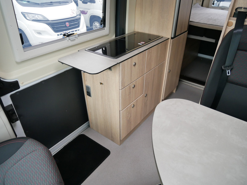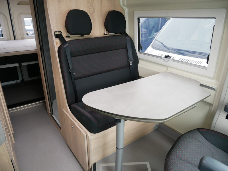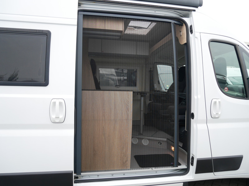 De camper is onder andere voorzien van een leuke afwerking met stoffen bekleding, keuken met 2 pits kooktoestel, truma kachel op gas, boiler, lichte houttinten in het interieur, wasbak, motorairco, zeer veel opbergmogelijkheden door de vele kasten, toiletruimte met douche, radio/mp-3 speler, bluetooth, een zit met tafel en een hordeur entree.