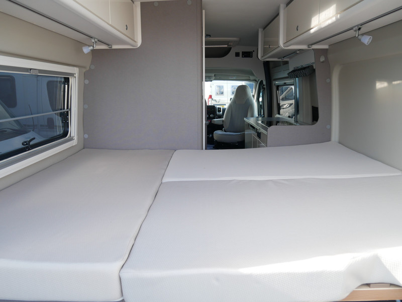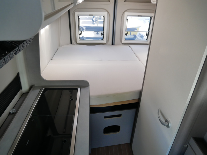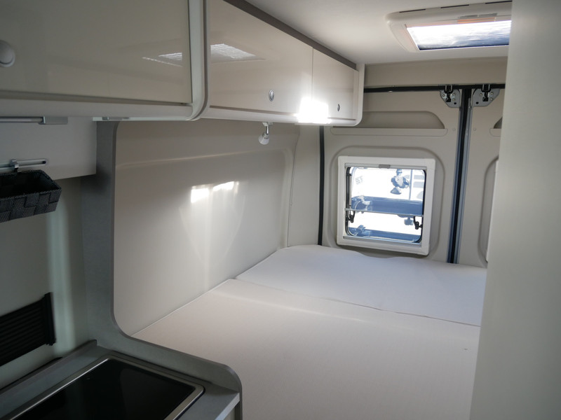 Maten: De camper heeft een stahoogte van 190 cm en het dwarsbed 160 X 195 cm