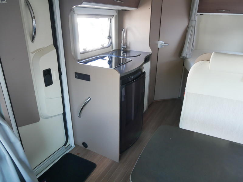 De camper is onder andere voorzien van een mooie en luxe afwerking met half lederen stoelen, moderne houtlook in het interieur, cassette luifel, fietsenrek, Truma combiketel op gas, luxe ruime keuken met 3 pits kooktoestel, hordeur, elektrische opstap, wasbak, motorairco, zeer veel opbergmogelijkheden in de vele bovenkasten en de grote kast ruimtes, ruime toiletruimte met douche, koelkast met vriesvak, een treinzit met grote tafel en een garage onder het fransbed met een garagedeur.