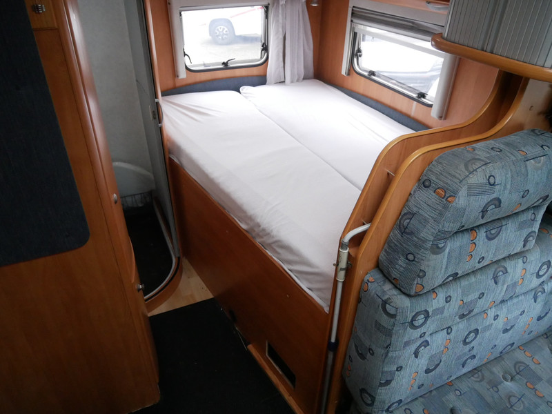 De camper is onder andere voorzien van 2 slaapplaatsen in het fransbed, keukenblok met wasbak en gastoestel, treinzit met bank, draaibare voorstoelen, koelkast, kachel, boiler, radio/cd/mp-3 speler, garage en trekhaak.