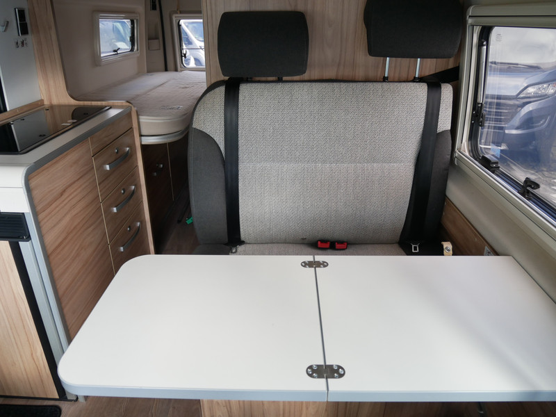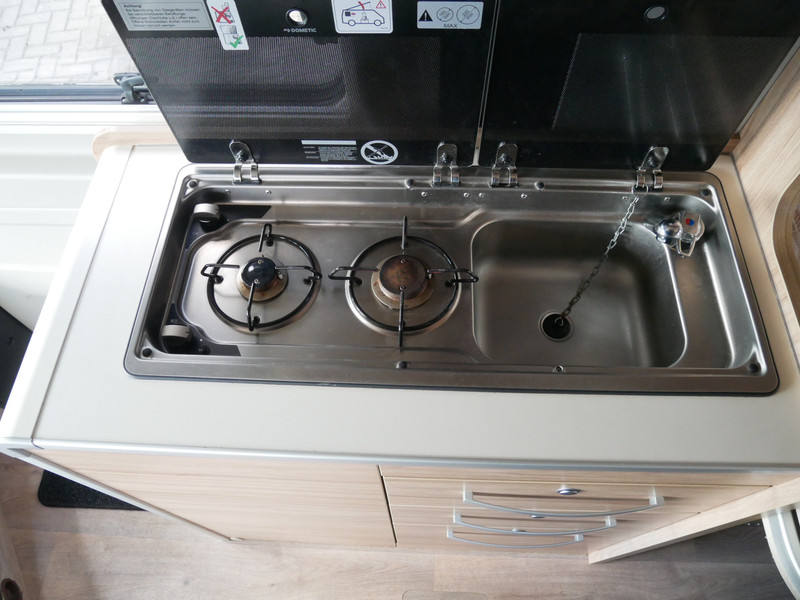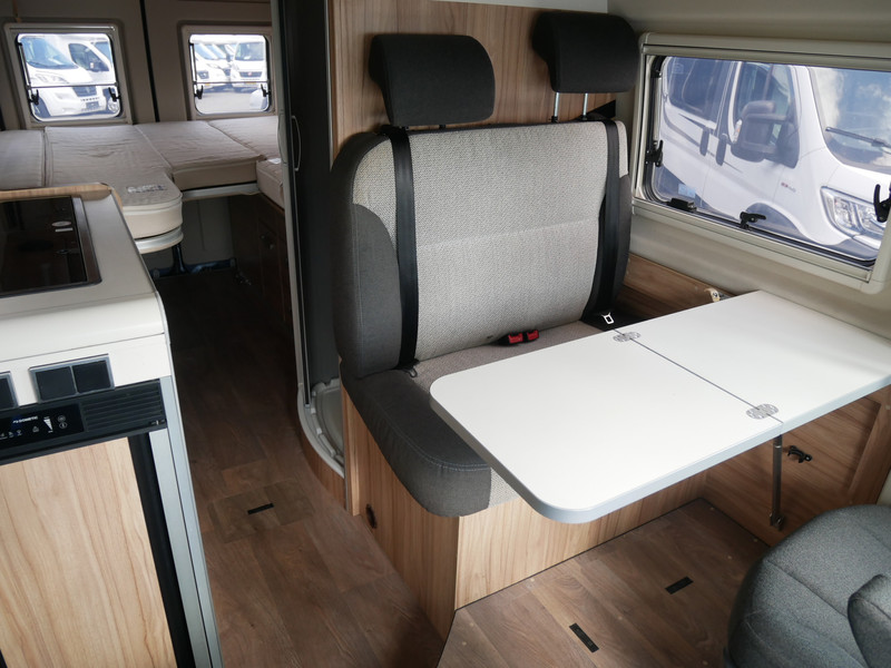 De camper is onder andere voorzien van stoffen bekleding, keuken met 2 pits kooktoestel, lengtebedden, slaaphefdak, cruise control, Truma kachel op gas, boiler, compressor koelkast, lichte houttinten in het interieur, wasbak, radio, achteruitrijcamera, motorairco, zeer veel opbergmogelijkheden door de vele kasten, laag keukenblok, toiletruimte met schuifdeur, een ruime zit met een mooie inklapbare tafel, luifel, trekhaak en een hordeur.