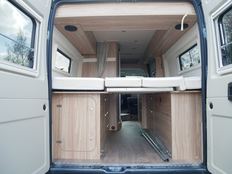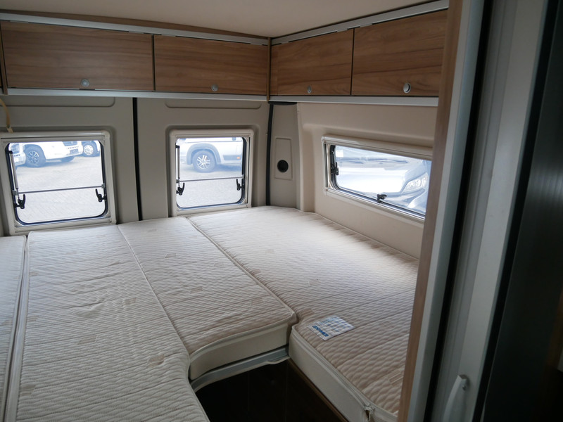 Maten: de camper heeft een stahoogte van 188 cm, lengtebedden: 200 x 80 cm, 185 x 80 cm, 195 cm volle breedte cm en een slaaphefdak: 130 x 200 cm