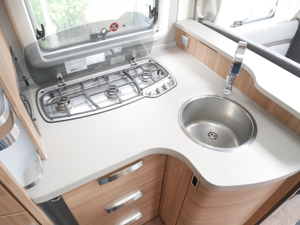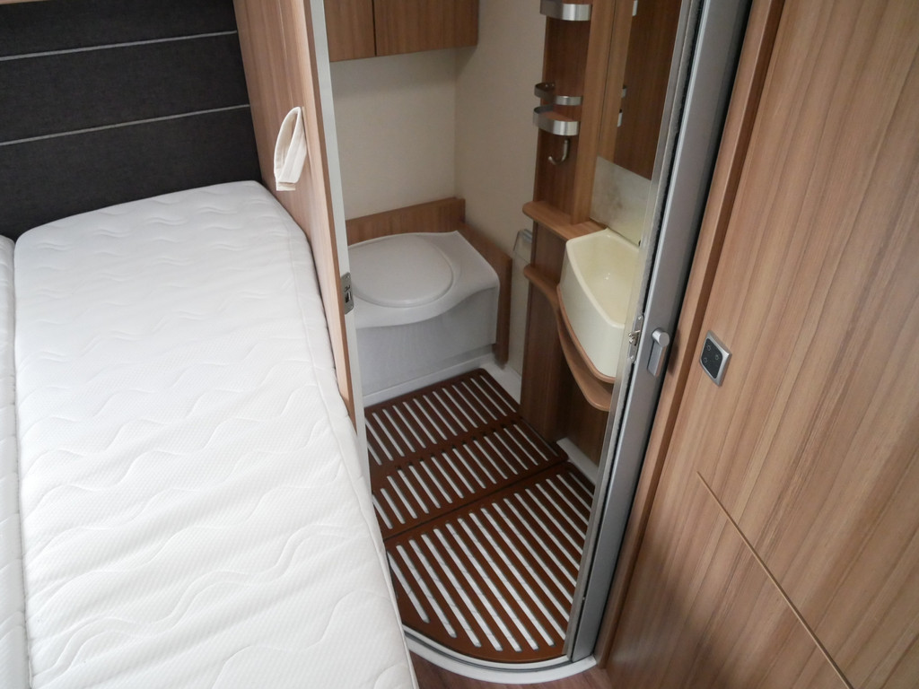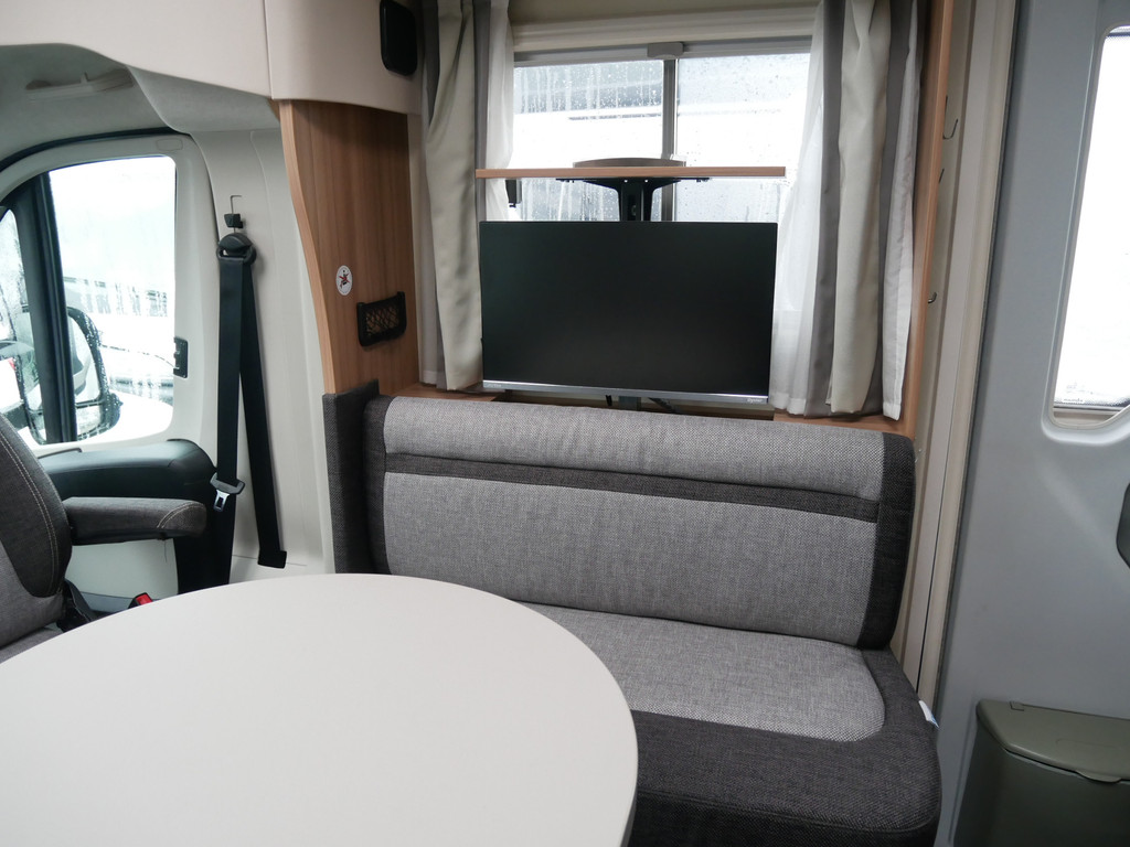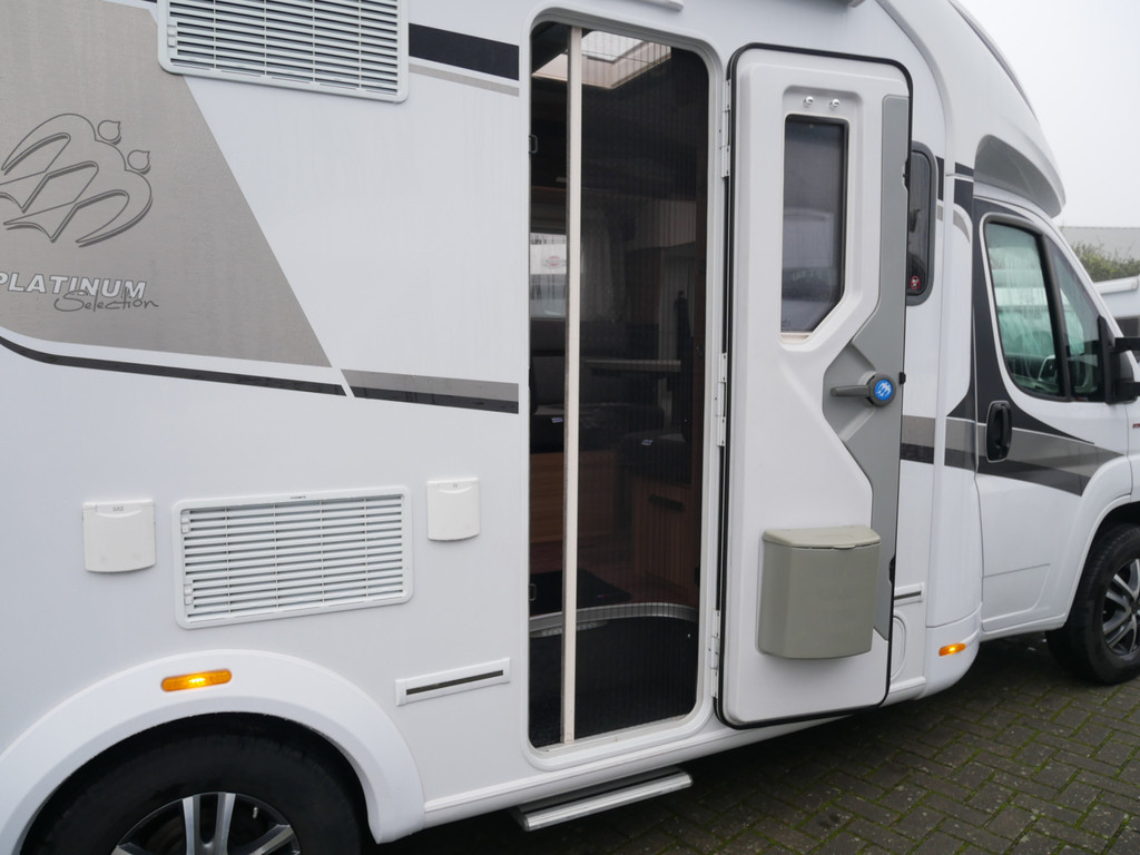De camper is onder andere voorzien van een mooie en luxe afwerking met stoffen stoelen, moderne houtlook in het interieur, cassette luifel, Truma combiketel op gas, luxe ruime keuken met 3 pits kooktoestel, centrale deurvergrendeling met afstandsbediening, elektrische opstap, wasbak, motorairco, zeer veel opbergmogelijkheden in de vele bovenkasten en de grote kast ruimtes, ruime toiletruimte met douche, grote koelkast met vriesvak, een rondzit met grote verschuifbare tafel en een garage onder het Fransbed met een garagedeur.