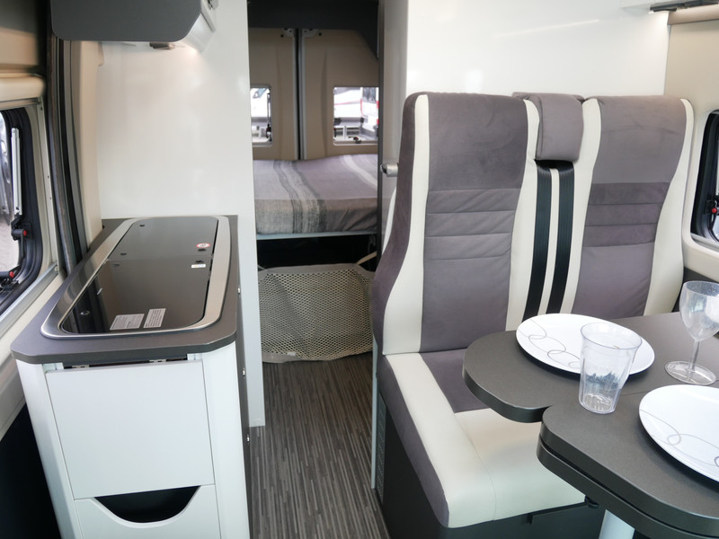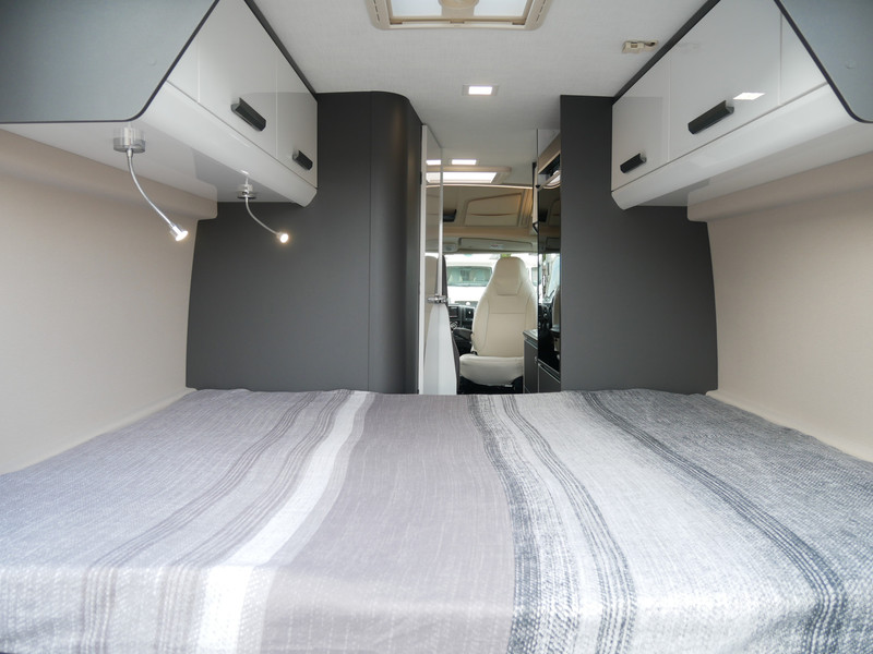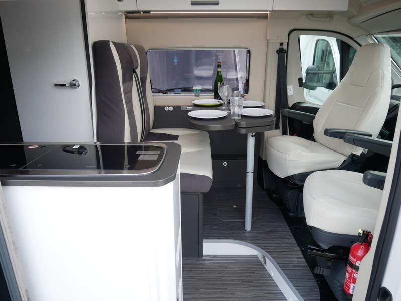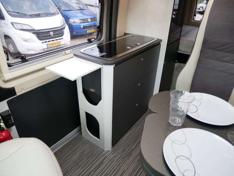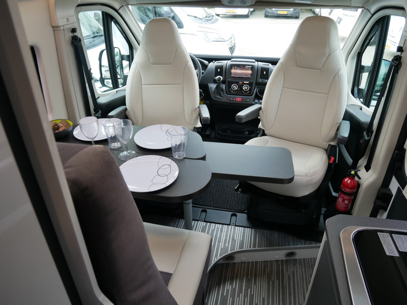 De camper is onder andere voorzien van een mooie afwerking met lederen bekleding, keuken met 2 pits kooktoestel, dwarsbed, cruise control, Truma kachel op diesel, boiler op diesel, koelkast met apart vriesvak, modern en licht ogende tinten in het interieur, wasbak, motorairco, zeer veel opbergmogelijkheden door de vele kasten, toiletruimte met doucheruimte, bluetooth radio, een ruime zit met tafel en verduistering rondom.
