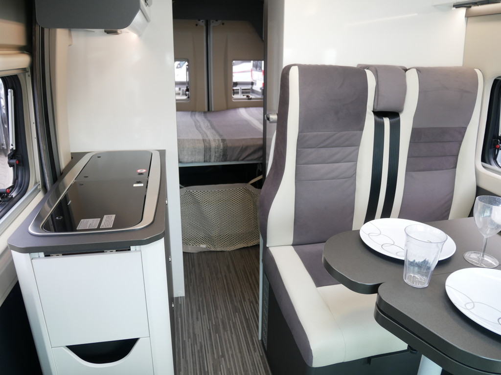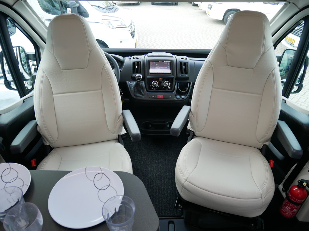 De camper is onder andere voorzien van een mooie afwerking met lederen bekleding, 9-Traps Automaat, keuken met 2 pits kooktoestel, dwarsbed, cruise control, Truma kachel op diesel, boiler op diesel, koelkast met apart vriesvak, modern en licht ogende tinten in het interieur, wasbak, motorairco, zeer veel opbergmogelijkheden door de vele kasten, toiletruimte met doucheruimte, bluetooth radio, een ruime zit met tafel en verduistering rondom.