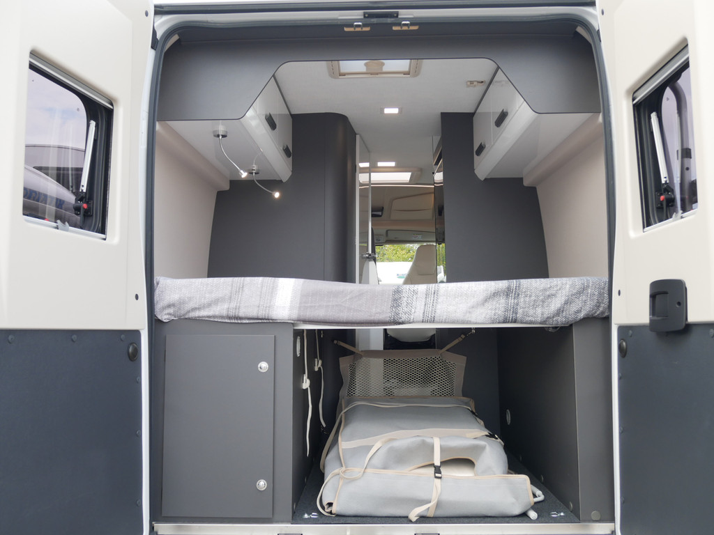 Maten: de camper heeft een stahoogte van 190 cm en het dwarsbed 150 X 195 cm.