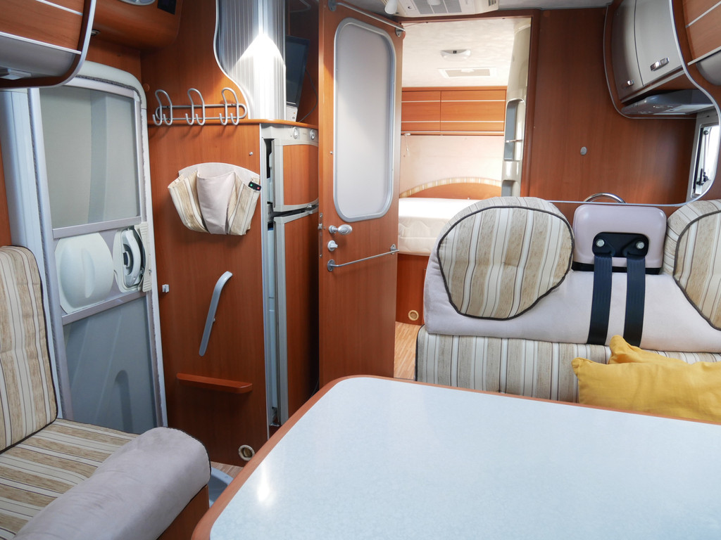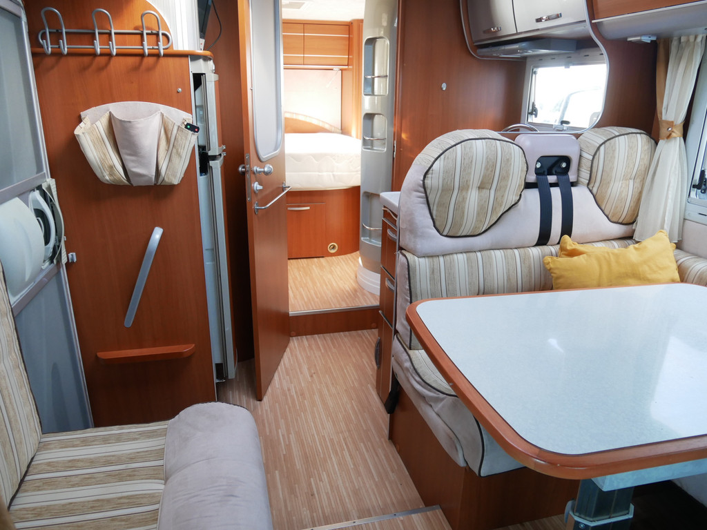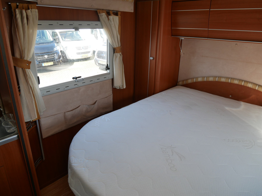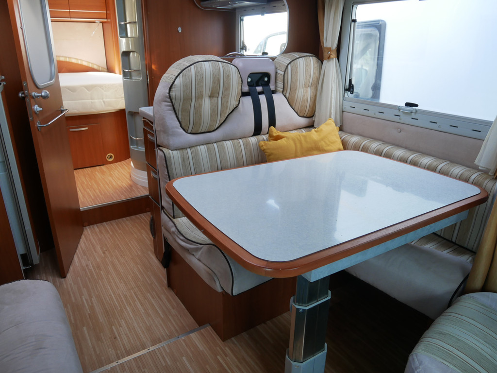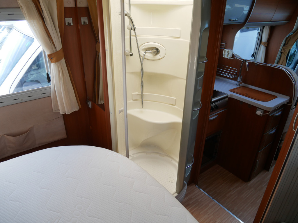 De camper is onder andere voorzien van stoffen bekleding, radio/mp-3 speler, bluetooth, luxe ruime keuken met 4 pits kooktoestel, gas oven, mooie en luxe houttinten in het interieur, queensbed, wasbak, motorairco, zeer veel opbergmogelijkheden door de vele en grote kast ruimtes, aparte toiletruimte, aparte ruime douche ruimte met grote koepel in dak, een fijne ruime rondzit met tafel en een garage met serviceluik aan de rechter en linker buitenzijde.