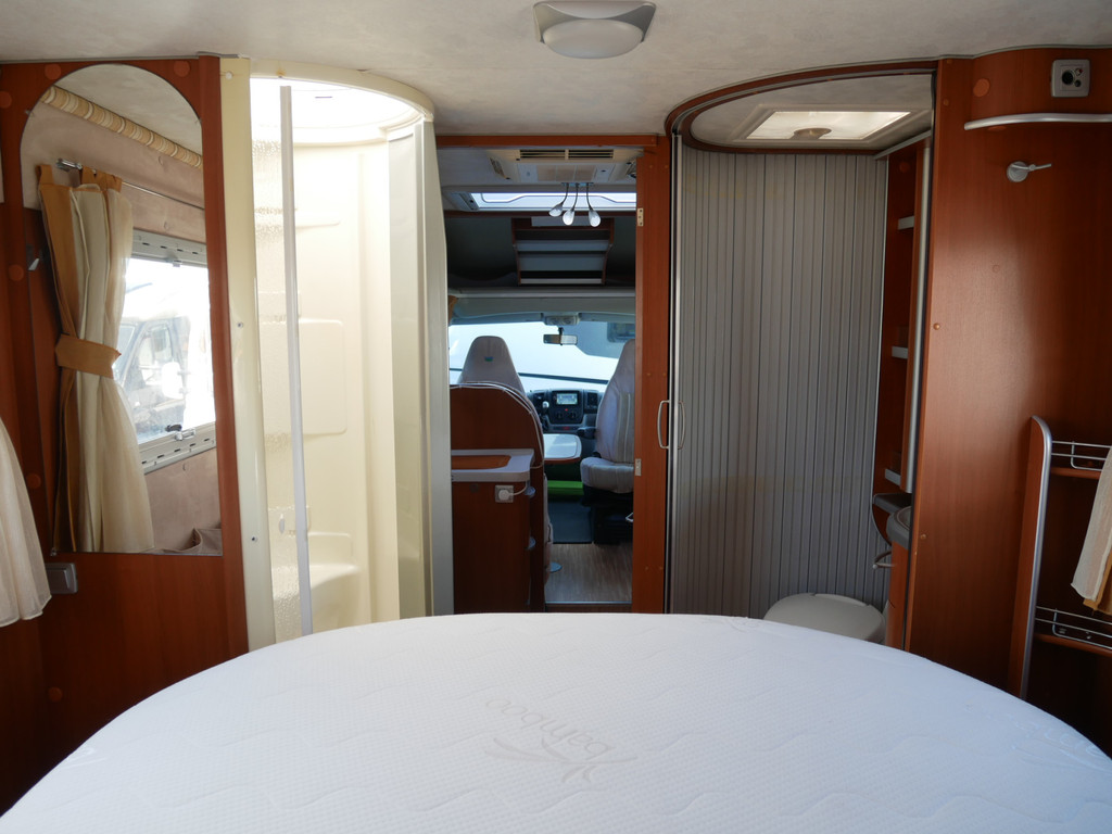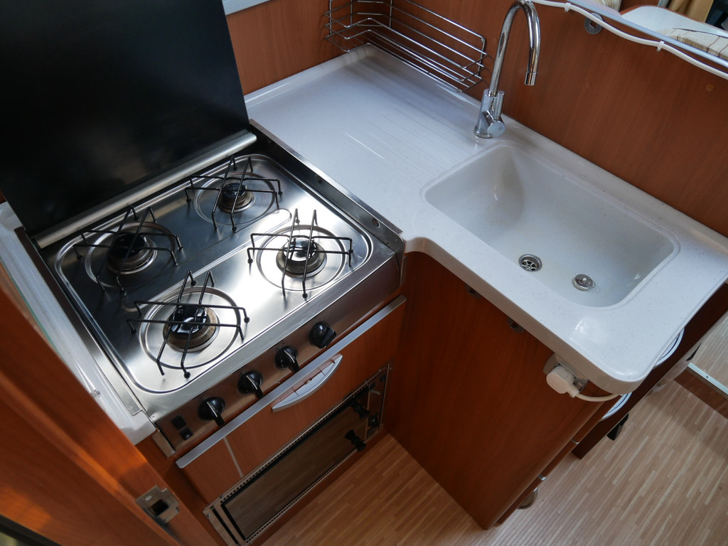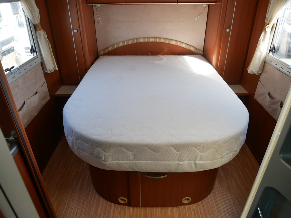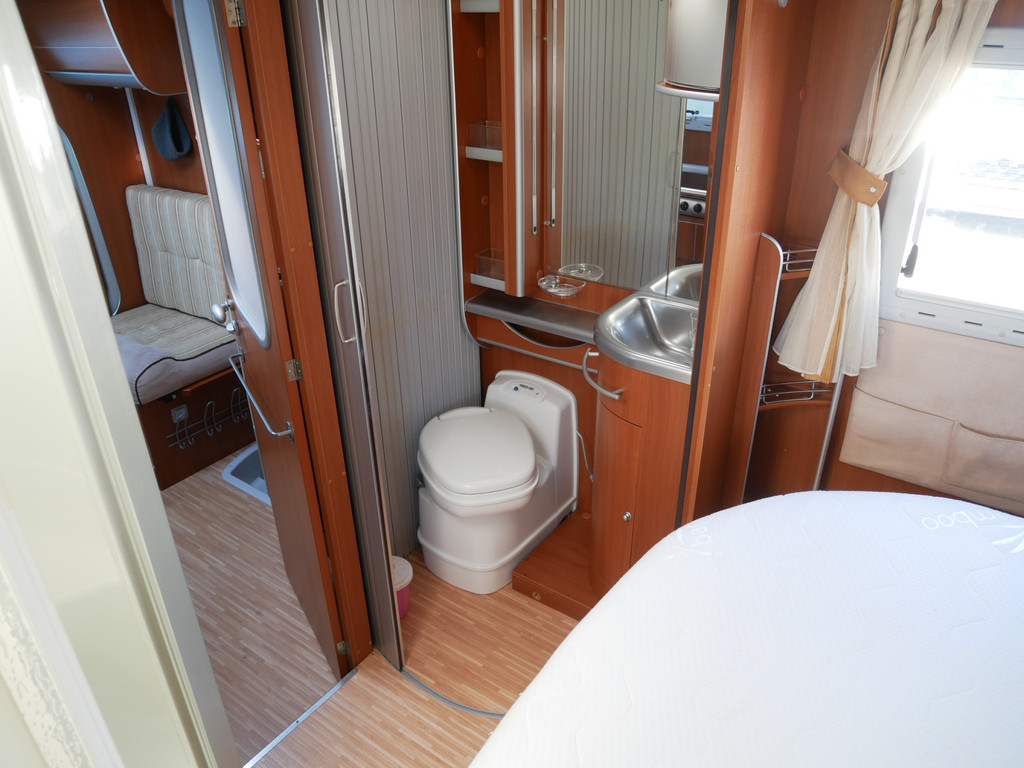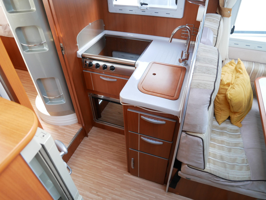 De camper is onder andere voorzien van stoffen bekleding, radio/mp-3 speler, bluetooth, luxe ruime keuken met 4 pits kooktoestel, gas oven, mooie en luxe houttinten in het interieur, queensbed, wasbak, motorairco, zeer veel opbergmogelijkheden door de vele en grote kast ruimtes, aparte toiletruimte, aparte ruime douche ruimte met grote koepel in dak, een fijne ruime rondzit met tafel en een garage met serviceluik aan de rechter en linker buitenzijde.
