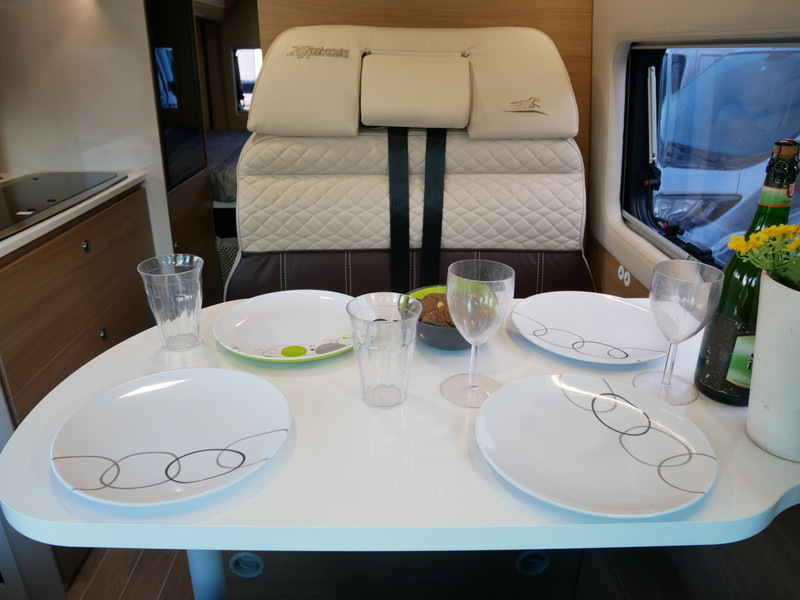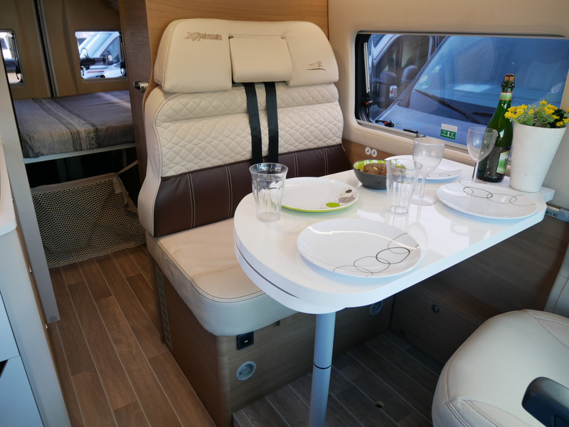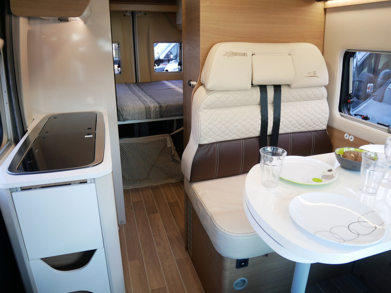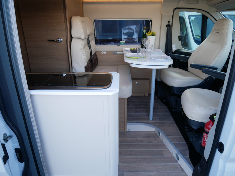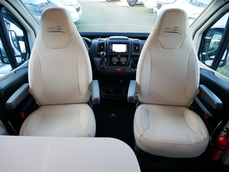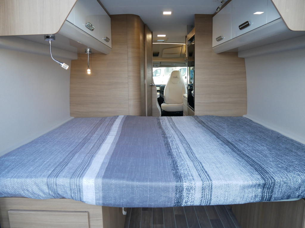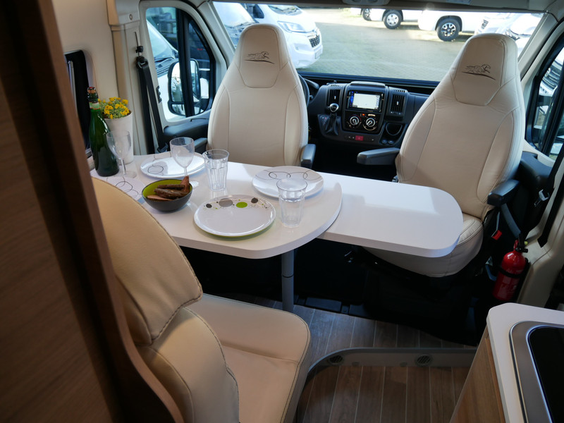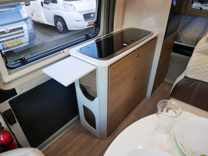 De camper is onder andere voorzien van een mooie afwerking met lederen bekleding, 9-Traps Automaat, keuken met 2 pits kooktoestel, dwarsbed, cruise control, Truma kachel op diesel, boiler op diesel, koelkast met apart vriesvak, modern en licht ogende tinten in het interieur, wasbak, motorairco, zeer veel opbergmogelijkheden door de vele kasten, toiletruimte met doucheruimte, radio/cd/mp-3 speler, navigatie, bluetooth, een ruime zit met tafel en verduistering rondom.