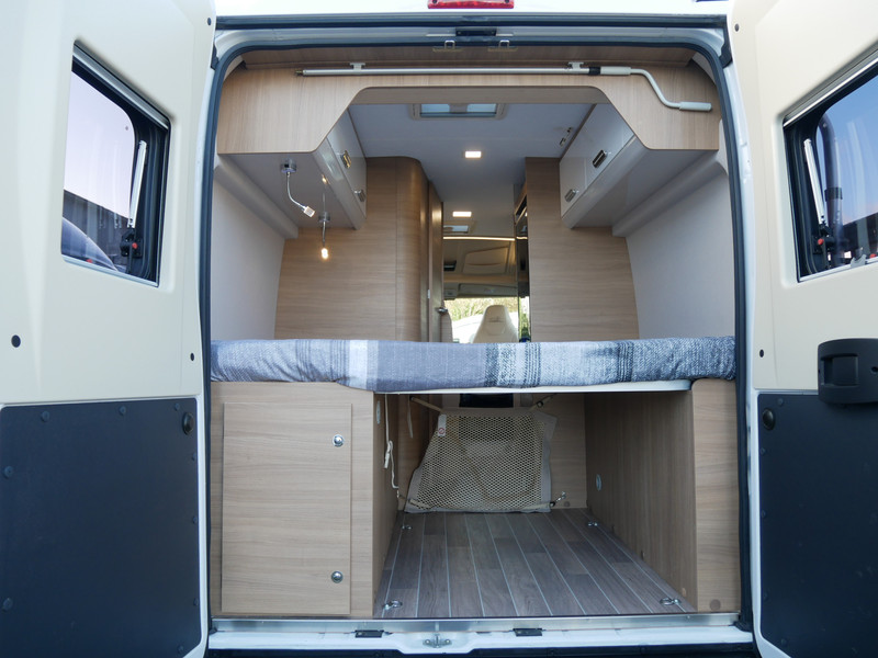 Maten: de camper heeft een stahoogte van 190 cm en het dwarsbed 150 X 195 cm.