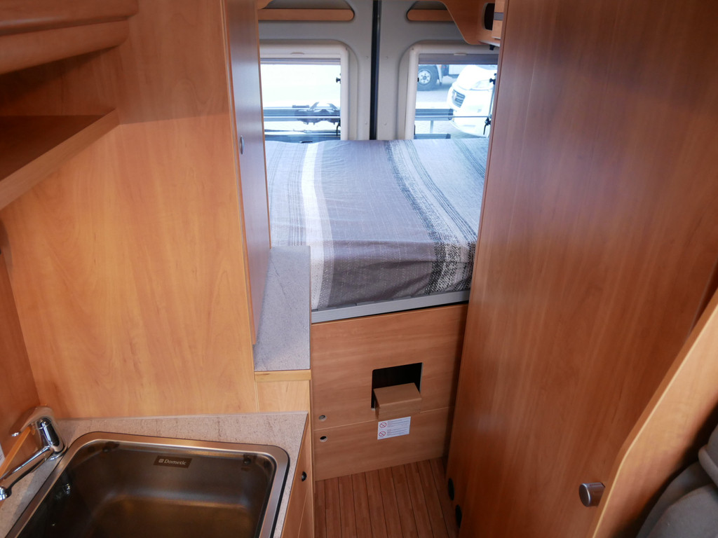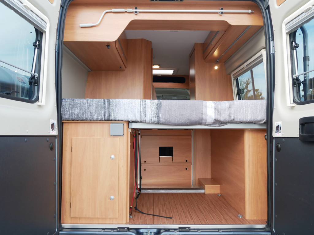 Maten: De camper heeft een stahoogte van 190 cm en dwarsbed 155 X 195 cm.