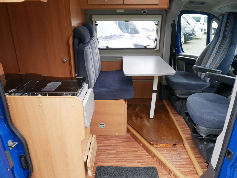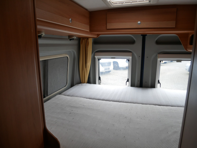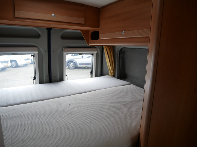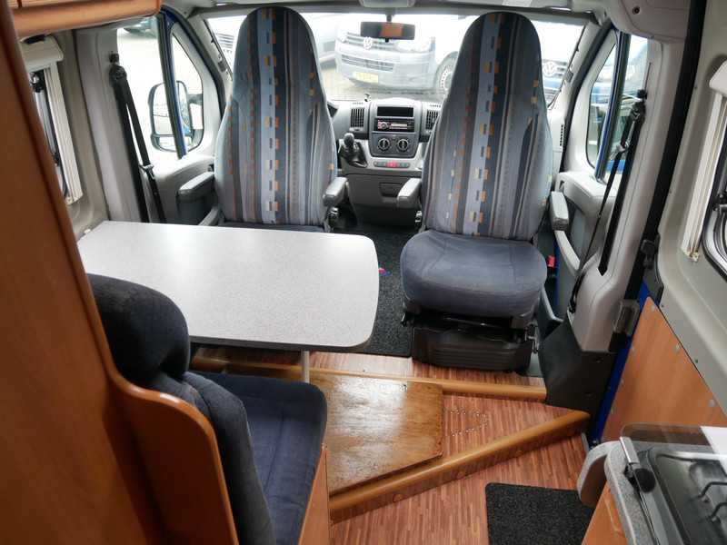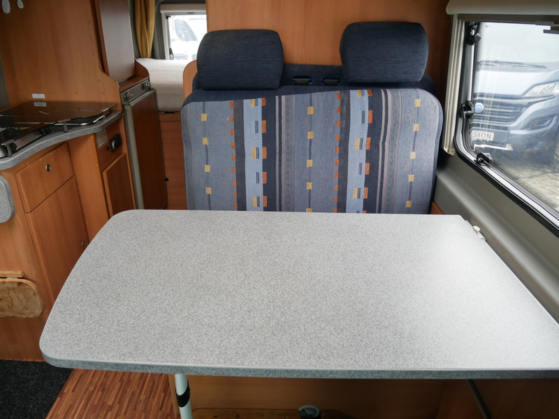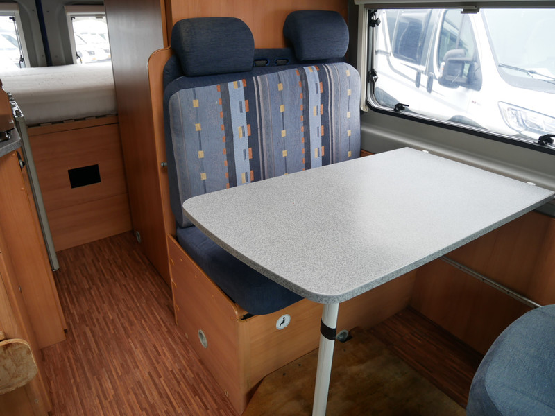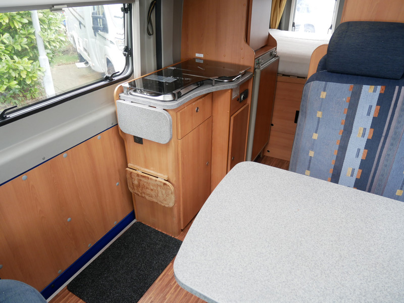 De camper is onder andere voorzien van stoffen bekleding, keuken met 2 pits kooktoestel, dwarsbed, cruise control, truma combiketel op gas, koelkast met apart vriesvakje, donkere houttinten in het interieur, wasbak, motorairco, cruise control, veel opbergmogelijkheden door de kasten rondom, toiletruimte met vaste deur, een ruime zit met tafel en verduistering in campergedeelte.