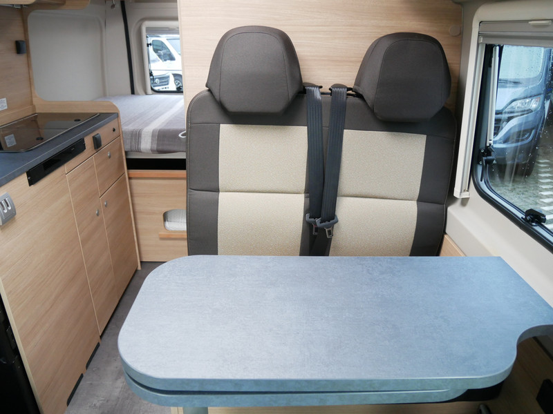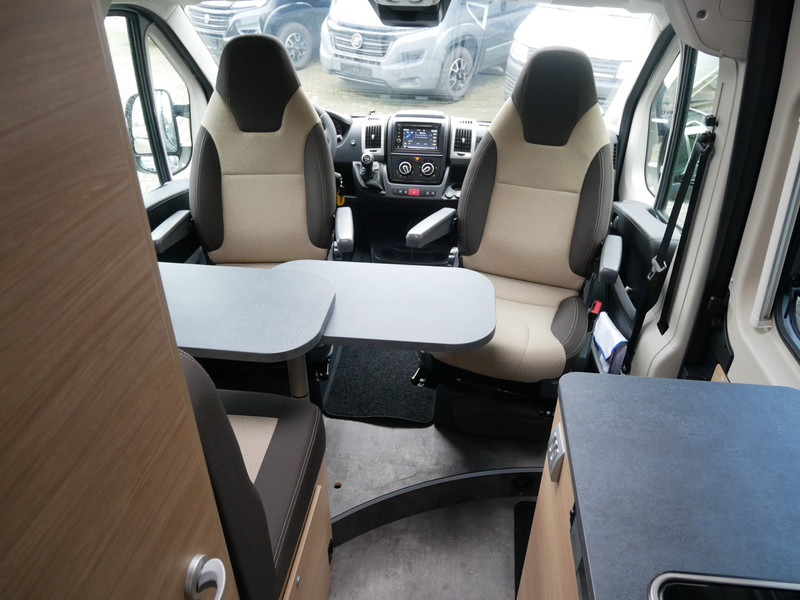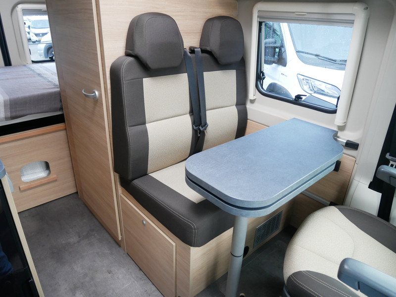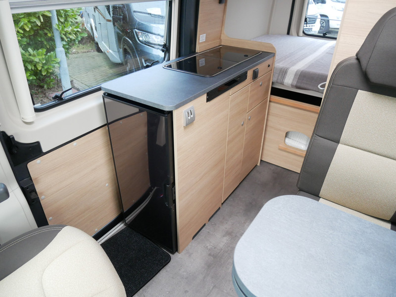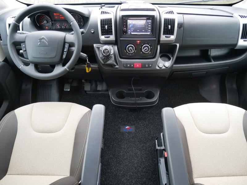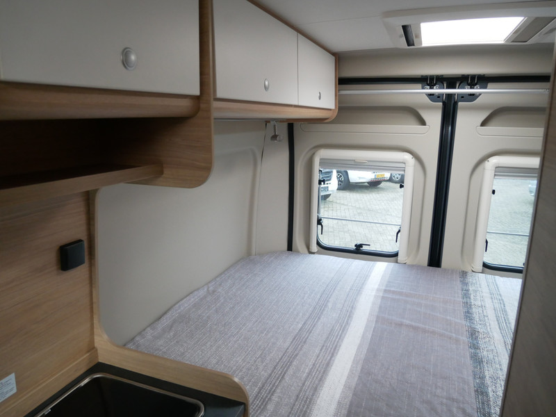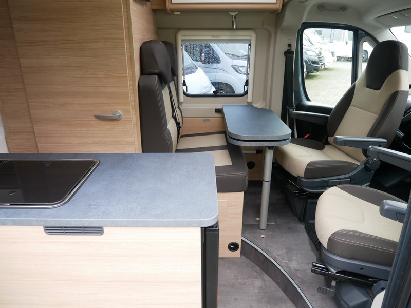 De camper is onder andere voorzien van stoffen bekleding, keuken met 2 pits kooktoestel, dwarsbed, cruise control, Truma kachel gas, boiler op gas, compressor koelkast, modern en licht ogende houttinten in het interieur, wasbak, motorairco, zeer veel opbergmogelijkheden in de vele kasten, toiletruimte met doucheruimte, een treinzit met tafel, bluetooth radio, verduistering in het campergedeelte.