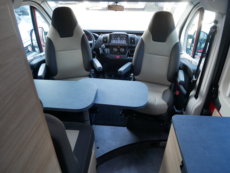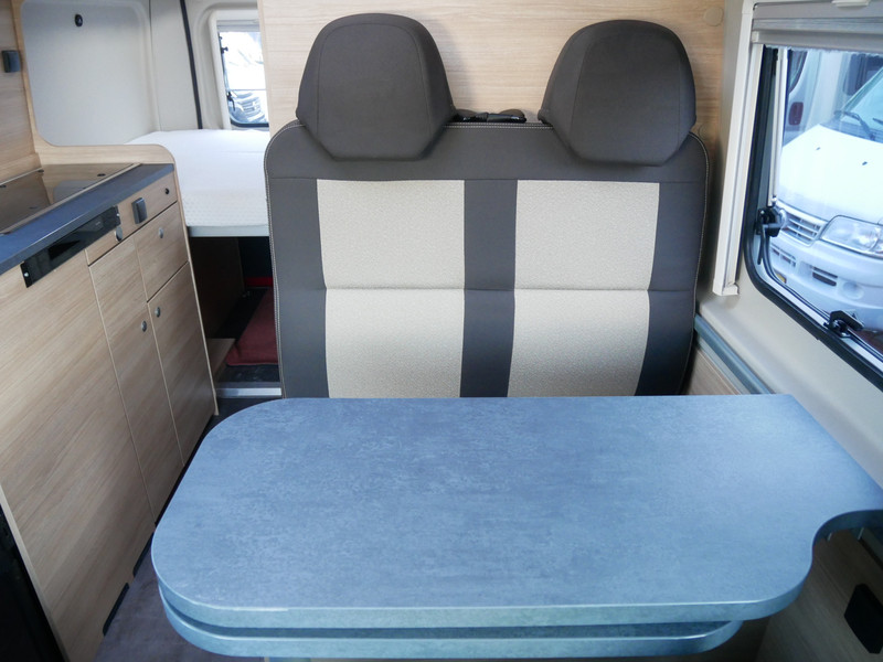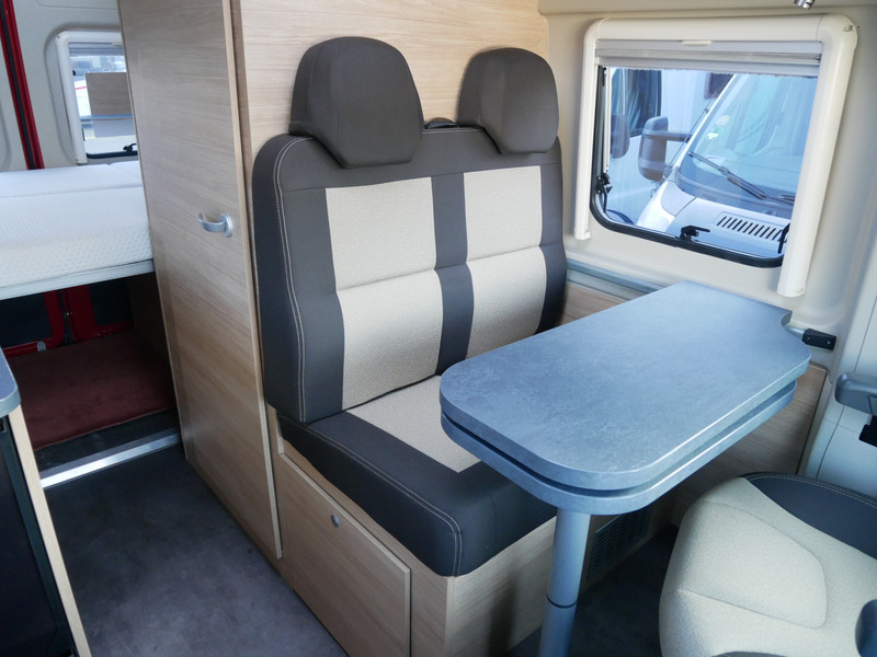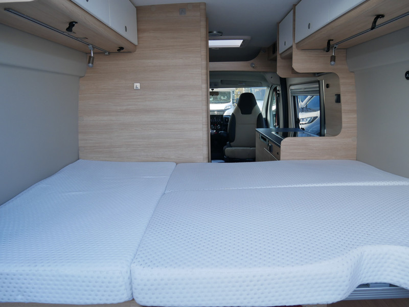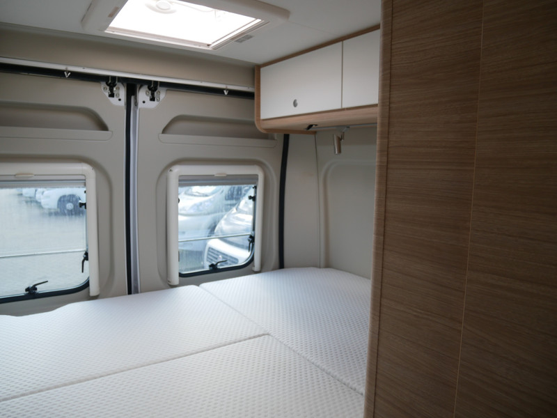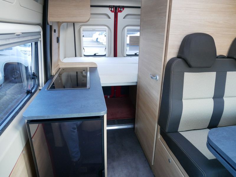 De camper is onder andere voorzien van een mooie afwerking met stoffen bekleding, keuken met 2 pits kooktoestel, dwarsbed, truma kachel op gas, boiler op gas, compressor koelkast, modern en licht ogende houttinten in het interieur, binnenverlichting, wasbak, motorairco, zeer veel opbergmogelijkheden door de vele bovenkasten, toiletruimte, een zit met tafel, radio, bluetooth en verduistering rondom.