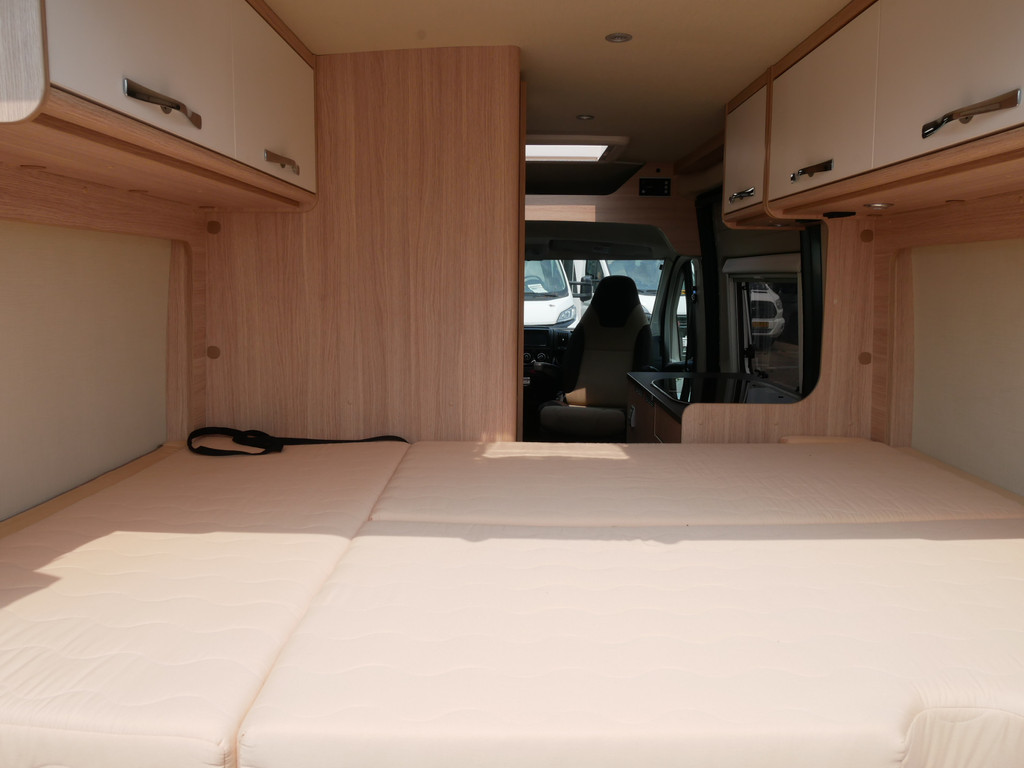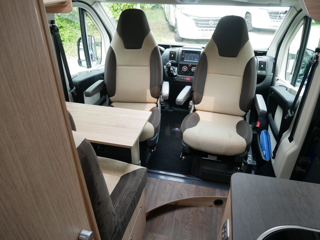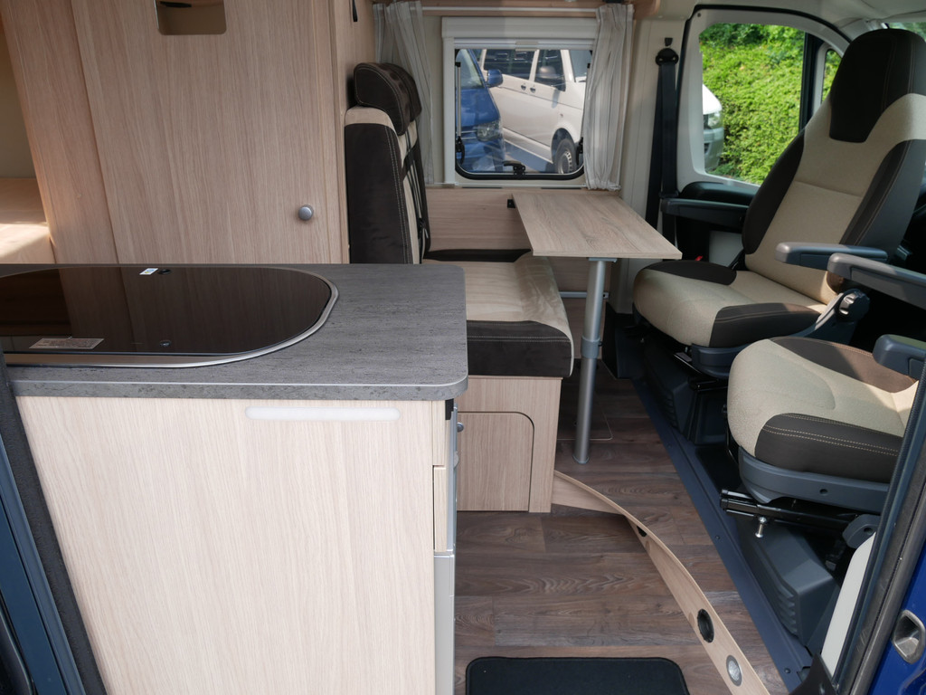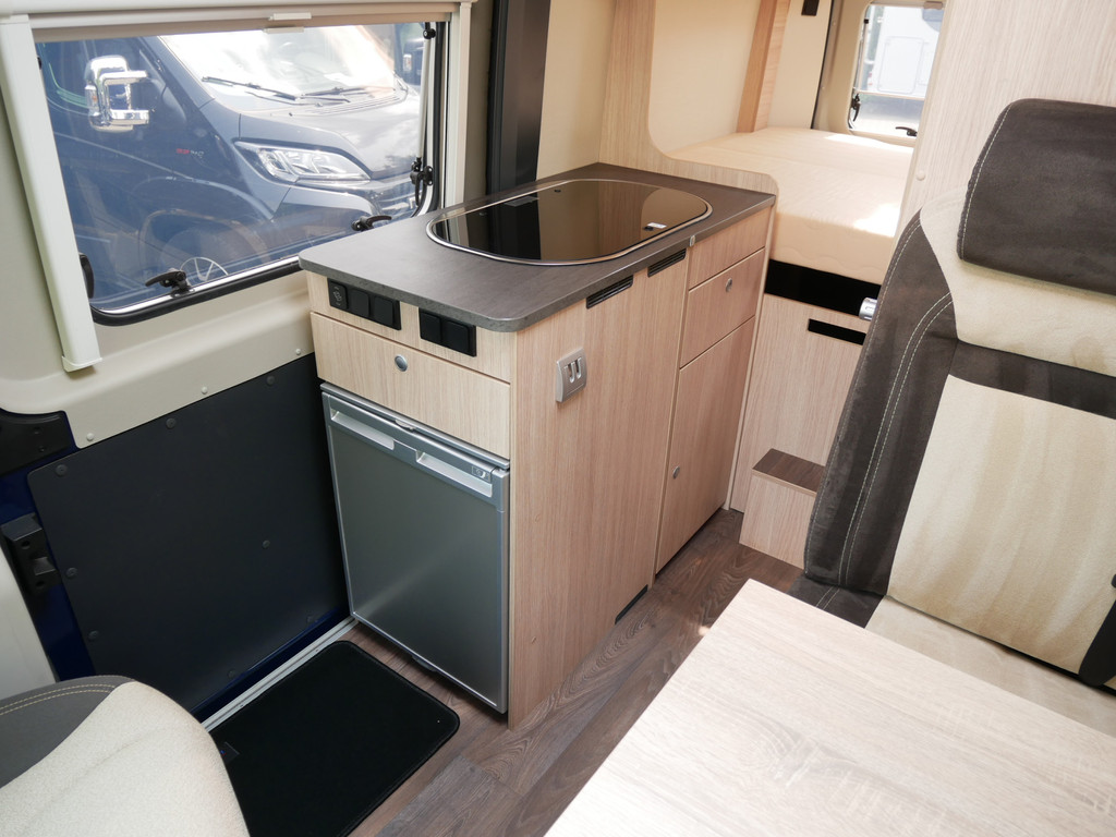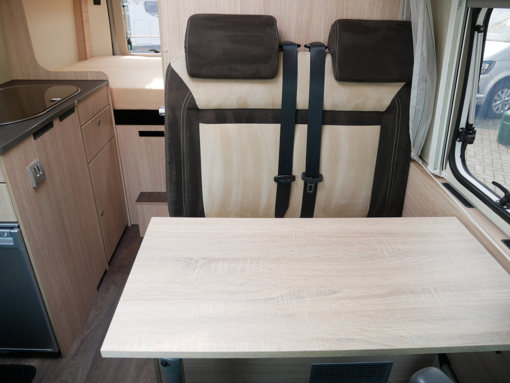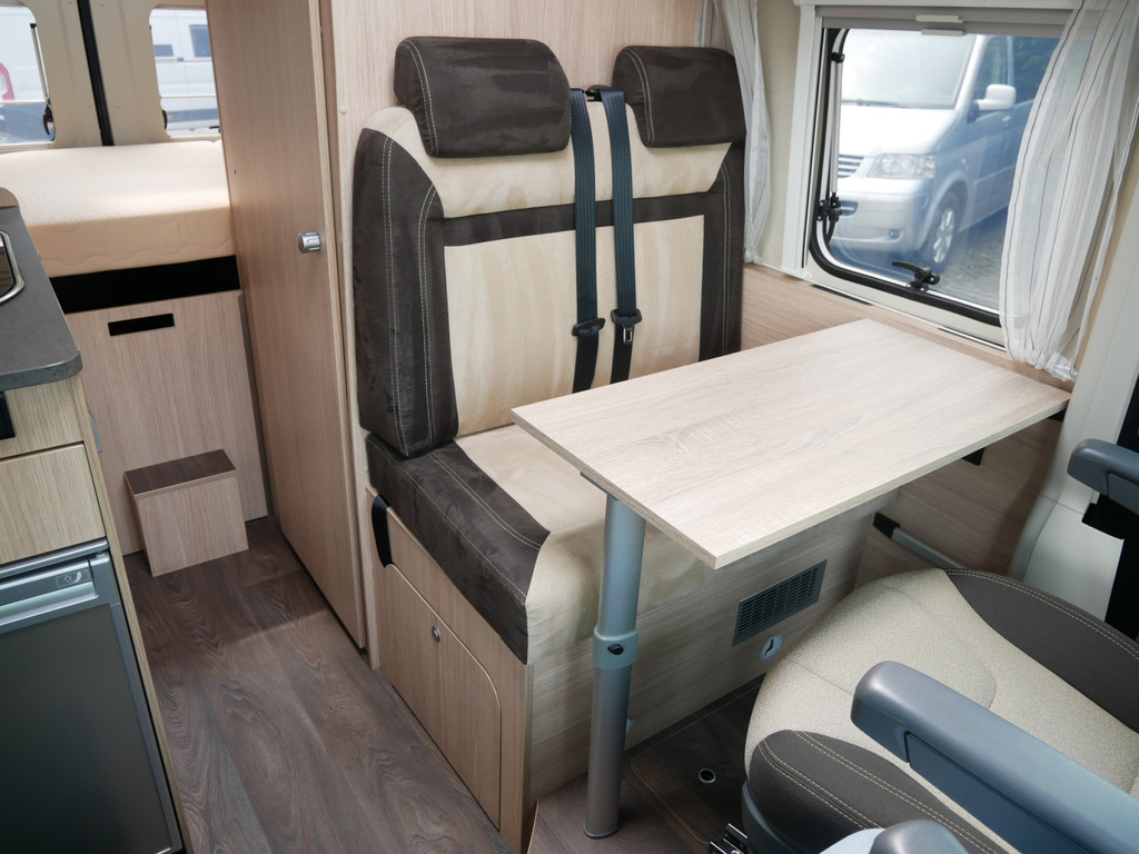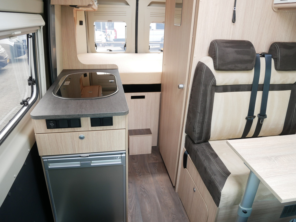 De camper is onder andere voorzien van een mooie afwerking door het zoals stoffen bekleding, keuken met 3 pits kooktoestel, dwarsbed, truma kachel op gas, boiler op gas, compressor koelkast, modern en licht ogende houttinten in het interieur, binnenverlichting, wasbak, motorairco, zeer veel opbergmogelijkheden door de vele bovenkasten, toiletruimte met douchecel, een zit met tafel, radio/cd/mp-3 speler, bluetooth en verduistering in het voor / campergedeelte.