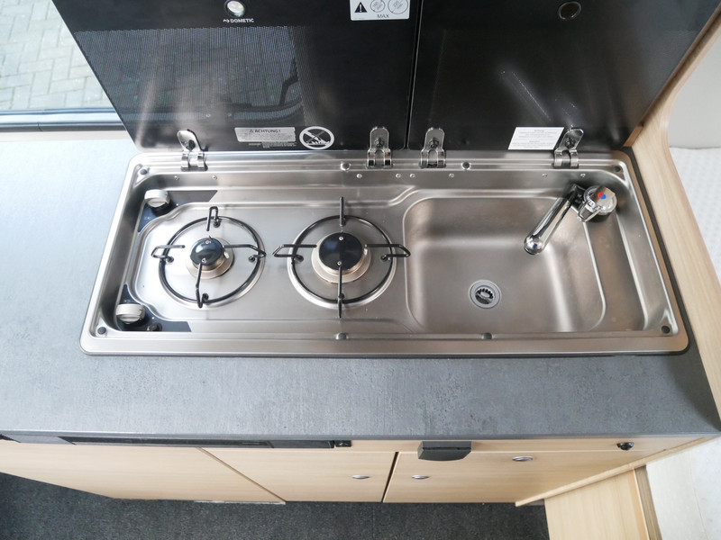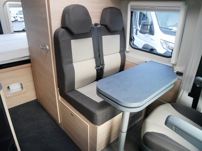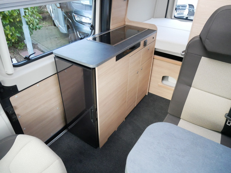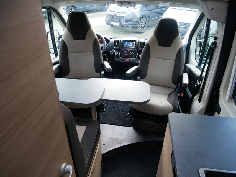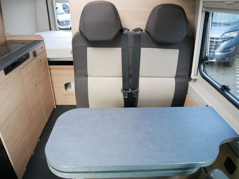 De camper is onder andere voorzien van stoffen bekleding, keuken met 2 pits kooktoestel, dwarsbed, cruise control, Truma kachel gas, boiler op gas, compressor koelkast, modern en licht ogende houttinten in het interieur, wasbak, motorairco, zeer veel opbergmogelijkheden in de vele kasten, toiletruimte met doucheruimte, een treinzit met tafel, bluetooth radio, verduistering in het campergedeelte.