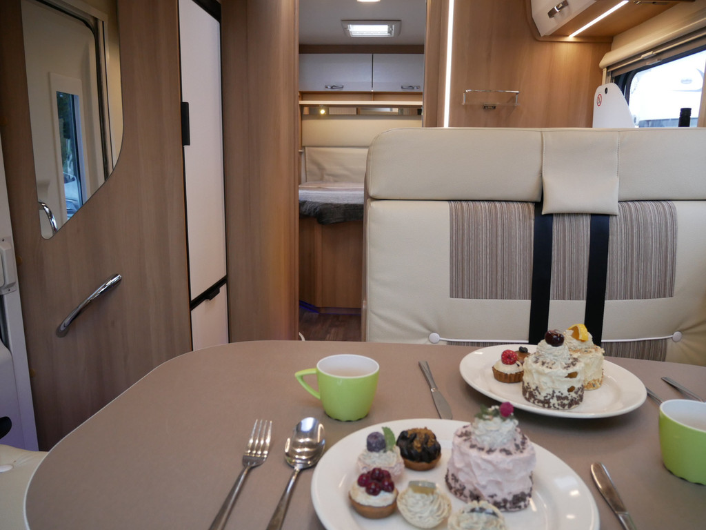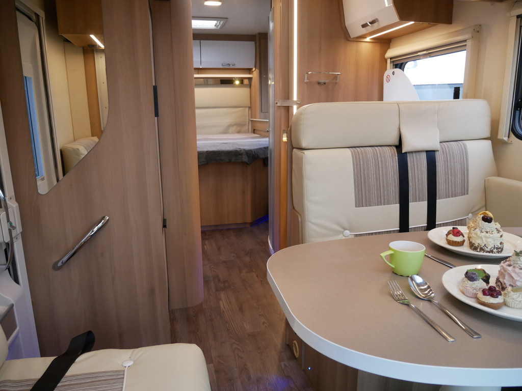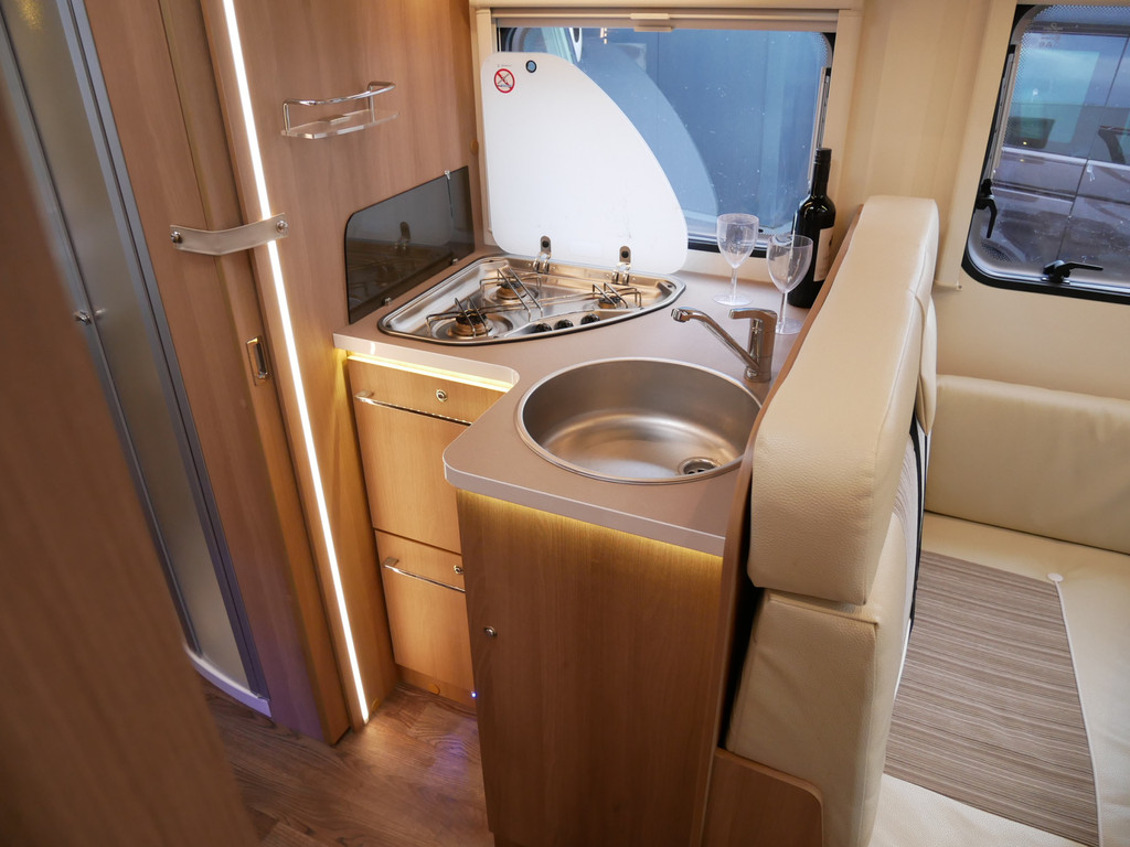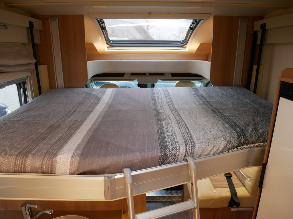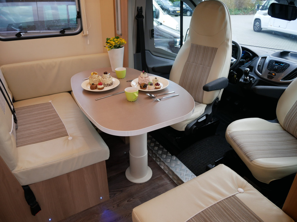 De camper is onder andere voorzien van een zeer mooie en luxe afwerking zoals half lederen stoelen, luxe en moderne look in het interieur, luxe ruime keuken met 3 pits kooktoestel, lengtebedden, hefbed, wasbak, hordeur entree, radio/mp-3 speler, motorairco, zeer veel opbergmogelijkheden door de vele bovenkasten en de grote kast ruimtes, ruime toiletruimte met aparte douche ruimte, een ruime rondzit met grote tafel en een XXL garage met serviceluik aan de rechter en linker buitenzijde.