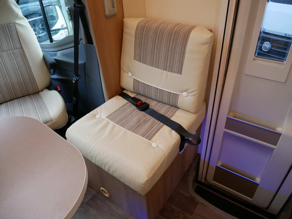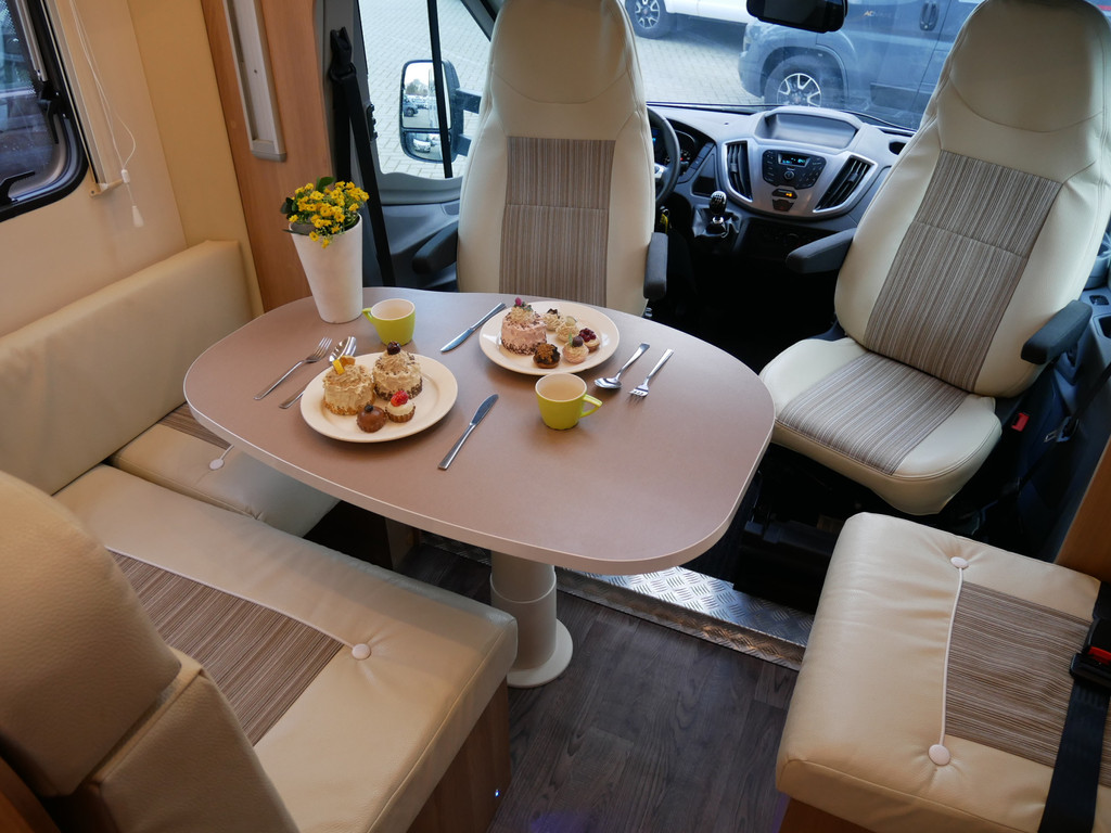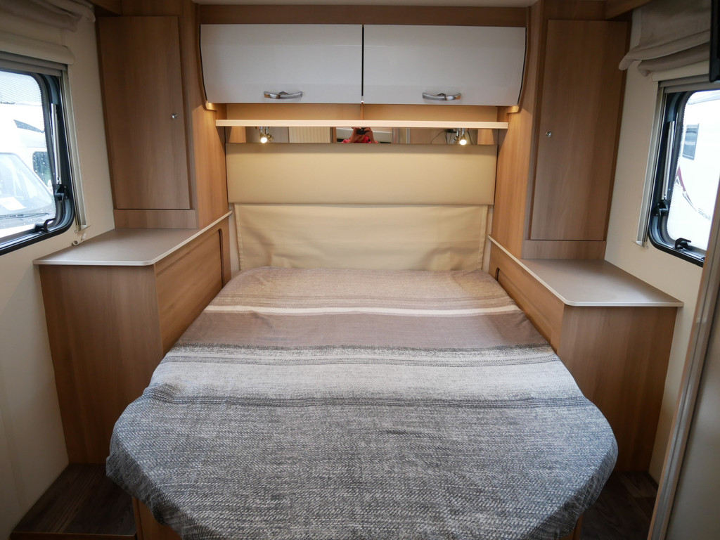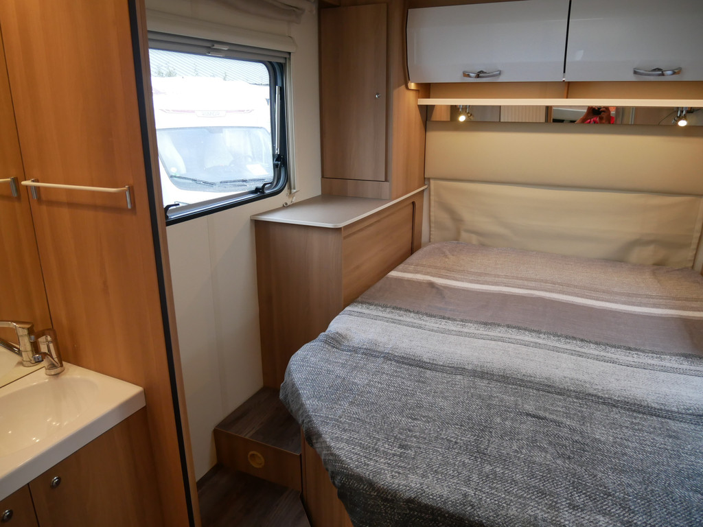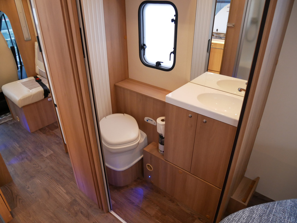 De camper is onder andere voorzien van een zeer mooie en luxe afwerking zoals half lederen stoelen, luxe en moderne look in het interieur, luxe ruime keuken met 3 pits kooktoestel, lengtebedden, hefbed, wasbak, hordeur entree, radio/mp-3 speler, motorairco, zeer veel opbergmogelijkheden door de vele bovenkasten en de grote kast ruimtes, ruime toiletruimte met aparte douche ruimte, een ruime rondzit met grote tafel en een XXL garage met serviceluik aan de rechter en linker buitenzijde.